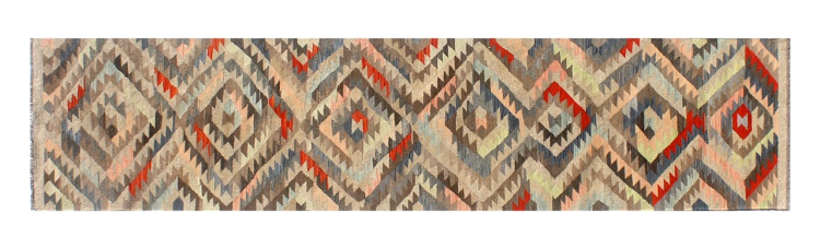 Teppenummer: 315297006671885 Størrelse: 394x85 cm Tykkelse: ca. 5 mm Bearbeiding: Handwoven Søm: Håndspunnet Ull Kjede: Ull Opprinnelse: Afghanistan Alder: Nytt Vekt: ca. 7 kg Antall på lager: Unikt - Kun 1 stk i lager