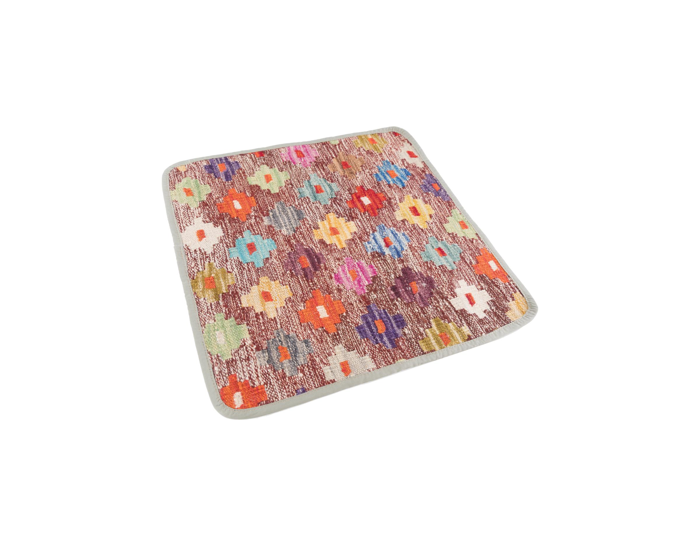Teppenummer: 290143001637 Størrelse: 45x45 cm Tykkelse: ca. 3 mm Bearbeiding: Knyttet for hånd Søm: Håndspunnet Ull Kjede: Ull Opprinnelse: Afghanistan Alder: Nytt Vekt: ca. 0 kg Antall på lager: Unikt - Kun 1 stk i lager