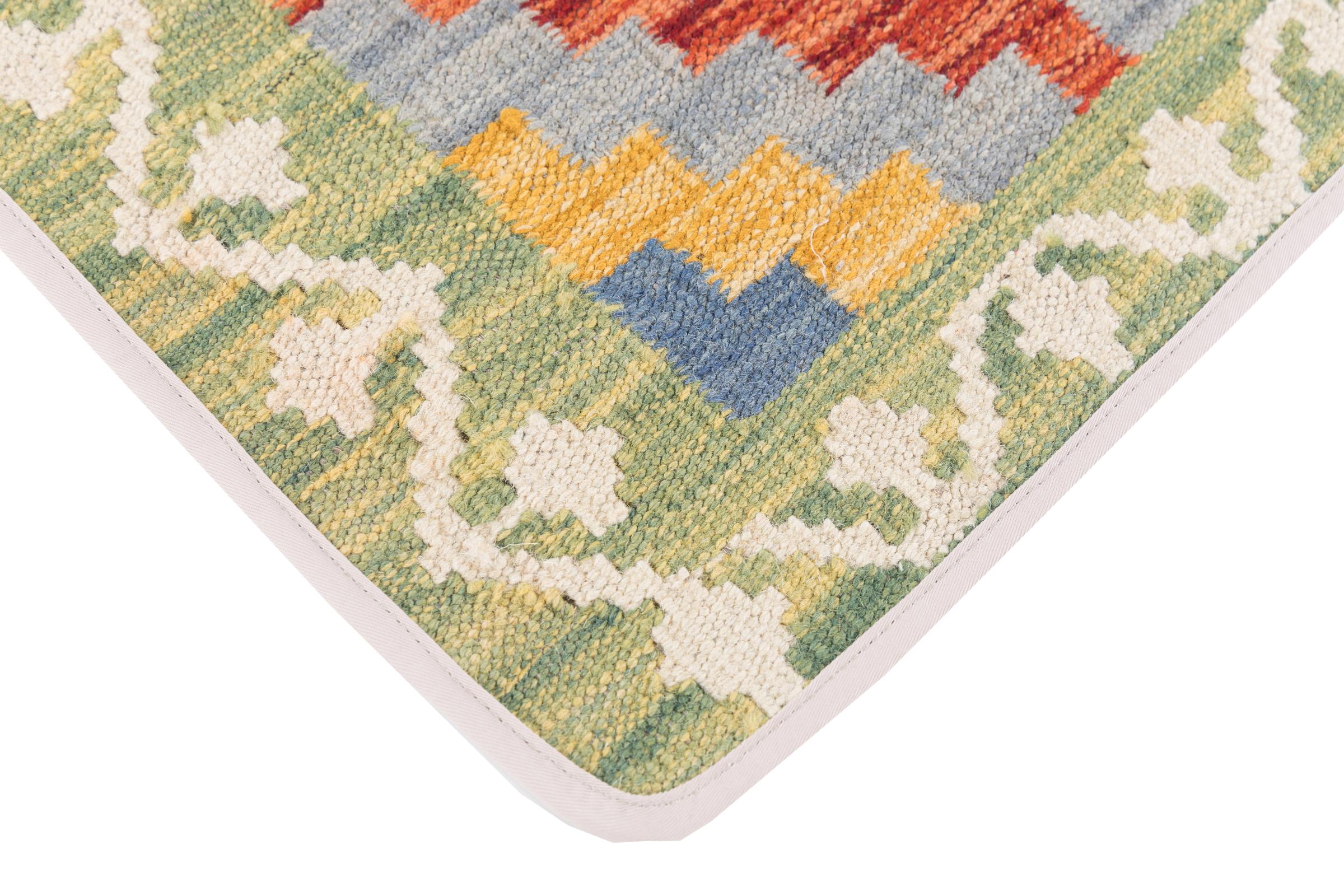 Dette håndvevde produktet er flott med sine farger og tradisjonelle mønster. Det ble fremstilt av 100% håndspinnet ull. Teppet er robust og holder lenge, dette teppet er en gevinst for ditt hjem.