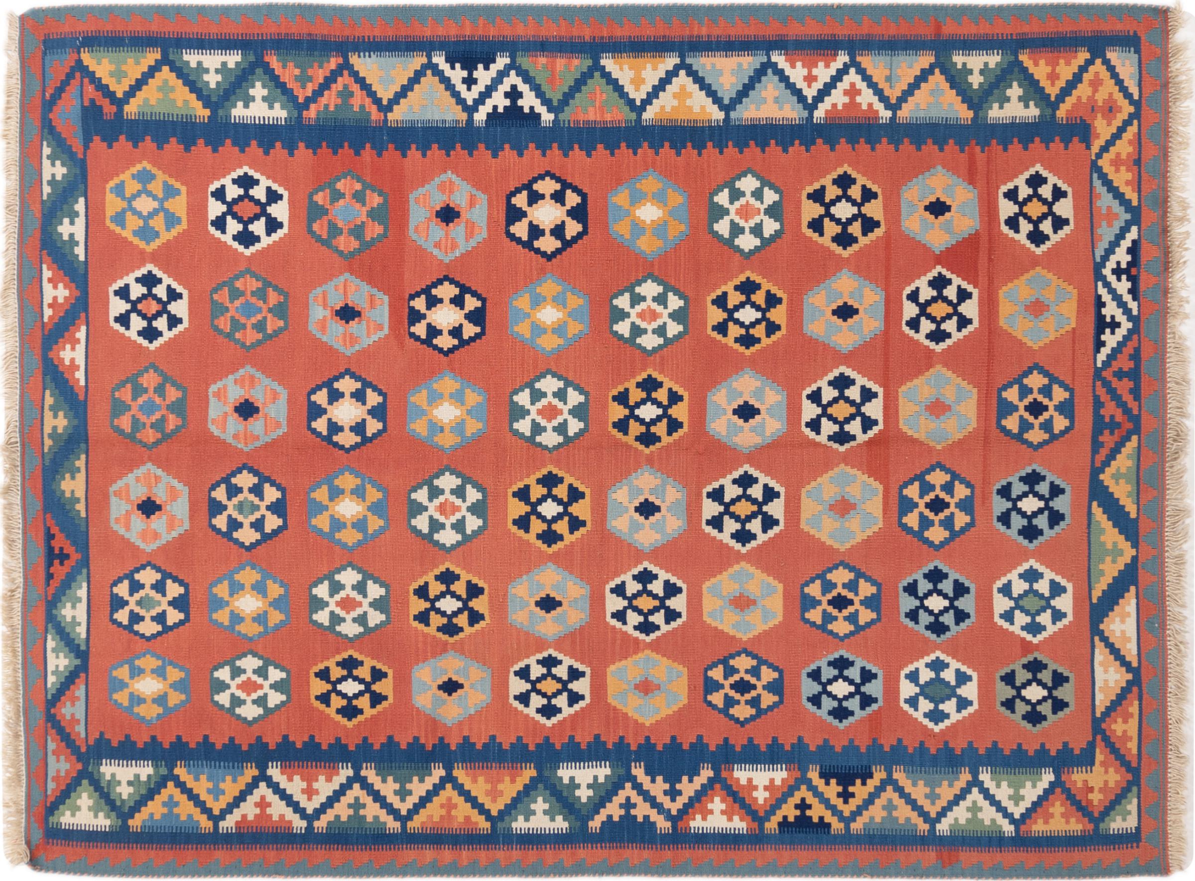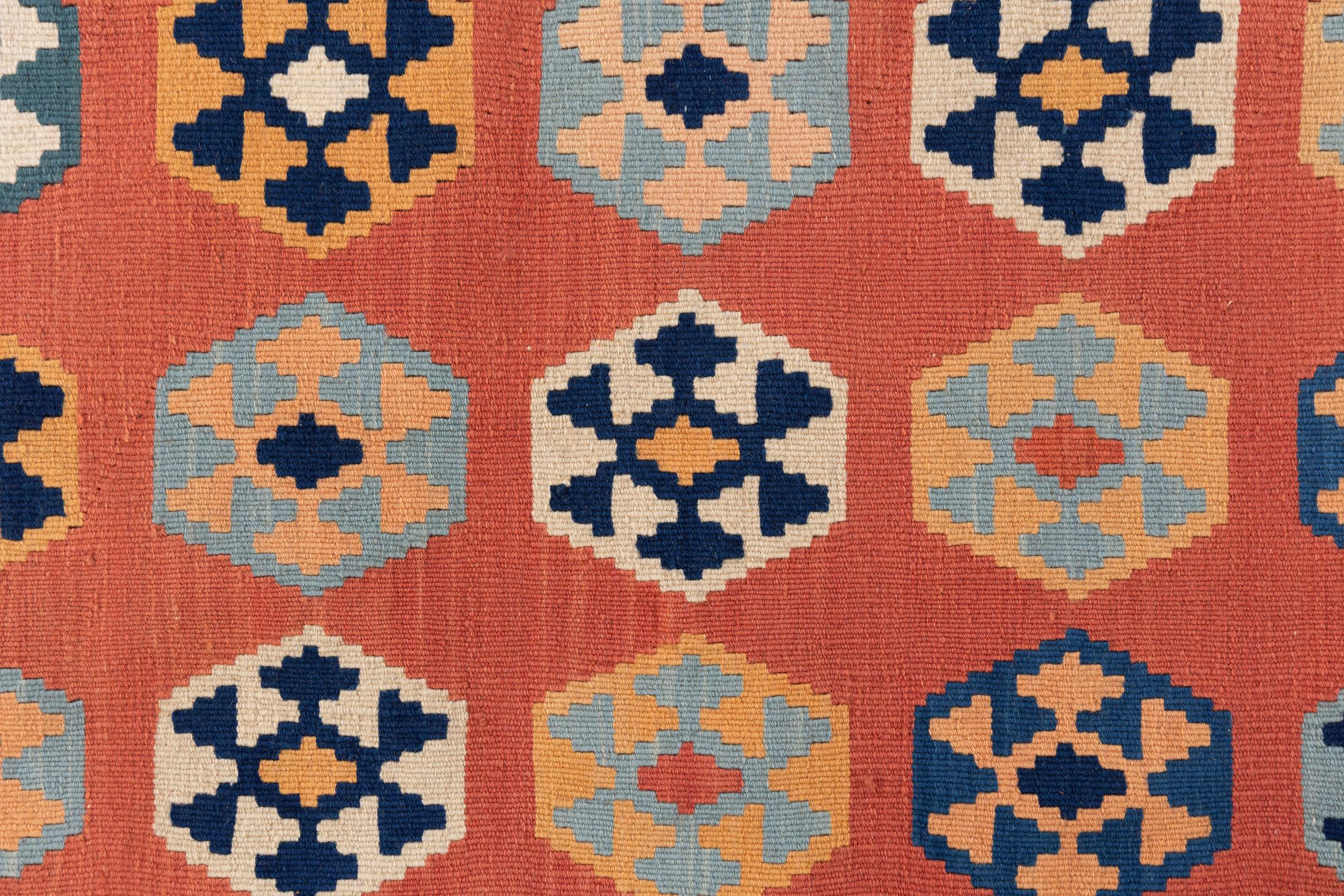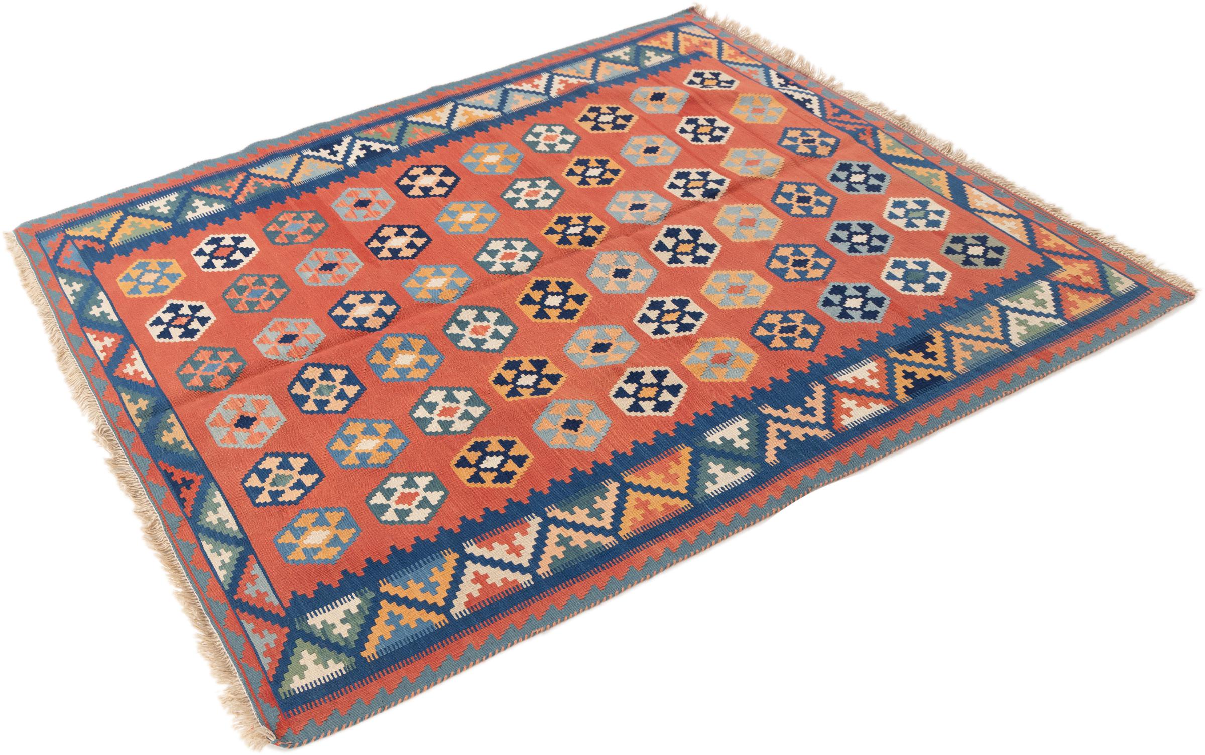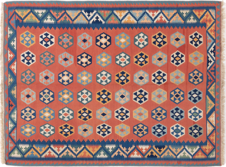 Denne håndvevde kelim fars kombinerer persiske mønstre og ornamenter med tradisjonen med flatvev. En flott og moderne kombinasjon av de mest populære konseptene fra Orienten. Dette skaper et teppe med en lang rekke bruksområder. Enten som sengeteppe eller som teppe foran sofaen – en Fars kelim gjør det mulig og er nå å finne i de mest kjente interiørmagasinene. Kilim Fars-tepper er vevd for hånd i Iran og er derfor blant kelimer av høyeste kvalitet.
