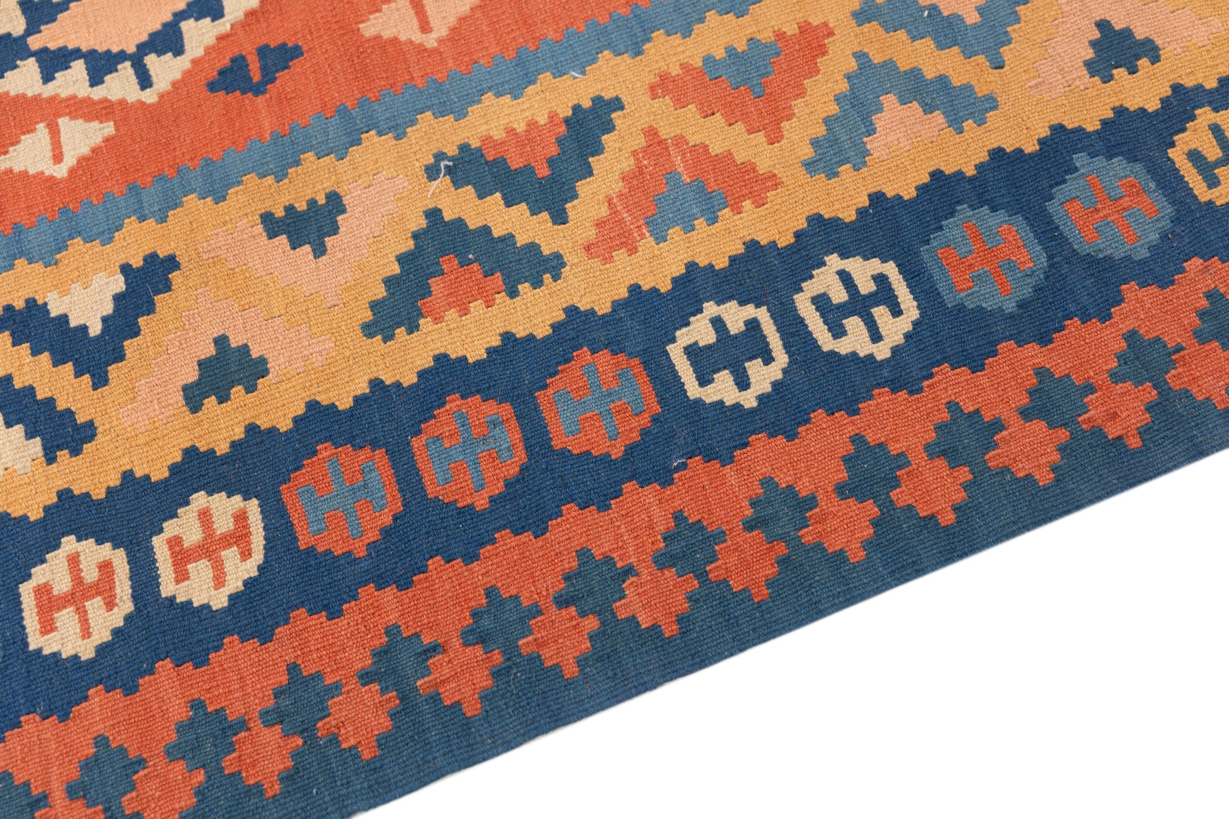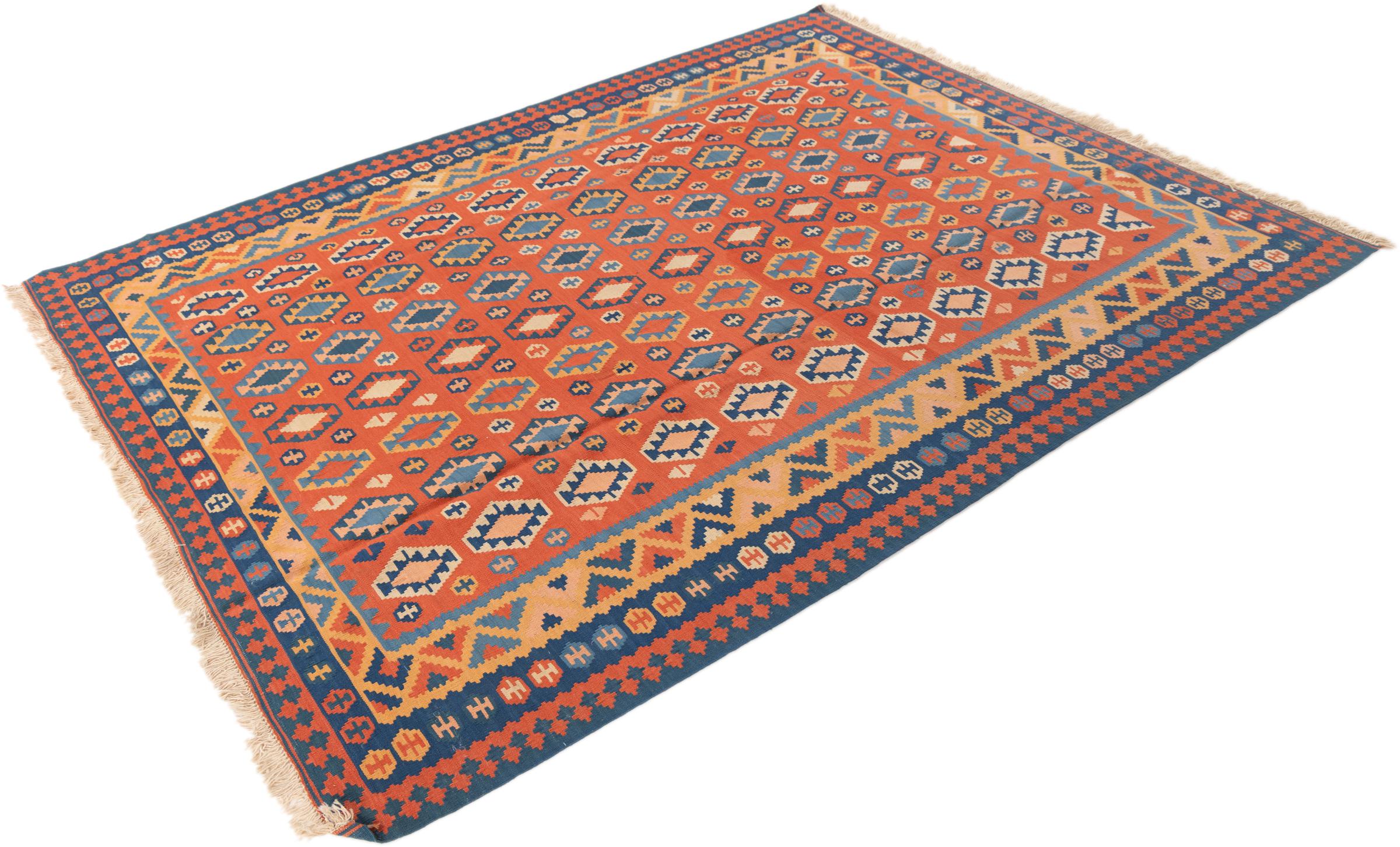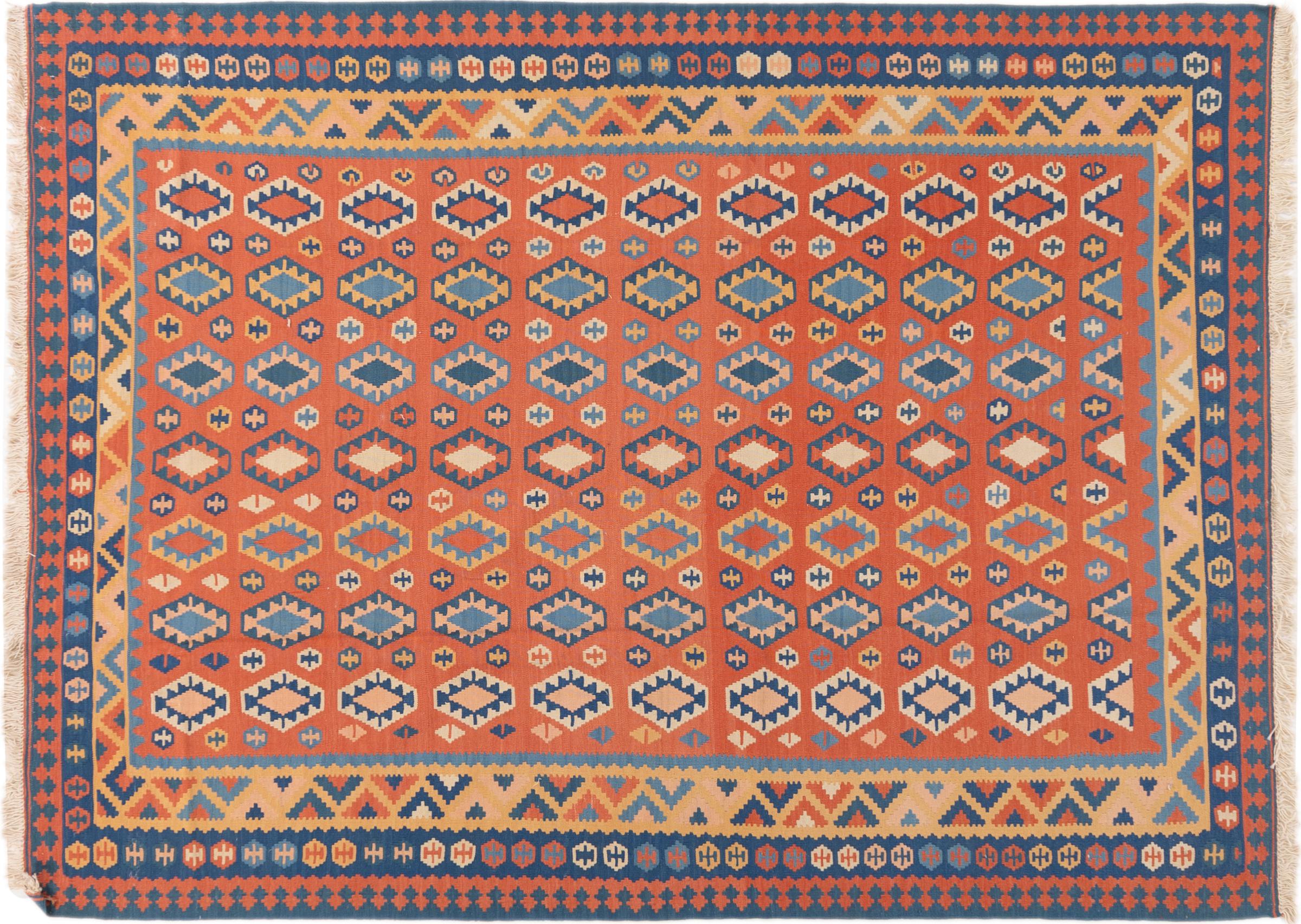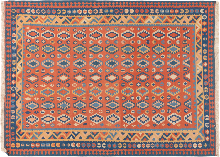 Denne håndvevde kelim fars kombinerer persiske mønstre og ornamenter med tradisjonen med flatvev. En flott og moderne kombinasjon av de mest populære konseptene fra Orienten. Dette skaper et teppe med en lang rekke bruksområder. Enten som sengeteppe eller som teppe foran sofaen – en Fars kelim gjør det mulig og er nå å finne i de mest kjente interiørmagasinene. Kilim Fars-tepper er vevd for hånd i Iran og er derfor blant kelimer av høyeste kvalitet.