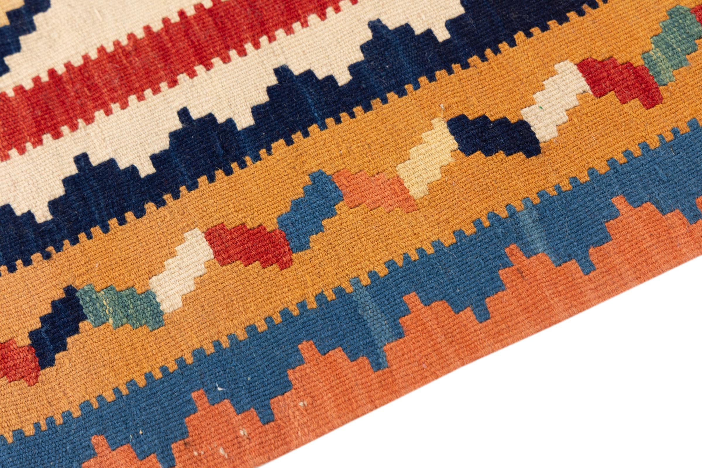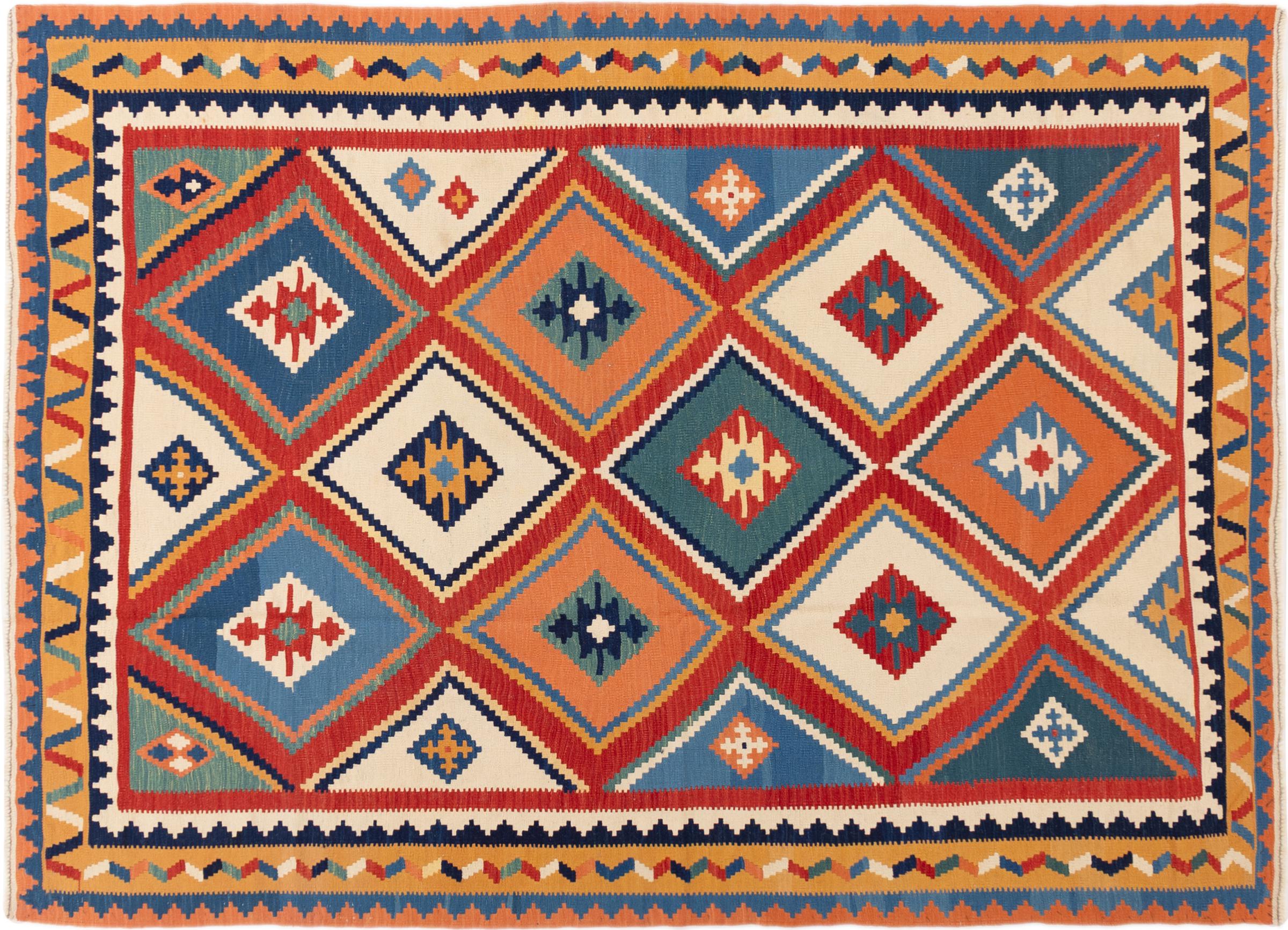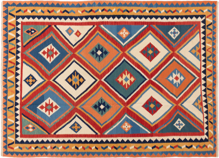 Denne håndvevde kelim fars kombinerer persiske mønstre og ornamenter med tradisjonen med flatvev. En flott og moderne kombinasjon av de mest populære konseptene fra Orienten. Dette skaper et teppe med en lang rekke bruksområder. Enten som sengeteppe eller som teppe foran sofaen – en Fars kelim gjør det mulig og er nå å finne i de mest kjente interiørmagasinene. Kilim Fars-tepper er vevd for hånd i Iran og er derfor blant kelimer av høyeste kvalitet.