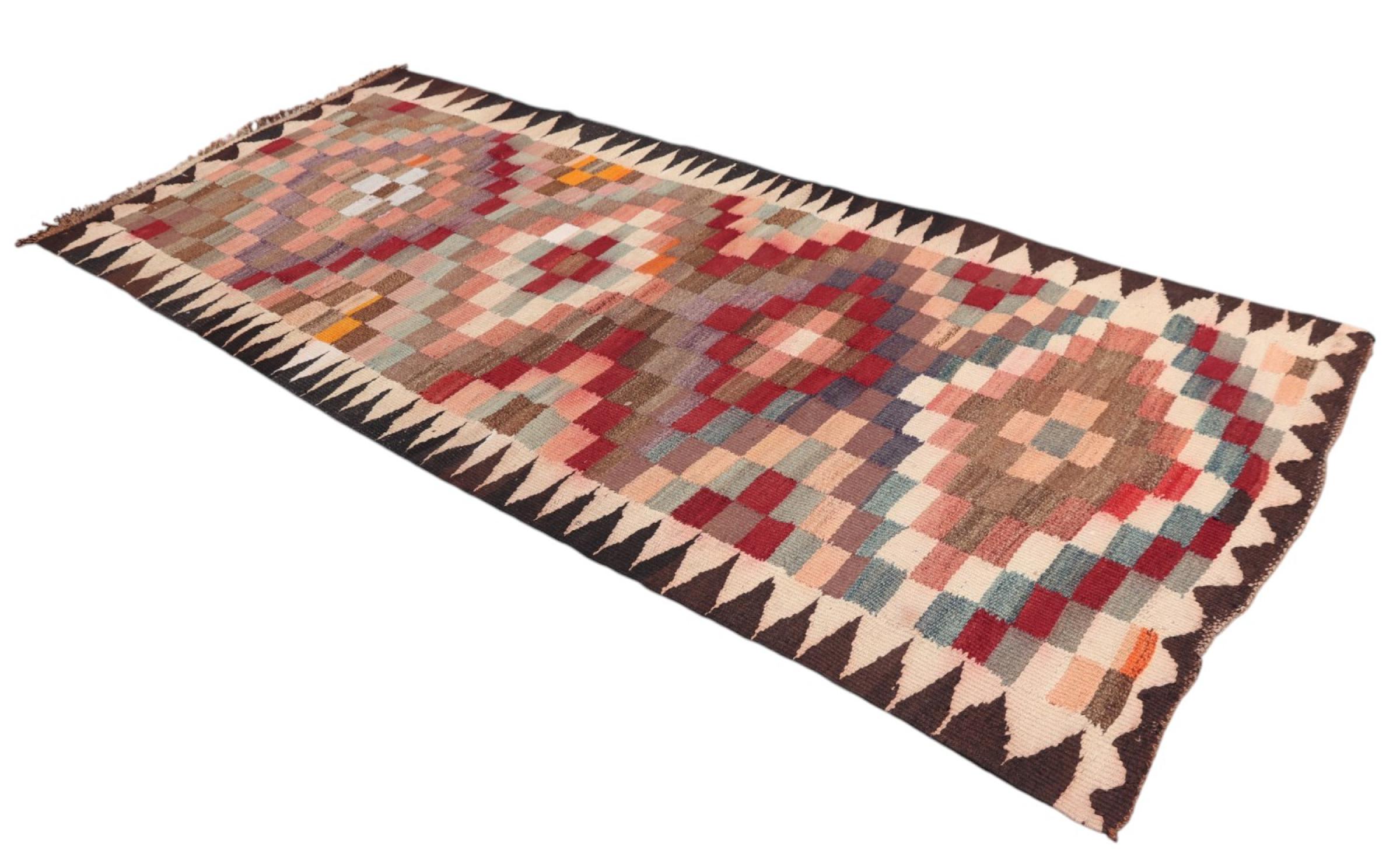 Denne håndvevde kelim fars kombinerer persiske mønstre og ornamenter med tradisjonen med flatvev. En flott og moderne kombinasjon av de mest populære konseptene fra Orienten. Dette skaper et teppe med en lang rekke bruksområder. Enten som sengeteppe eller som teppe foran sofaen – en Fars kelim gjør det mulig og er nå å finne i de mest kjente interiørmagasinene. Kilim Fars-tepper er vevd for hånd i Iran og er derfor blant kelimer av høyeste kvalitet.