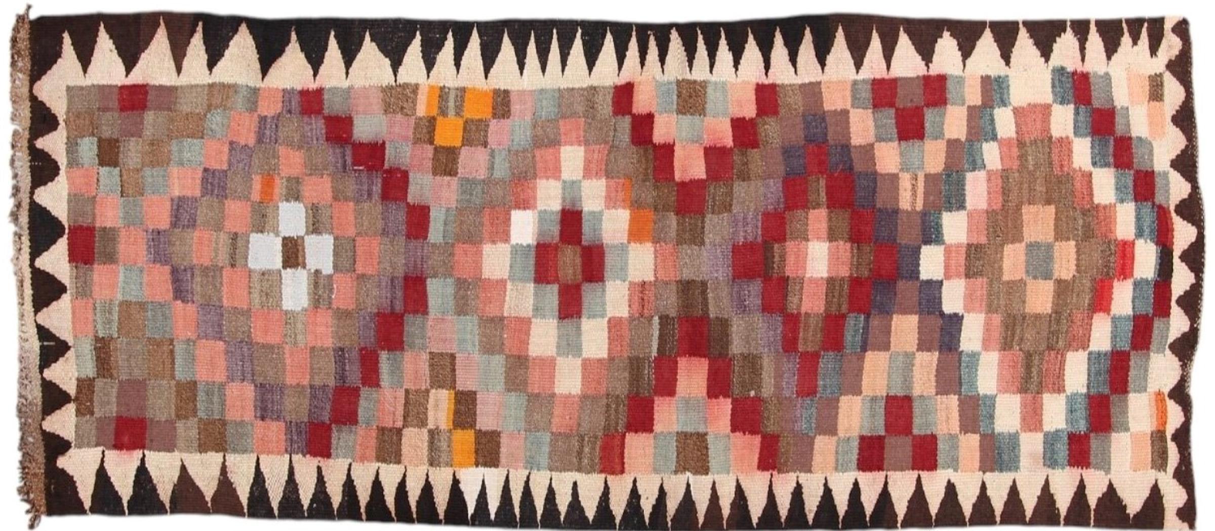 Dette teppet er laget for hånd på vevstolen som en flat veving. Flatweaves er tepper som ikke har haug. Som navnet antyder er disse teppene vevd og ikke knyttet. Dette resulterer i et flatt teppe med en strukturert overflate. Flatvev er ikke så myke og stort sett tynnere enn knyttede tepper. Samtidig er de betydelig mindre komplekse å produsere og kan vanligvis utformes fra begge sider (foran og bak). Mønstrene deres er vanligvis geometriske, noe som skyldes stoffet.