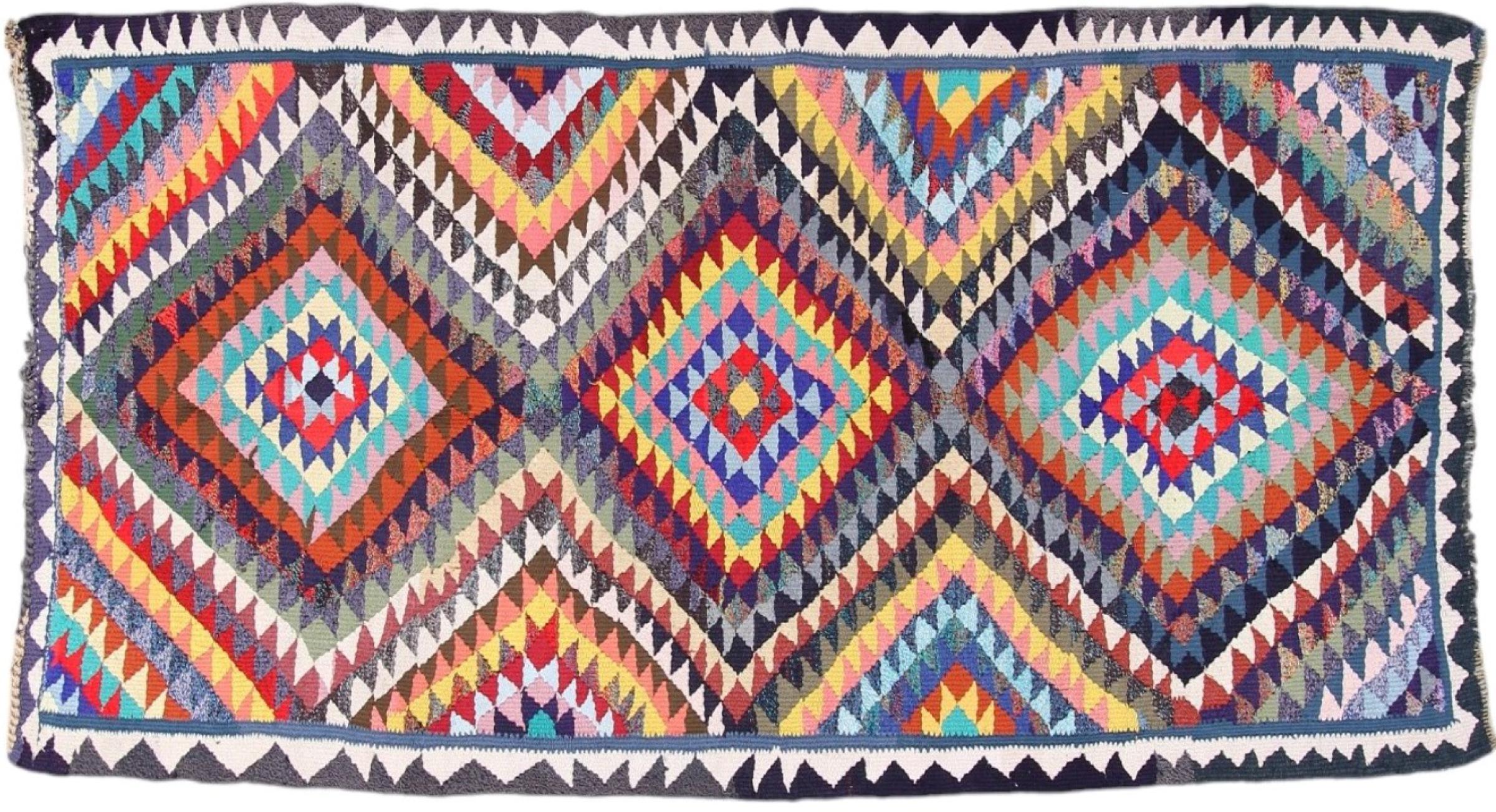Dette teppet er laget for hånd på vevstolen som en flat veving. Flatweaves er tepper som ikke har haug. Som navnet antyder er disse teppene vevd og ikke knyttet. Dette resulterer i et flatt teppe med en strukturert overflate. Flatvev er ikke så myke og stort sett tynnere enn knyttede tepper. Samtidig er de betydelig mindre komplekse å produsere og kan vanligvis utformes fra begge sider (foran og bak). Mønstrene deres er vanligvis geometriske, noe som skyldes stoffet.