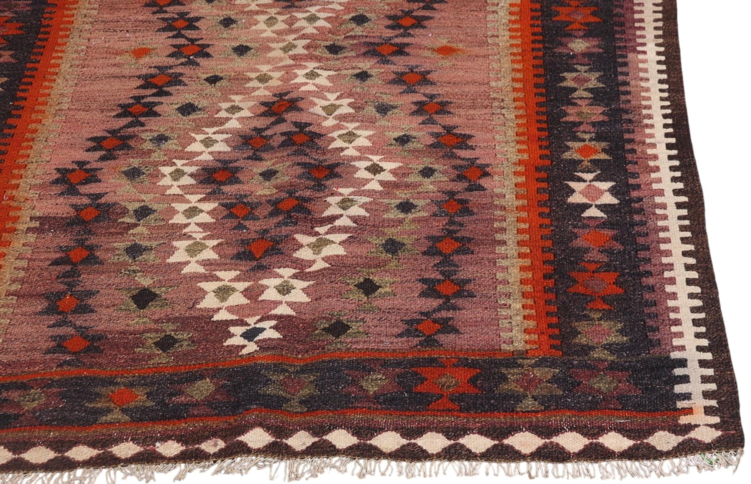 Denne håndvevde kelim fars kombinerer persiske mønstre og ornamenter med tradisjonen med flatvev. En flott og moderne kombinasjon av de mest populære konseptene fra Orienten. Dette skaper et teppe med en lang rekke bruksområder. Enten som sengeteppe eller som teppe foran sofaen – en Fars kelim gjør det mulig og er nå å finne i de mest kjente interiørmagasinene. Kilim Fars-tepper er vevd for hånd i Iran og er derfor blant kelimer av høyeste kvalitet.