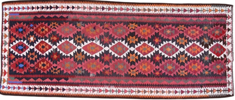 Dette teppet er laget for hånd på vevstolen som en flat veving. Flatweaves er tepper som ikke har haug. Som navnet antyder er disse teppene vevd og ikke knyttet. Dette resulterer i et flatt teppe med en strukturert overflate. Flatvev er ikke så myke og stort sett tynnere enn knyttede tepper. Samtidig er de betydelig mindre komplekse å produsere og kan vanligvis utformes fra begge sider (foran og bak). Mønstrene deres er vanligvis geometriske, noe som skyldes stoffet.