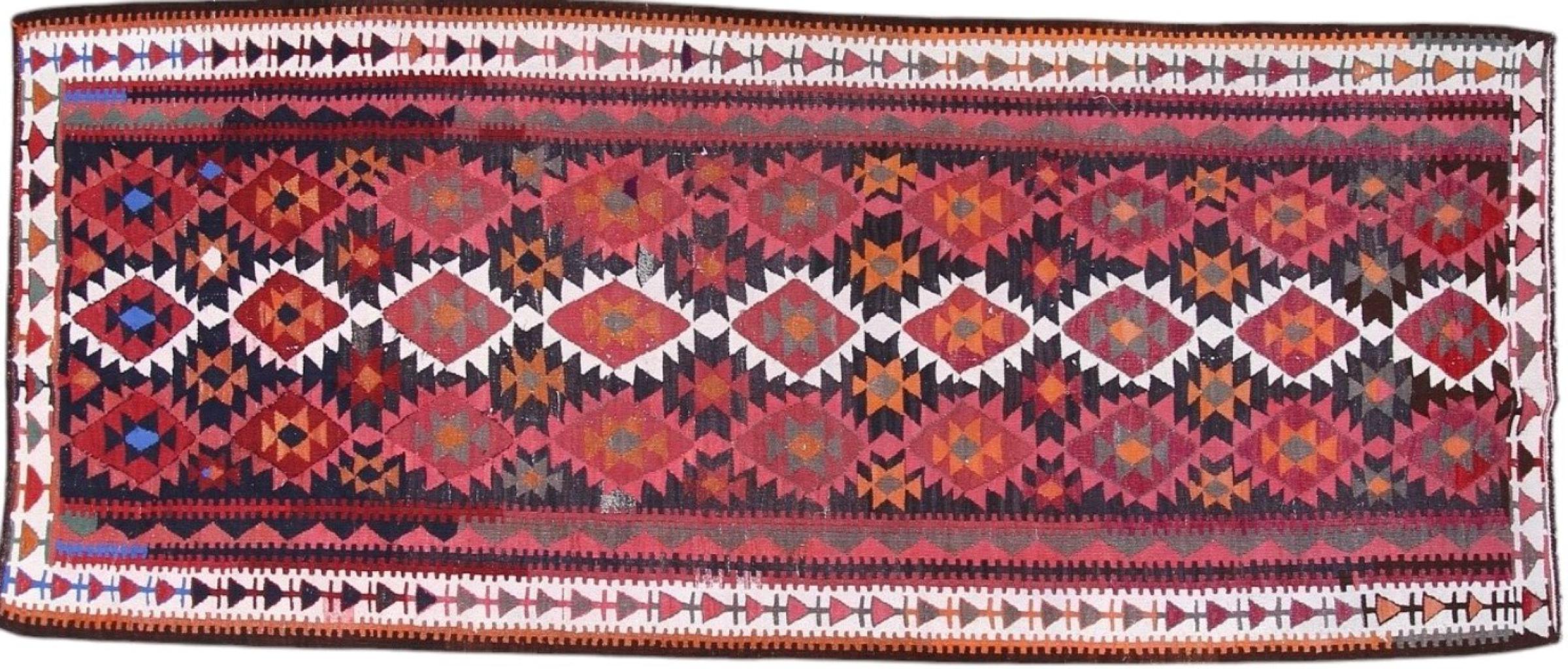 Teppenummer: 300286009228901 Størrelse: 336x141 cm Tykkelse: ca. 4 mm Bearbeiding: Handwoven Søm: Håndspunnet Ull Kjede: Ull Opprinnelse: Persia / Iran Alder: Gammelt/halv-antikt, eldre enn 50 år Vekt: ca. 7 kg Antall på lager: Unikt - Kun 1 stk i lager