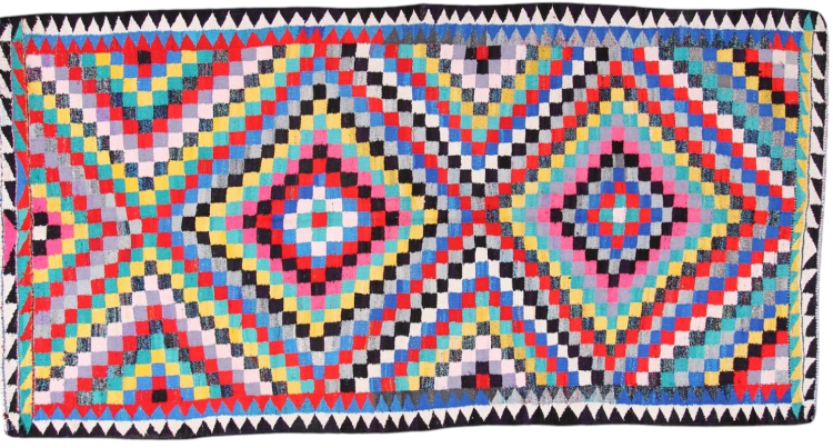 Dette teppet er laget for hånd på vevstolen som en flat veving. Flatweaves er tepper som ikke har haug. Som navnet antyder er disse teppene vevd og ikke knyttet. Dette resulterer i et flatt teppe med en strukturert overflate. Flatvev er ikke så myke og stort sett tynnere enn knyttede tepper. Samtidig er de betydelig mindre komplekse å produsere og kan vanligvis utformes fra begge sider (foran og bak). Mønstrene deres er vanligvis geometriske, noe som skyldes stoffet.