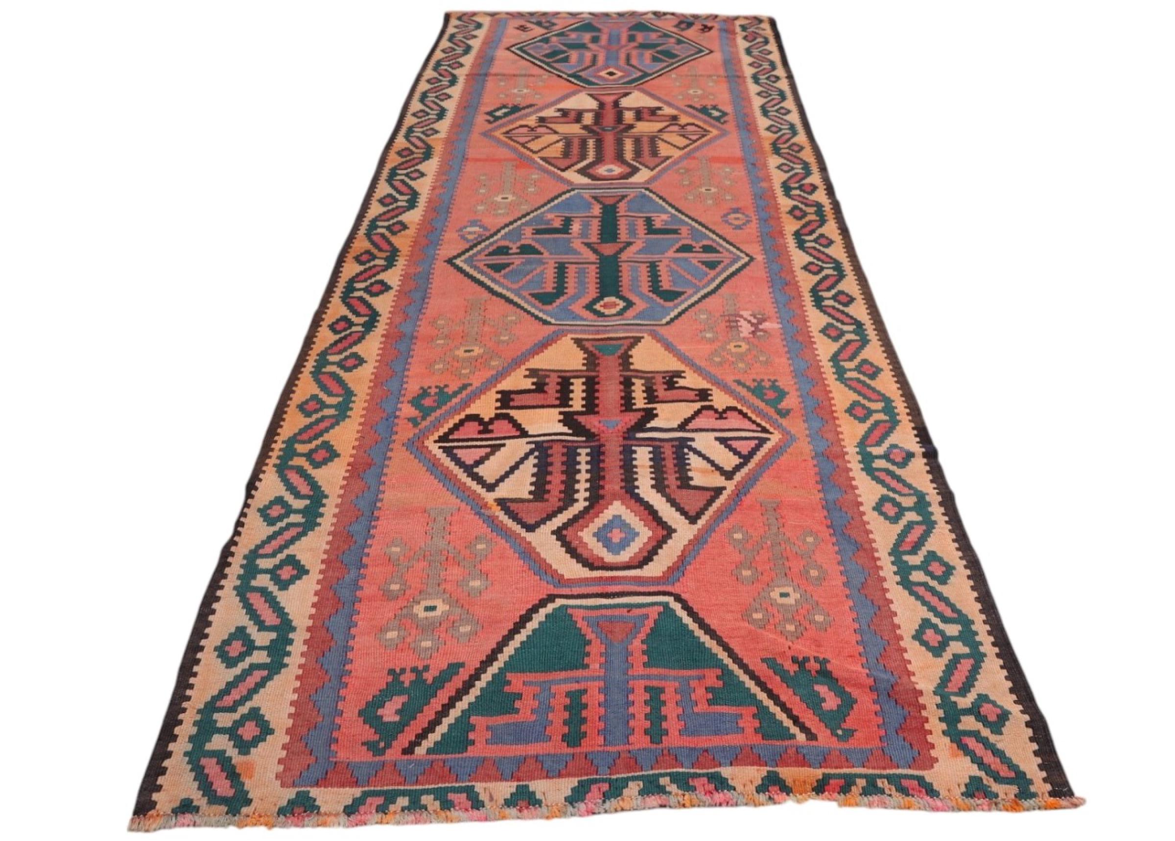 Teppenummer: 300254002046484 Størrelse: 387x144 cm Tykkelse: ca. 4 mm Bearbeiding: Handwoven Søm: Håndspunnet Ull Kjede: Ull Opprinnelse: Persia / Iran Alder: Gammelt/halv-antikt, eldre enn 50 år Vekt: ca. 8 kg Antall på lager: Unikt - Kun 1 stk i lager
