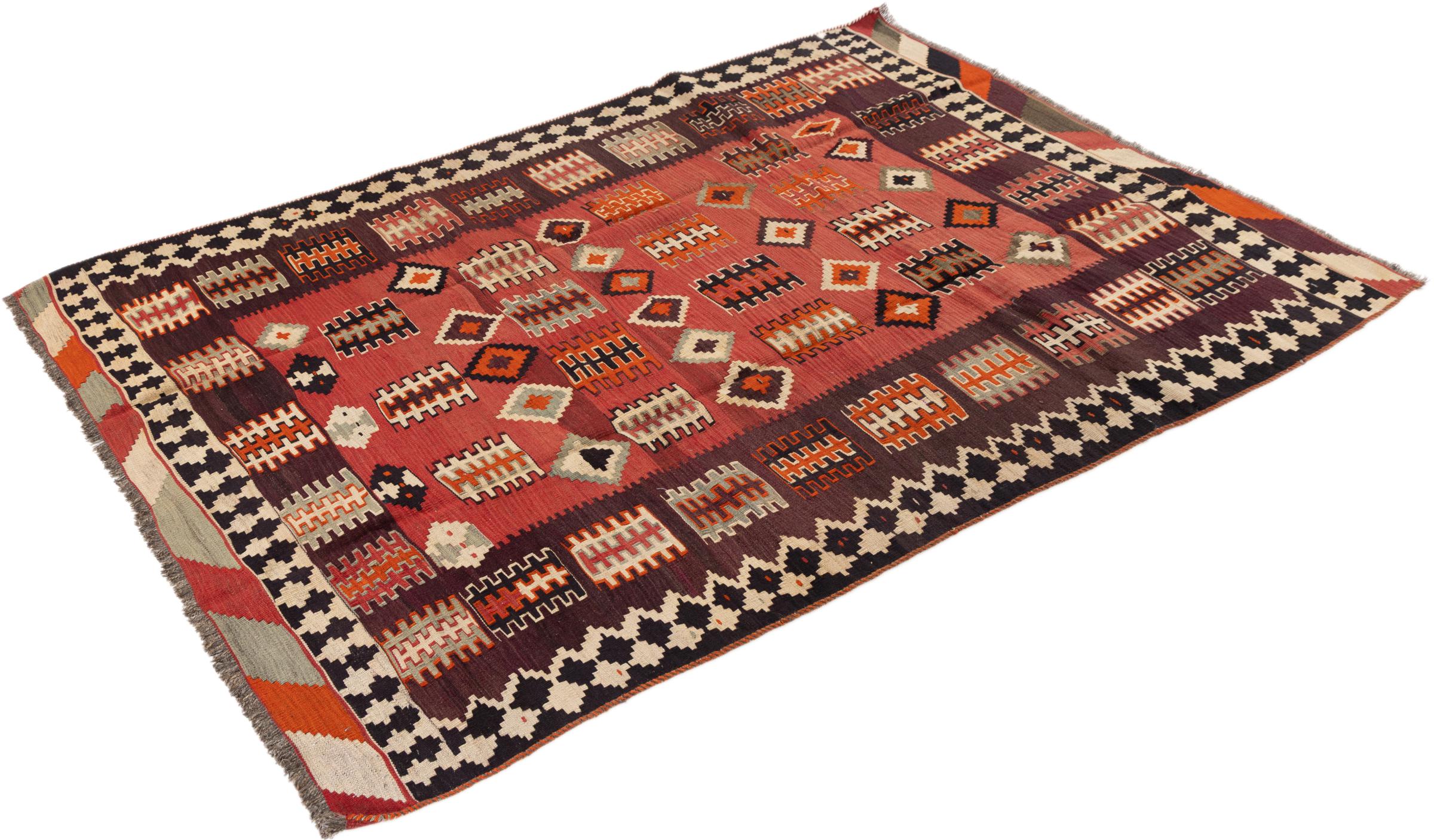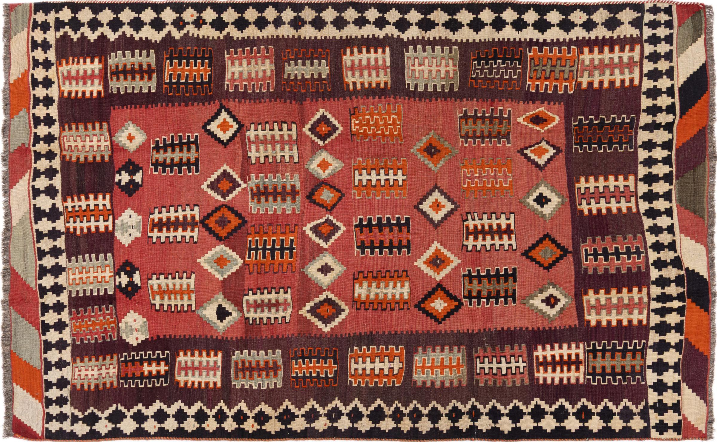Denne håndvevde kelim fars kombinerer persiske mønstre og ornamenter med tradisjonen med flatvev. En flott og moderne kombinasjon av de mest populære konseptene fra Orienten. Dette skaper et teppe med en lang rekke bruksområder. Enten som sengeteppe eller som teppe foran sofaen – en Fars kelim gjør det mulig og er nå å finne i de mest kjente interiørmagasinene. Kilim Fars-tepper er vevd for hånd i Iran og er derfor blant kelimer av høyeste kvalitet.