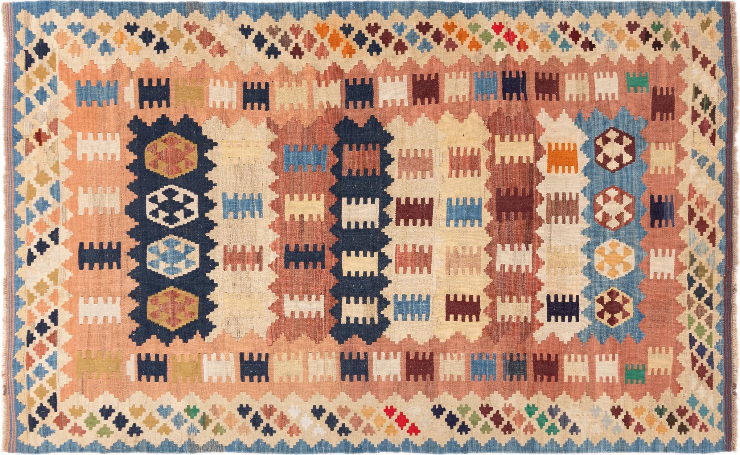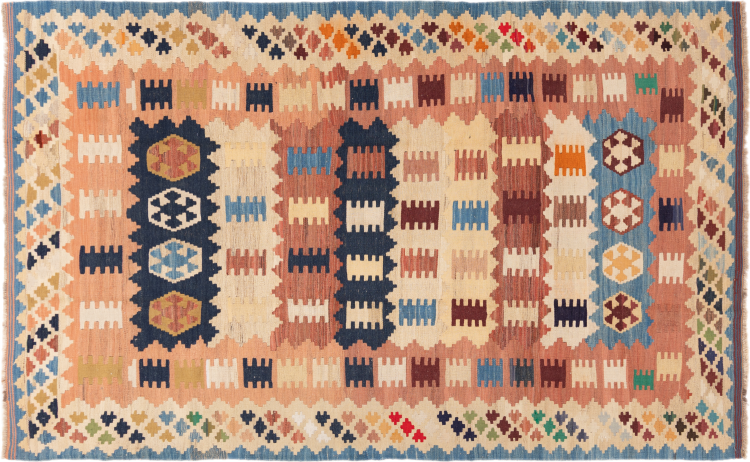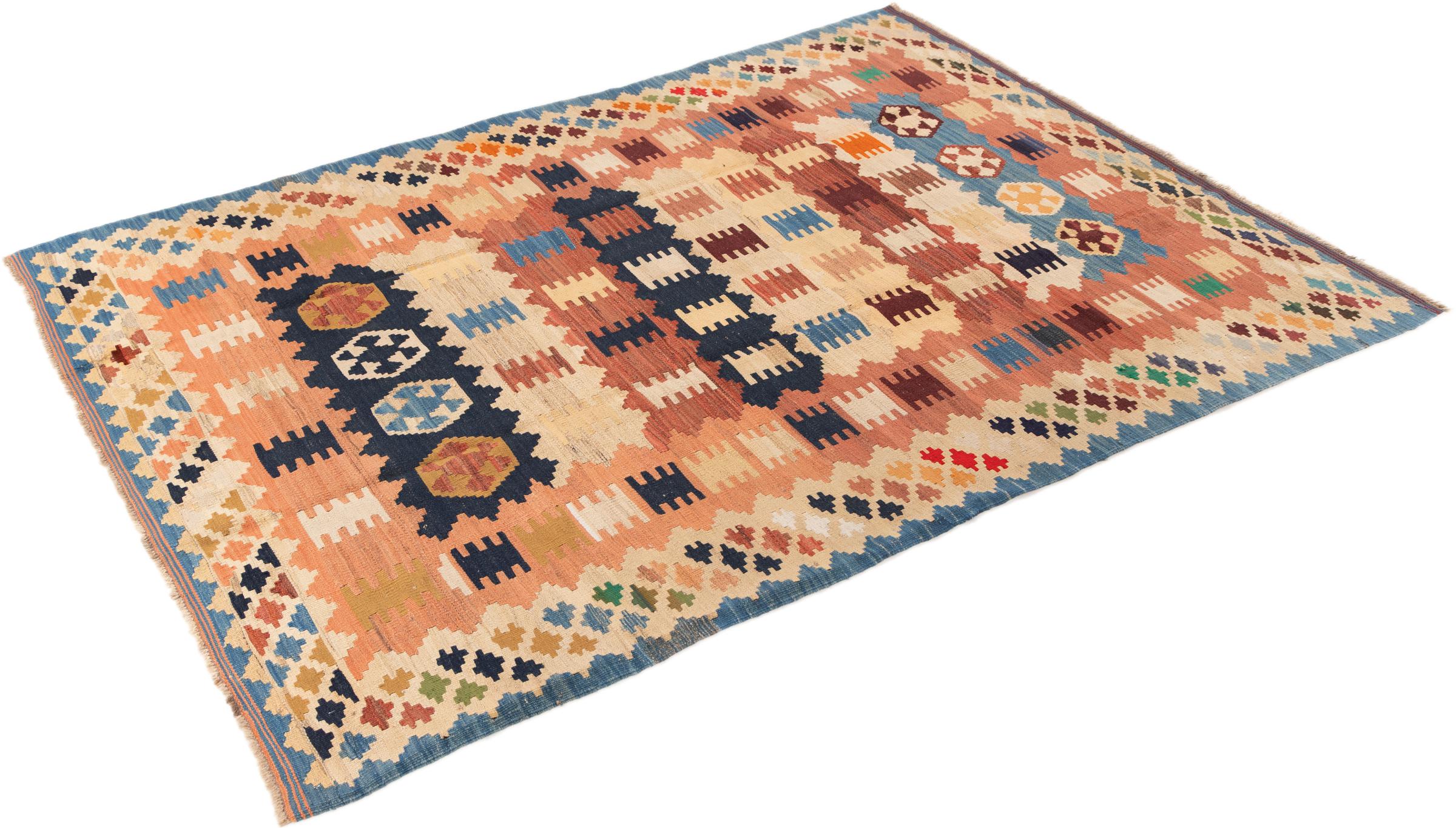 Denne håndvevde kelim fars kombinerer persiske mønstre og ornamenter med tradisjonen med flatvev. En flott og moderne kombinasjon av de mest populære konseptene fra Orienten. Dette skaper et teppe med en lang rekke bruksområder. Enten som sengeteppe eller som teppe foran sofaen – en Fars kelim gjør det mulig og er nå å finne i de mest kjente interiørmagasinene. Kilim Fars-tepper er vevd for hånd i Iran og er derfor blant kelimer av høyeste kvalitet.