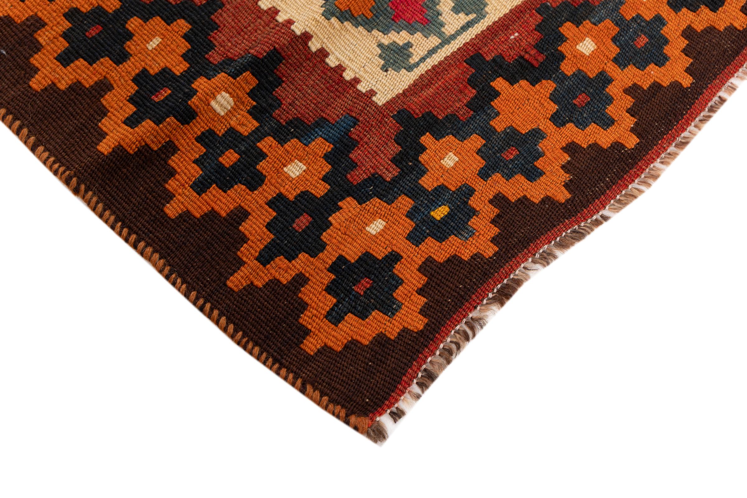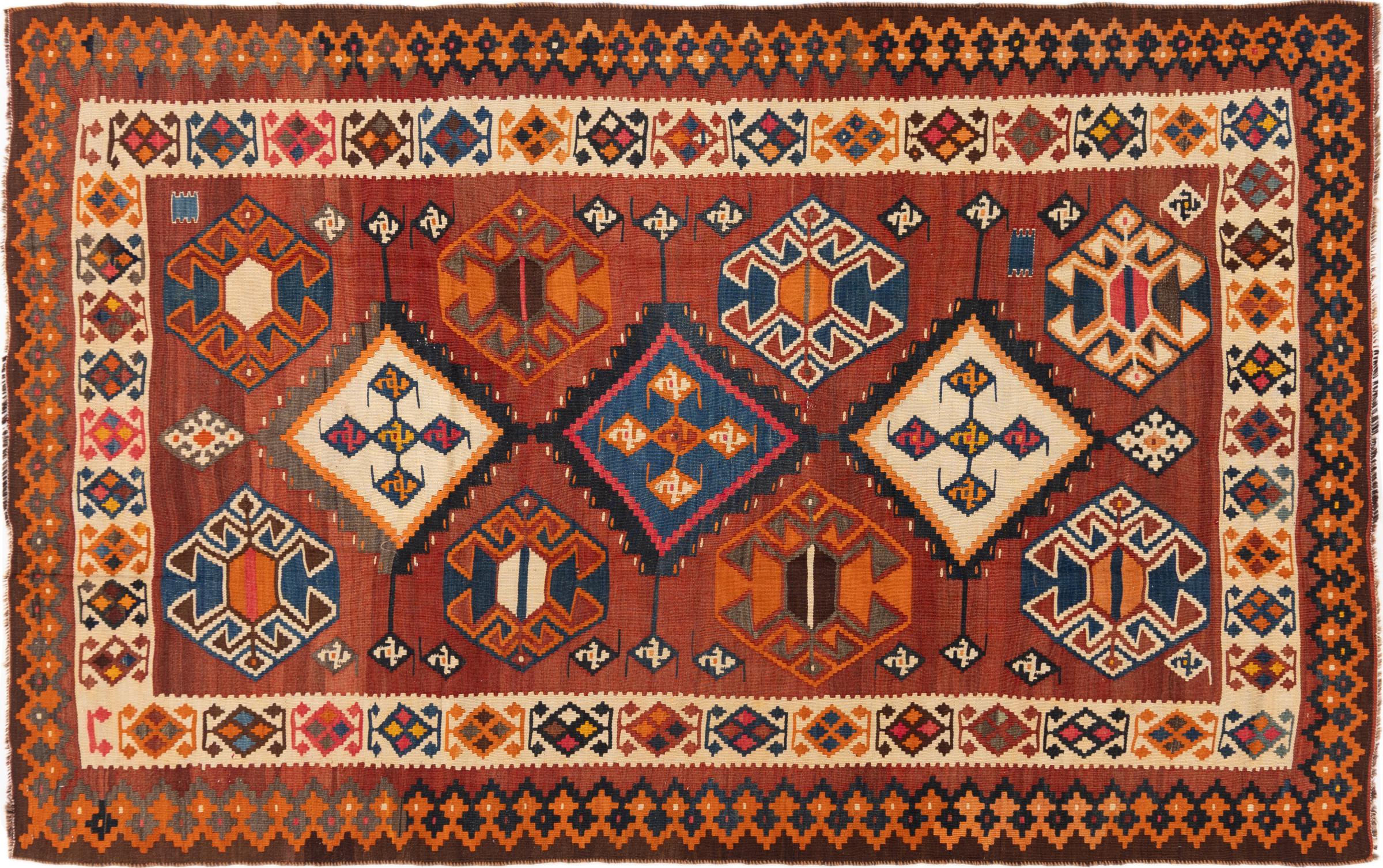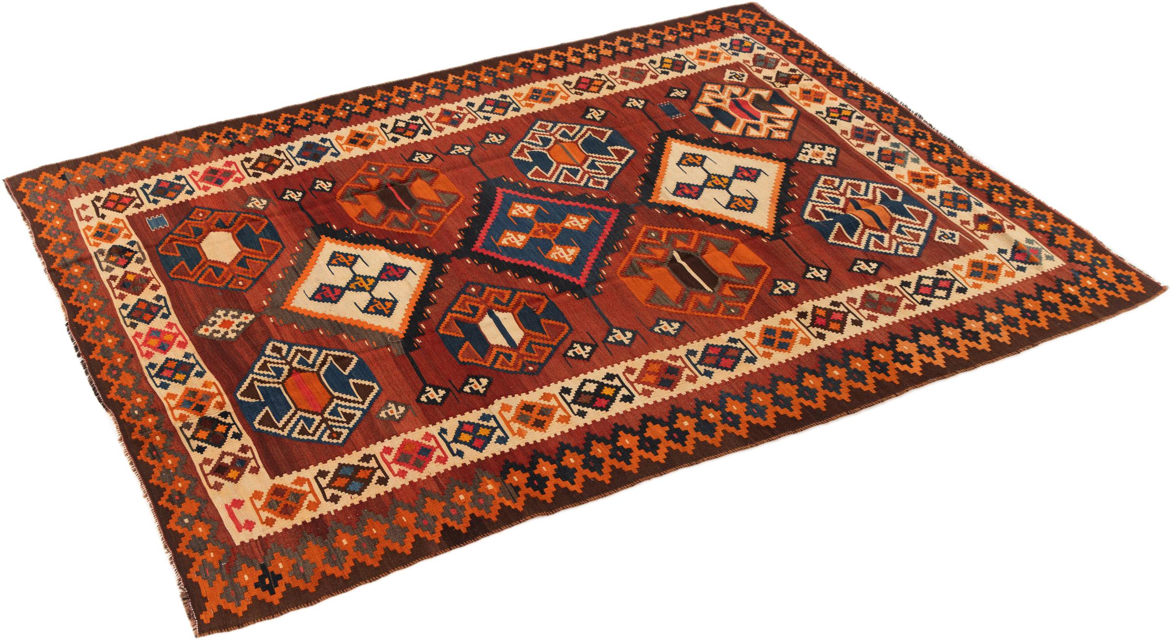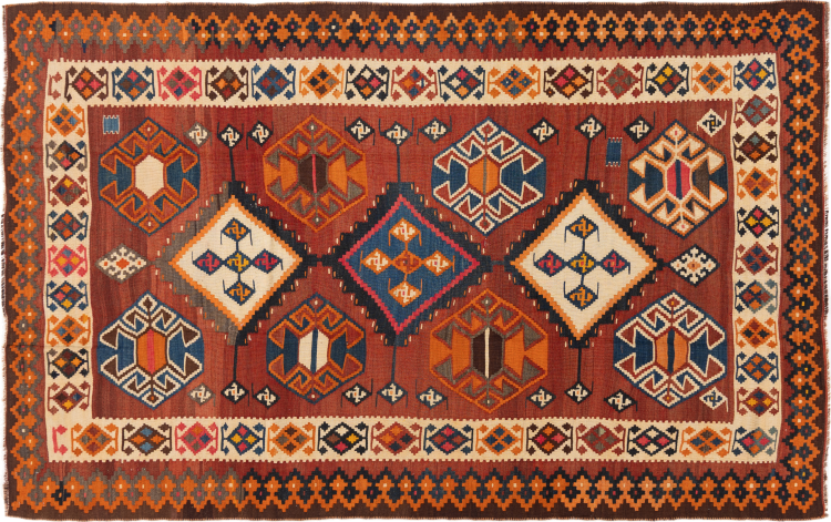 Denne håndvevde kelim fars kombinerer persiske mønstre og ornamenter med tradisjonen med flatvev. En flott og moderne kombinasjon av de mest populære konseptene fra Orienten. Dette skaper et teppe med en lang rekke bruksområder. Enten som sengeteppe eller som teppe foran sofaen – en Fars kelim gjør det mulig og er nå å finne i de mest kjente interiørmagasinene. Kilim Fars-tepper er vevd for hånd i Iran og er derfor blant kelimer av høyeste kvalitet.
