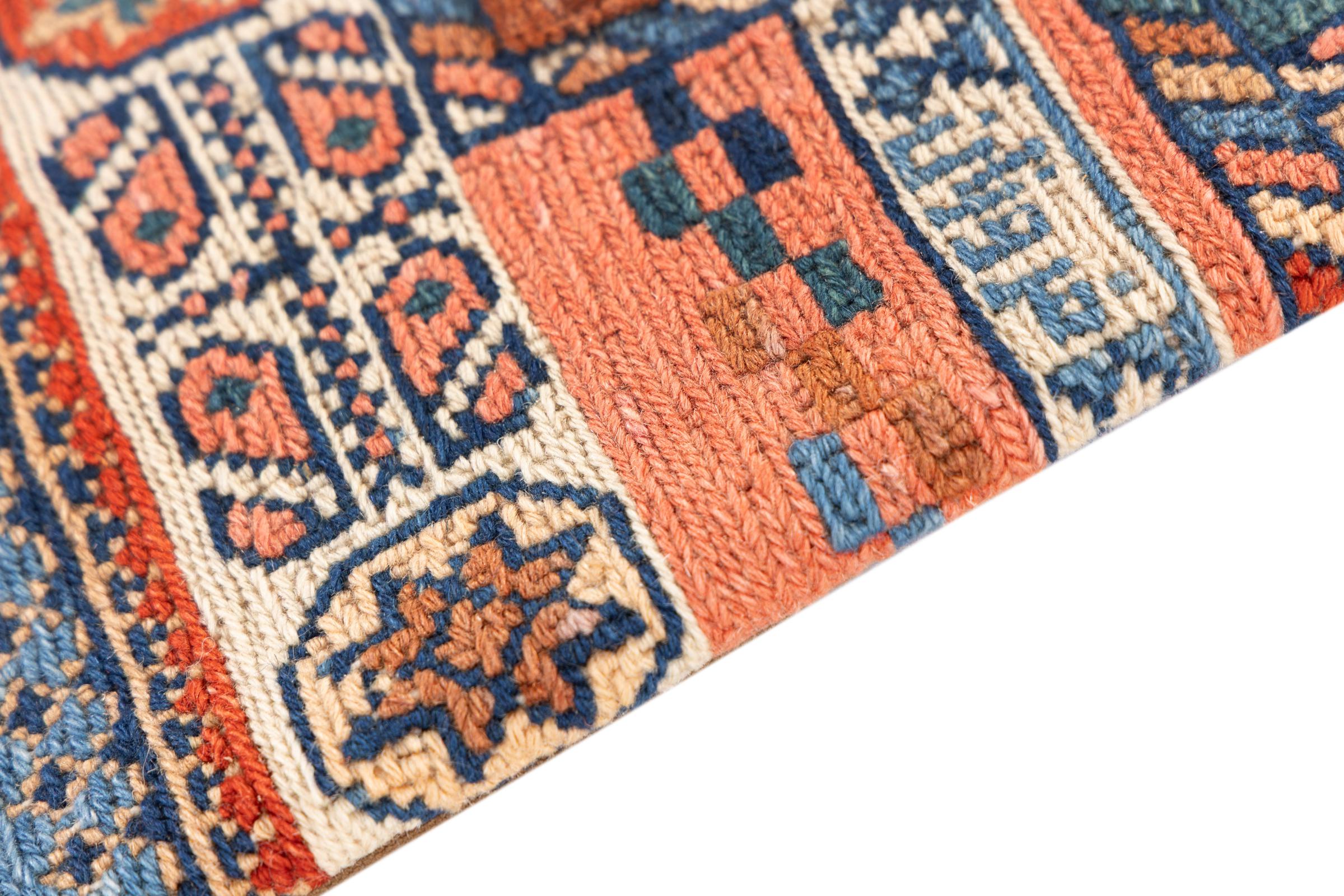 Denne håndvevde kelim fars kombinerer persiske mønstre og ornamenter med tradisjonen med flatvev. En flott og moderne kombinasjon av de mest populære konseptene fra Orienten. Dette skaper et teppe med en lang rekke bruksområder. Enten som sengeteppe eller som teppe foran sofaen – en Fars kelim gjør det mulig og er nå å finne i de mest kjente interiørmagasinene. Kilim Fars-tepper er vevd for hånd i Iran og er derfor blant kelimer av høyeste kvalitet.