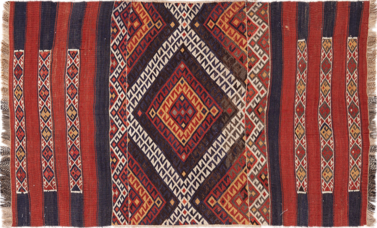 Dette teppet er laget for hånd på vevstolen som en flat veving. Flatweaves er tepper som ikke har haug. Som navnet antyder er disse teppene vevd og ikke knyttet. Dette resulterer i et flatt teppe med en strukturert overflate. Flatvev er ikke så myke og stort sett tynnere enn knyttede tepper. Samtidig er de betydelig mindre komplekse å produsere og kan vanligvis utformes fra begge sider (foran og bak). Mønstrene deres er vanligvis geometriske, noe som skyldes stoffet.