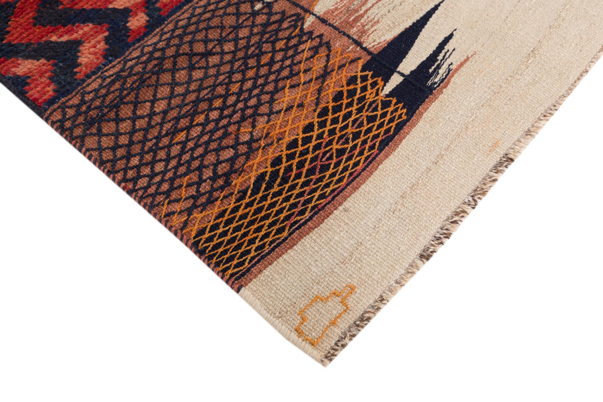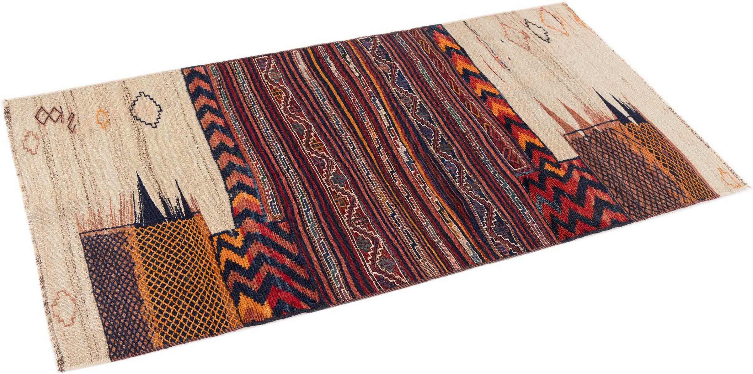 Denne håndvevde kelim fars kombinerer persiske mønstre og ornamenter med tradisjonen med flatvev. En flott og moderne kombinasjon av de mest populære konseptene fra Orienten. Dette skaper et teppe med en lang rekke bruksområder. Enten som sengeteppe eller som teppe foran sofaen – en Fars kelim gjør det mulig og er nå å finne i de mest kjente interiørmagasinene. Kilim Fars-tepper er vevd for hånd i Iran og er derfor blant kelimer av høyeste kvalitet.