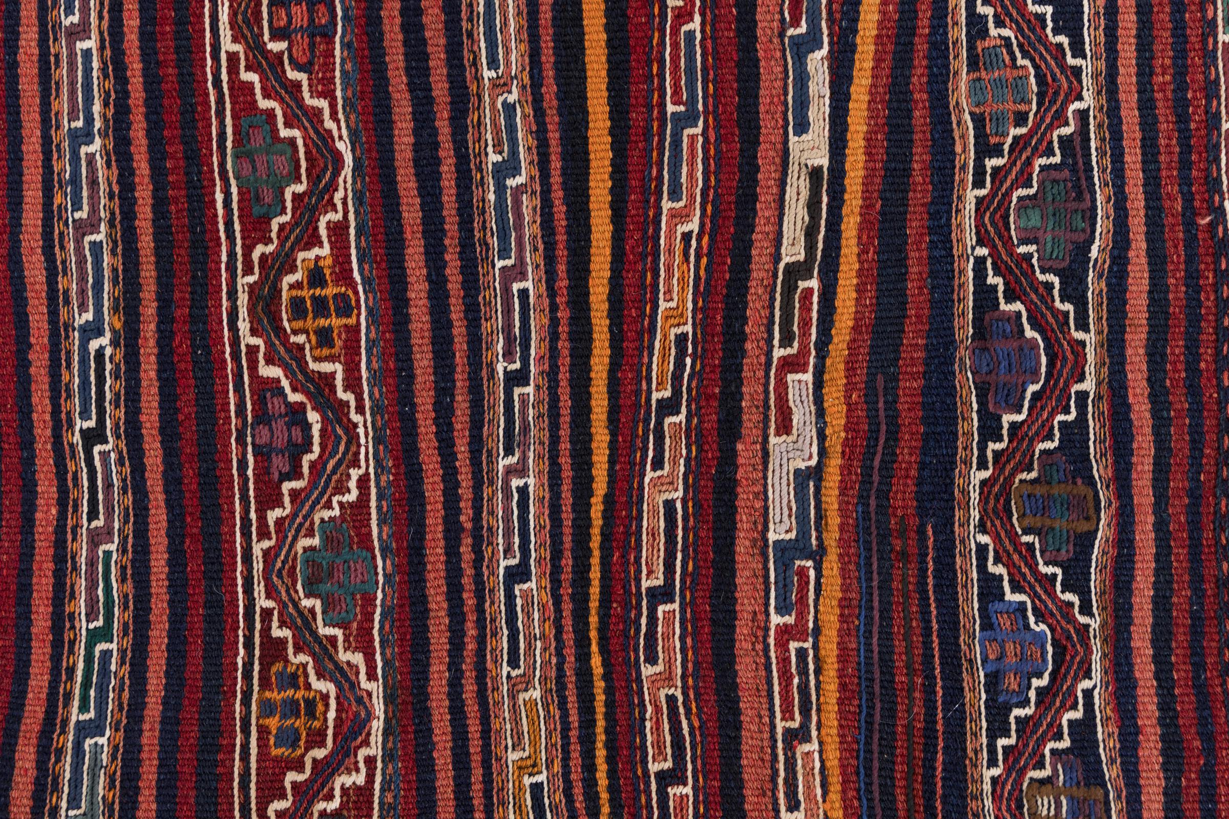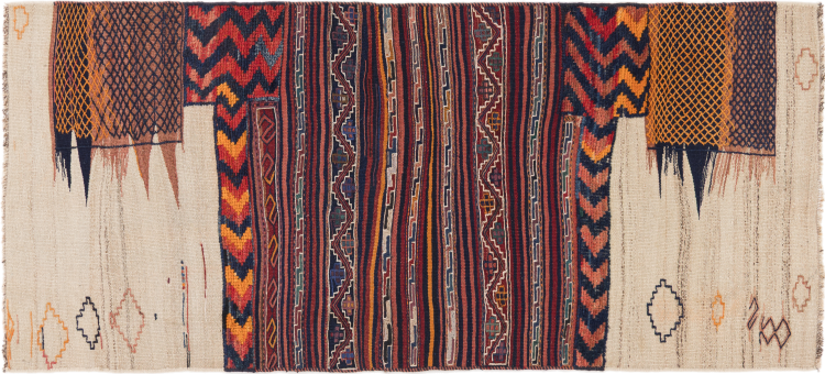 Dette teppet er laget for hånd på vevstolen som en flat veving. Flatweaves er tepper som ikke har haug. Som navnet antyder er disse teppene vevd og ikke knyttet. Dette resulterer i et flatt teppe med en strukturert overflate. Flatvev er ikke så myke og stort sett tynnere enn knyttede tepper. Samtidig er de betydelig mindre komplekse å produsere og kan vanligvis utformes fra begge sider (foran og bak). Mønstrene deres er vanligvis geometriske, noe som skyldes stoffet.