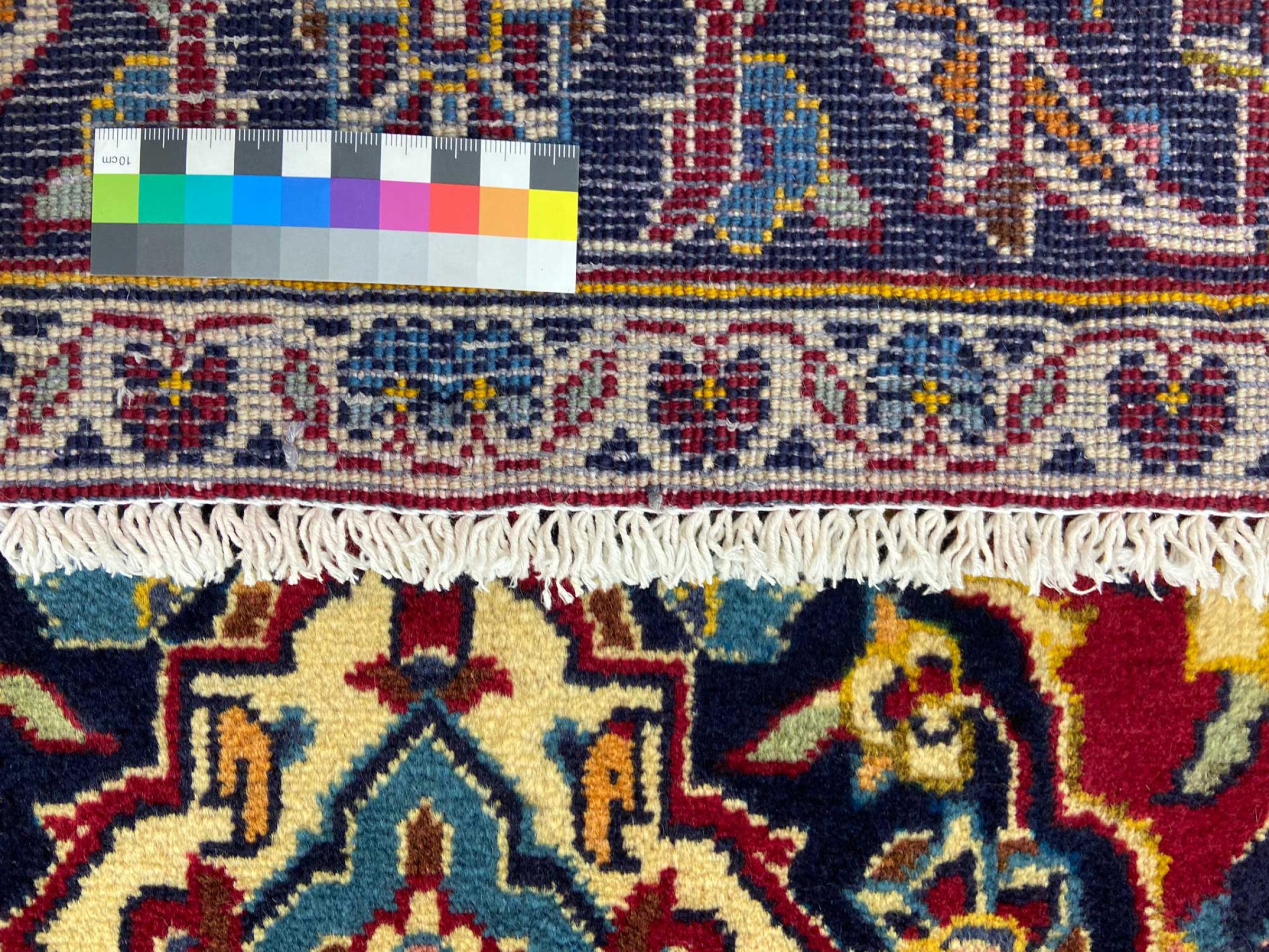 Dette teppet består av håndspunnet saueull av høyeste kvalitet. Spesielt i Iran (tidligere Persia), Afghanistan og Pakistan blir ull spunnet for hånd før teppet faktisk er knyttet. Ull har bevist seg som et naturlig og ekstremt slitesterkt materiale gjennom århundrer. Blant annet har den smussavvisende og varmeisolerende egenskaper. Samtidig er ull uten sammenligning myk og fører med seg en naturlig glans.