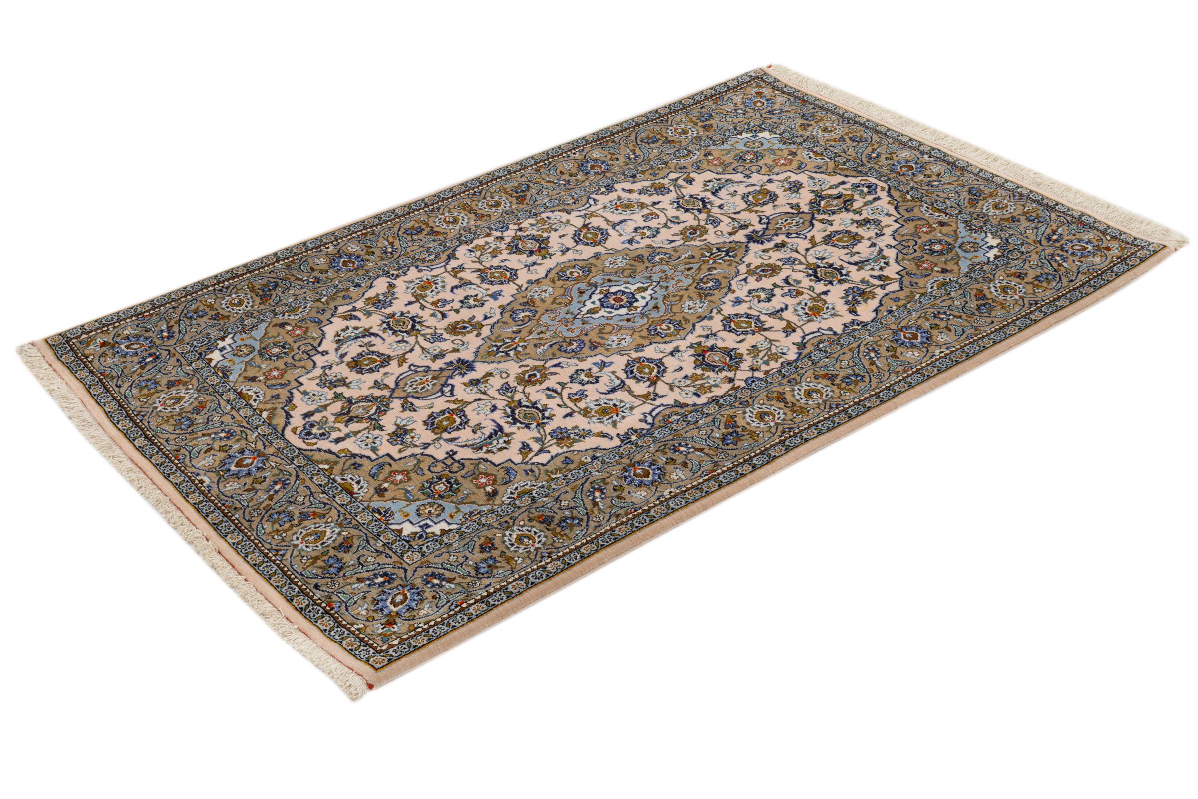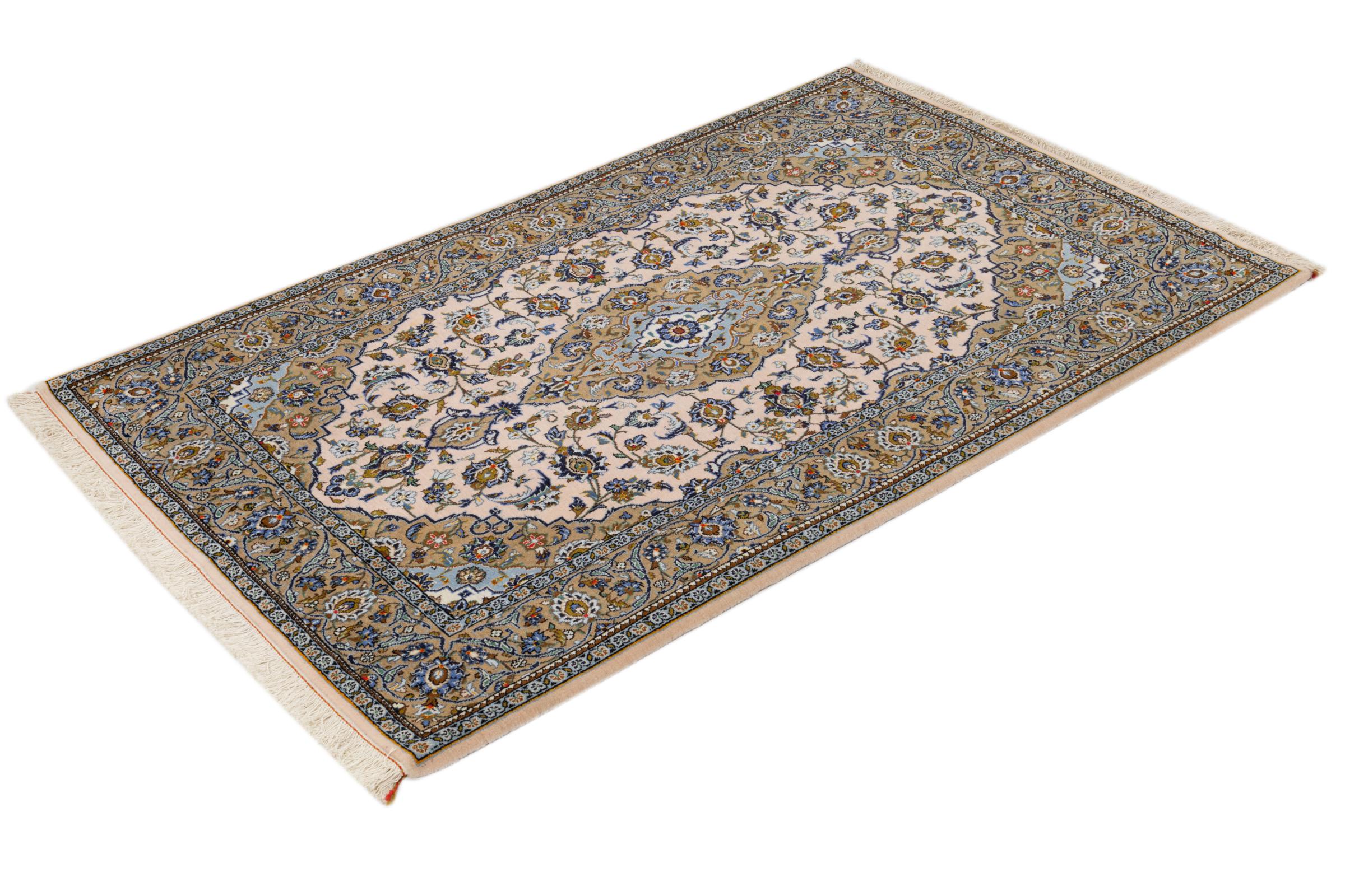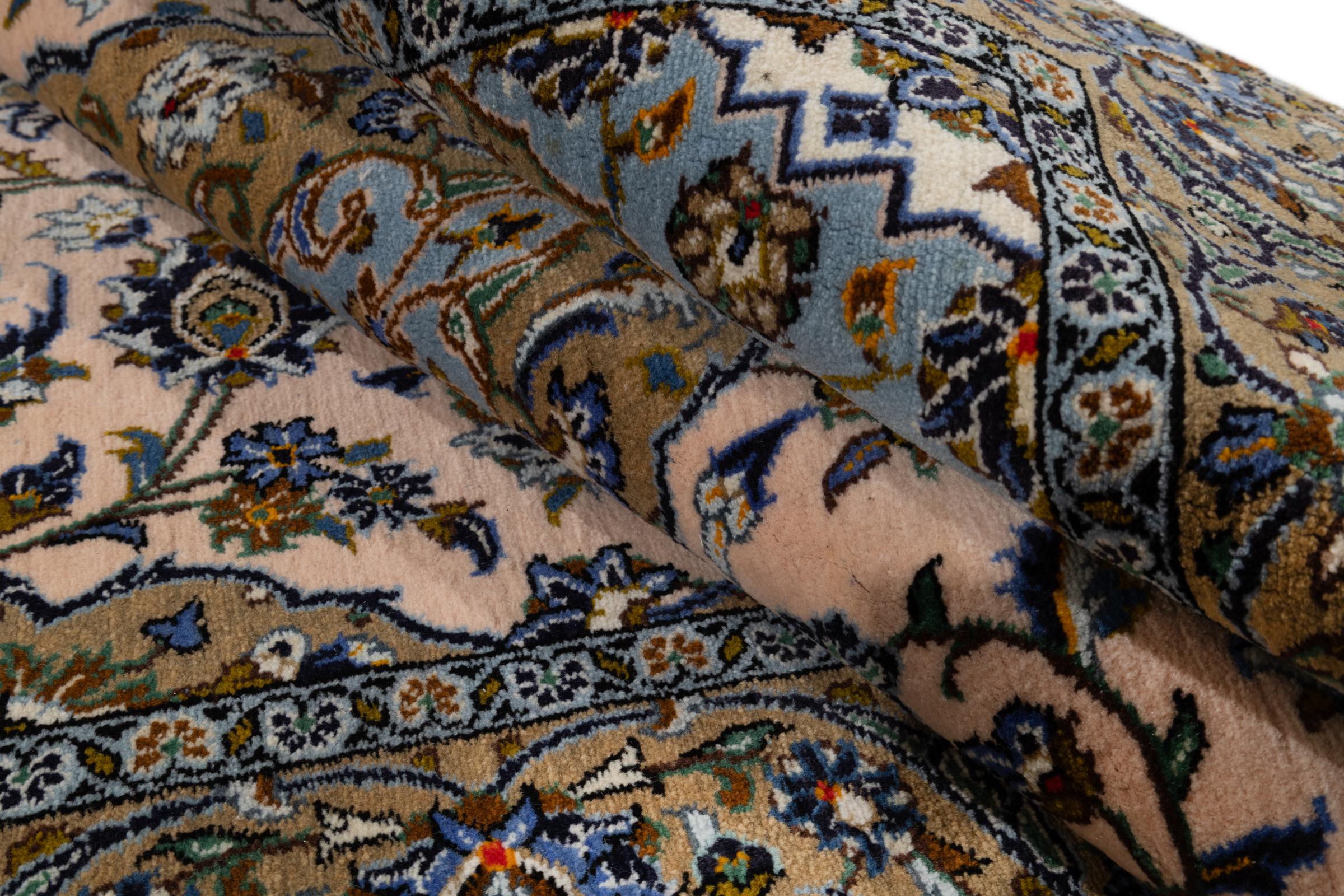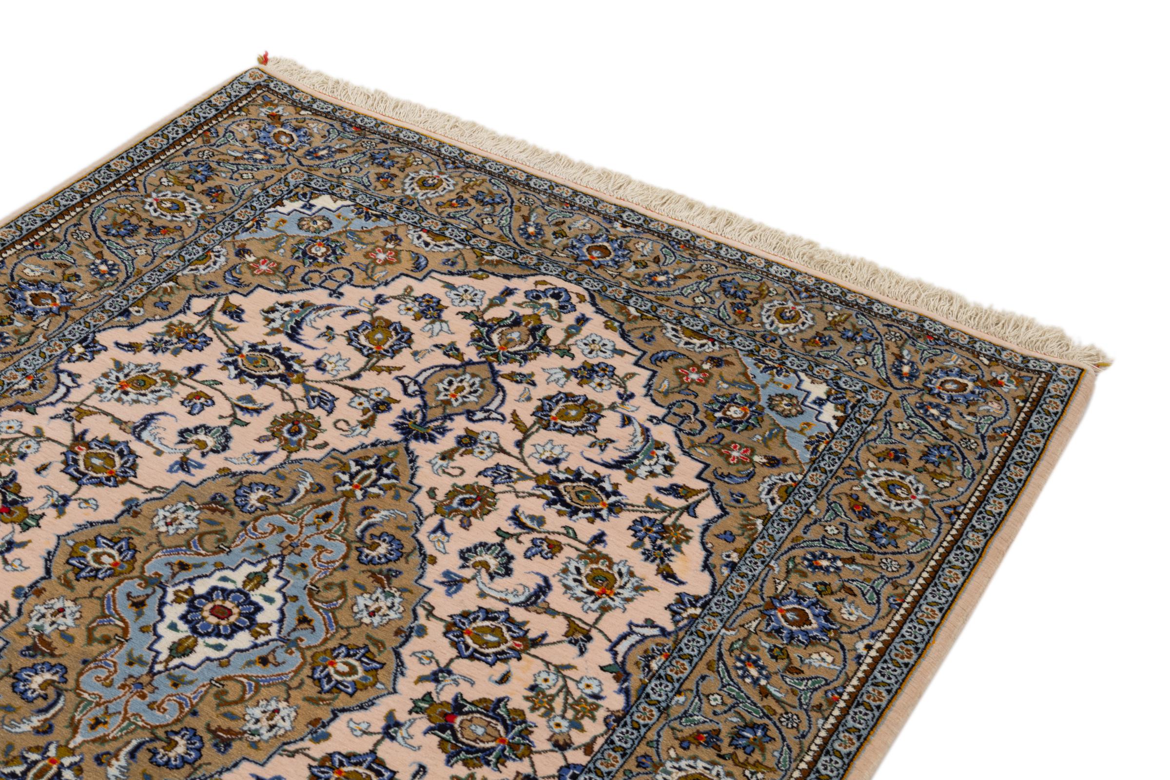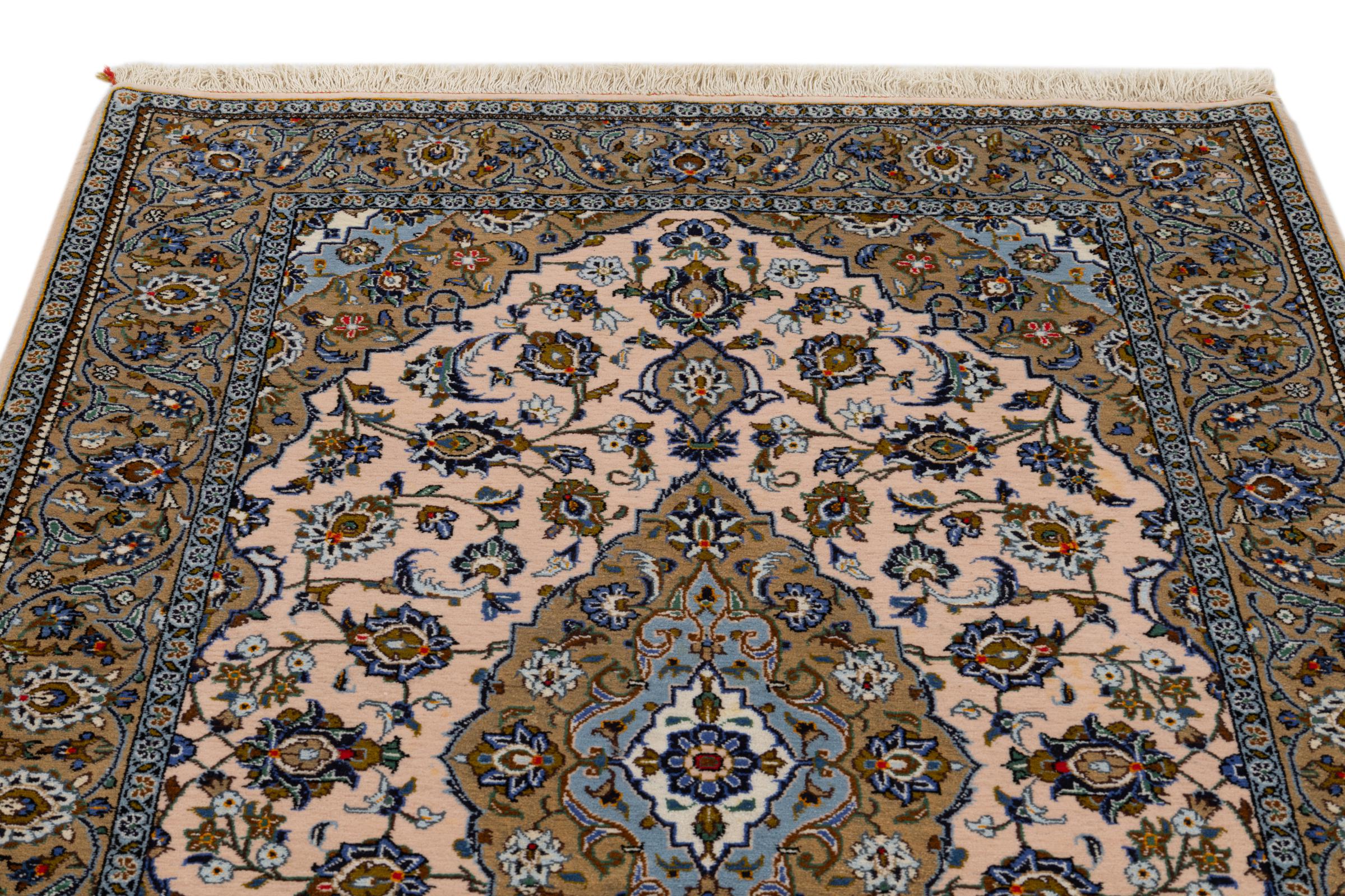 Dette teppet fra Kashan (Keshan) er holdt i sitt svært tradisjonelle og typiske persiske design med vakre ornamenter. Kashan-tepper er svært populære på grunn av deres eksepsjonelt elegante design. Disse teppene stammer fra Kashan, en by på den gamle Silkeveien. Dette teppet er håndknyttet av høykvalitets saueull og kommer til å bli et unikt høydepunkt i hjemmet ditt.