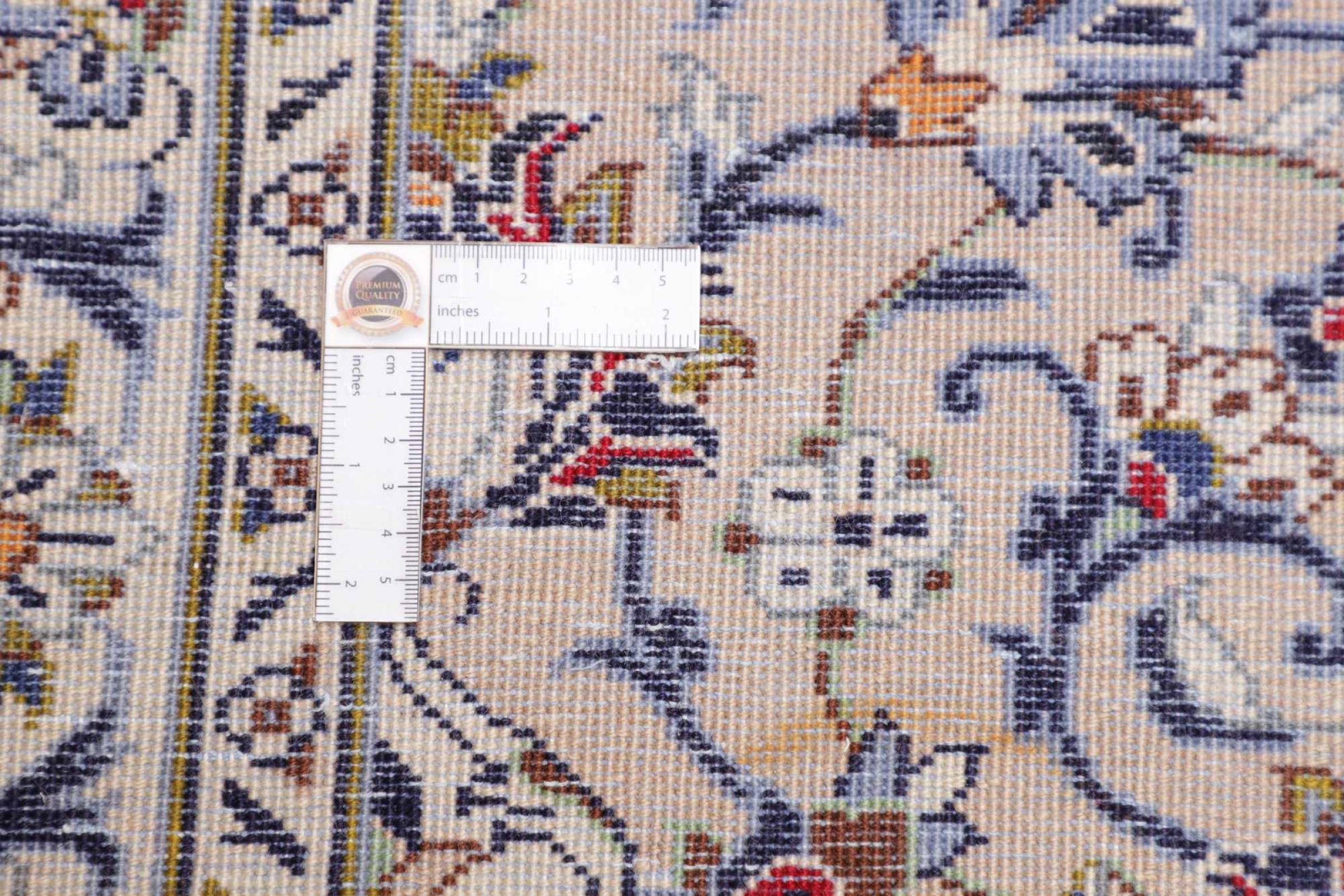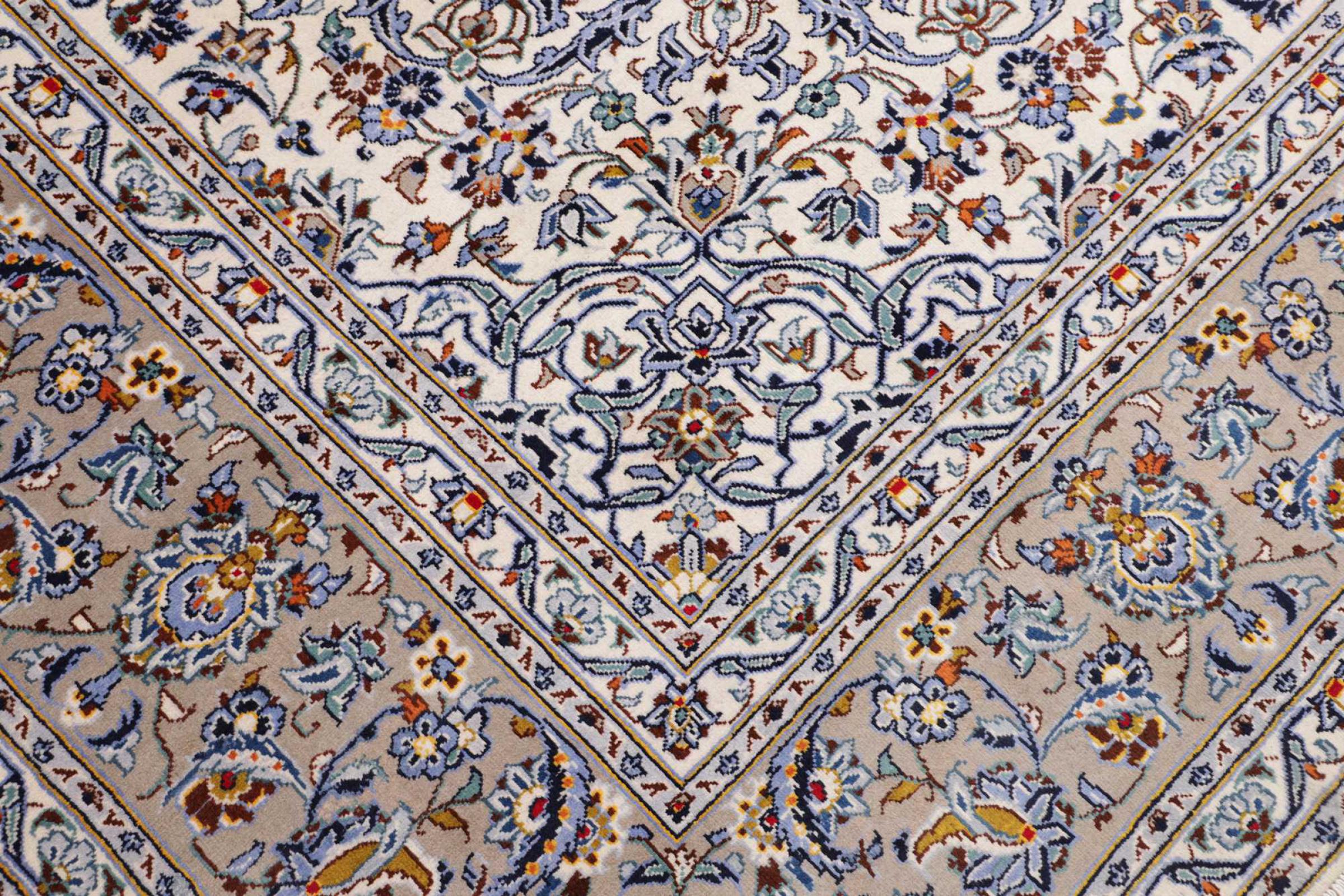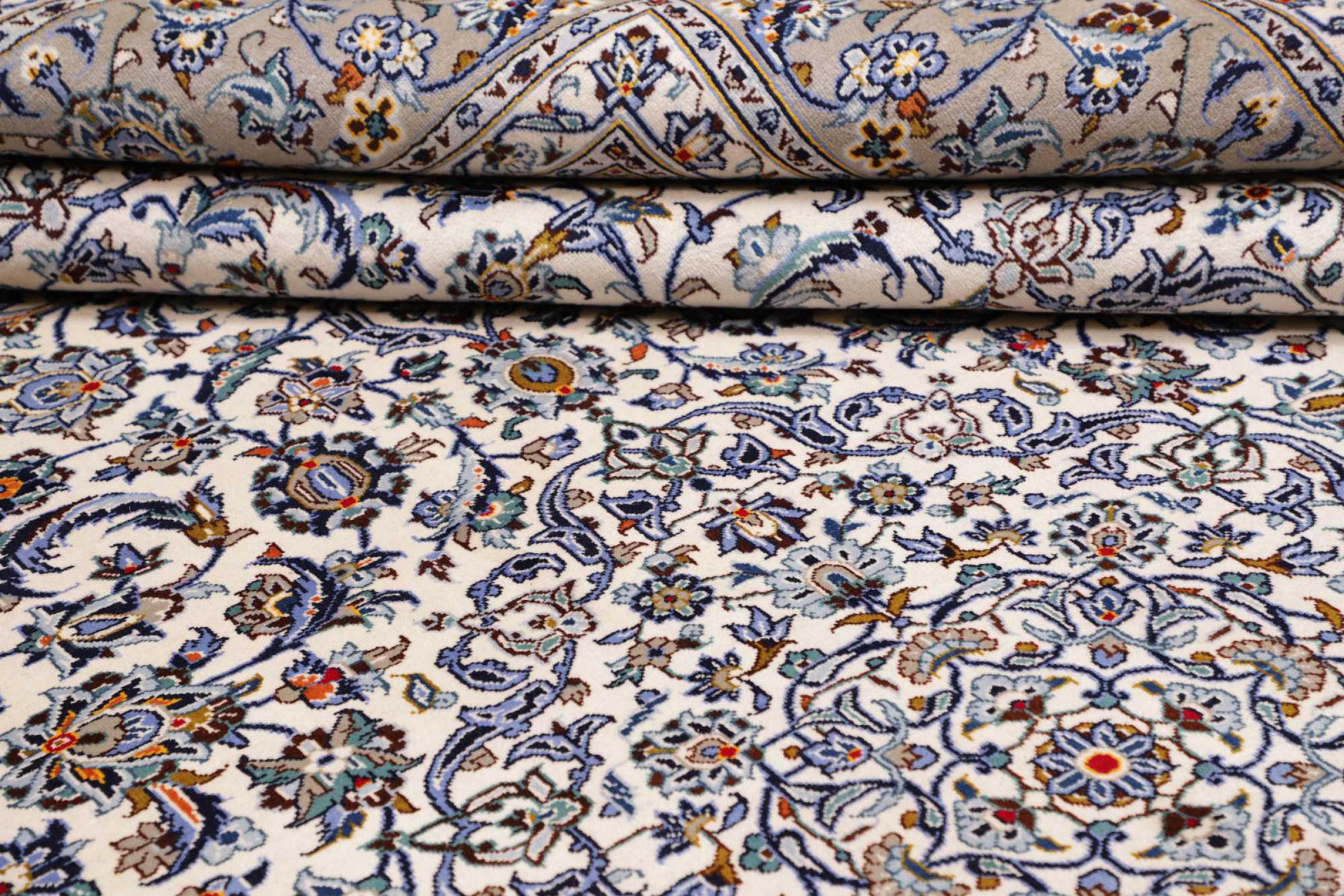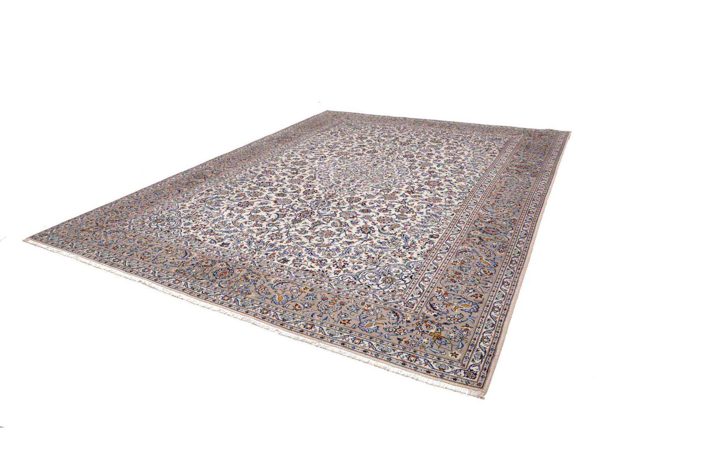 Dette teppet fra Kashan (Keshan) er holdt i sitt svært tradisjonelle og typiske persiske design med vakre ornamenter. Kashan-tepper er svært populære på grunn av deres eksepsjonelt elegante design. Disse teppene stammer fra Kashan, en by på den gamle Silkeveien. Dette teppet er håndknyttet av høykvalitets saueull og kommer til å bli et unikt høydepunkt i hjemmet ditt.