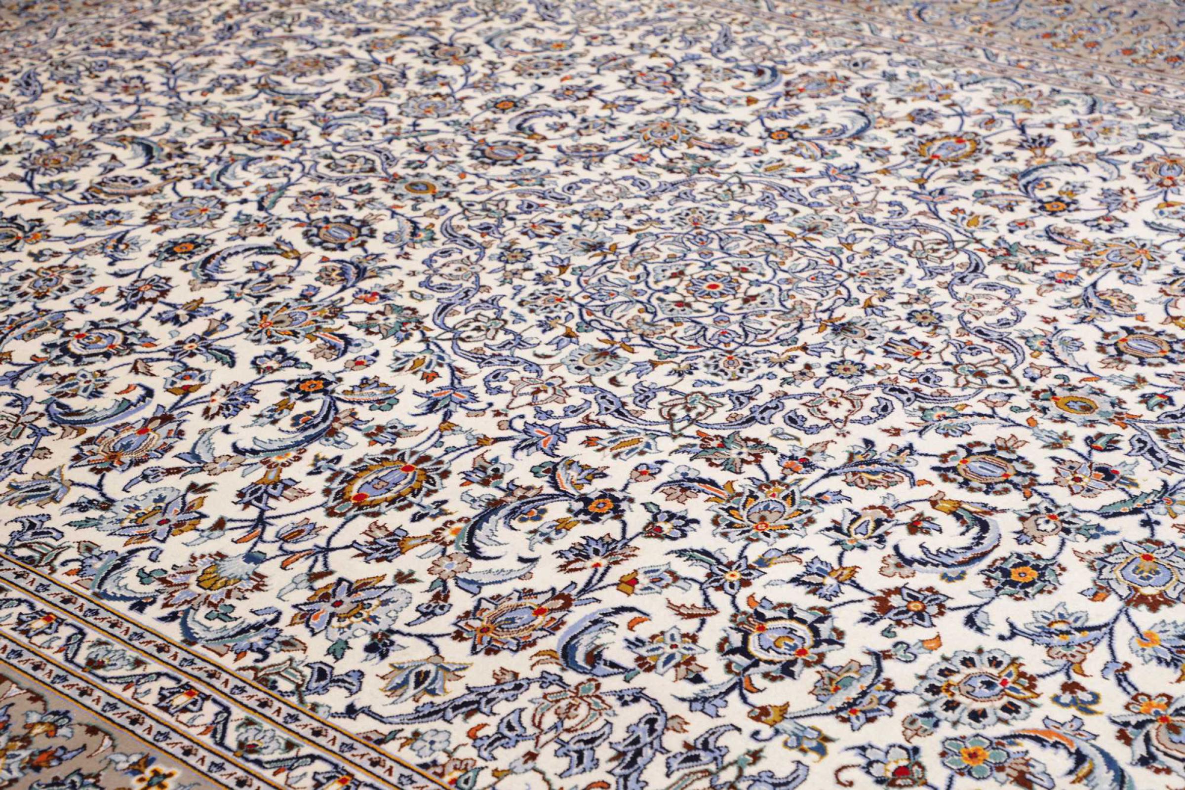 Teppenummer: 284349004196191 Størrelse: 402x299 cm Tykkelse: ca. 12 mm Knuter: 160 000 - 200 000 / m² Bearbeiding: Knyttet for hånd Søm: Håndspunnet Ull Kjede: Bomull Opprinnelse: Persia / Iran Alder: Nytt Vekt: ca. 42 kg Antall på lager: Unikt - Kun 1 stk i lager