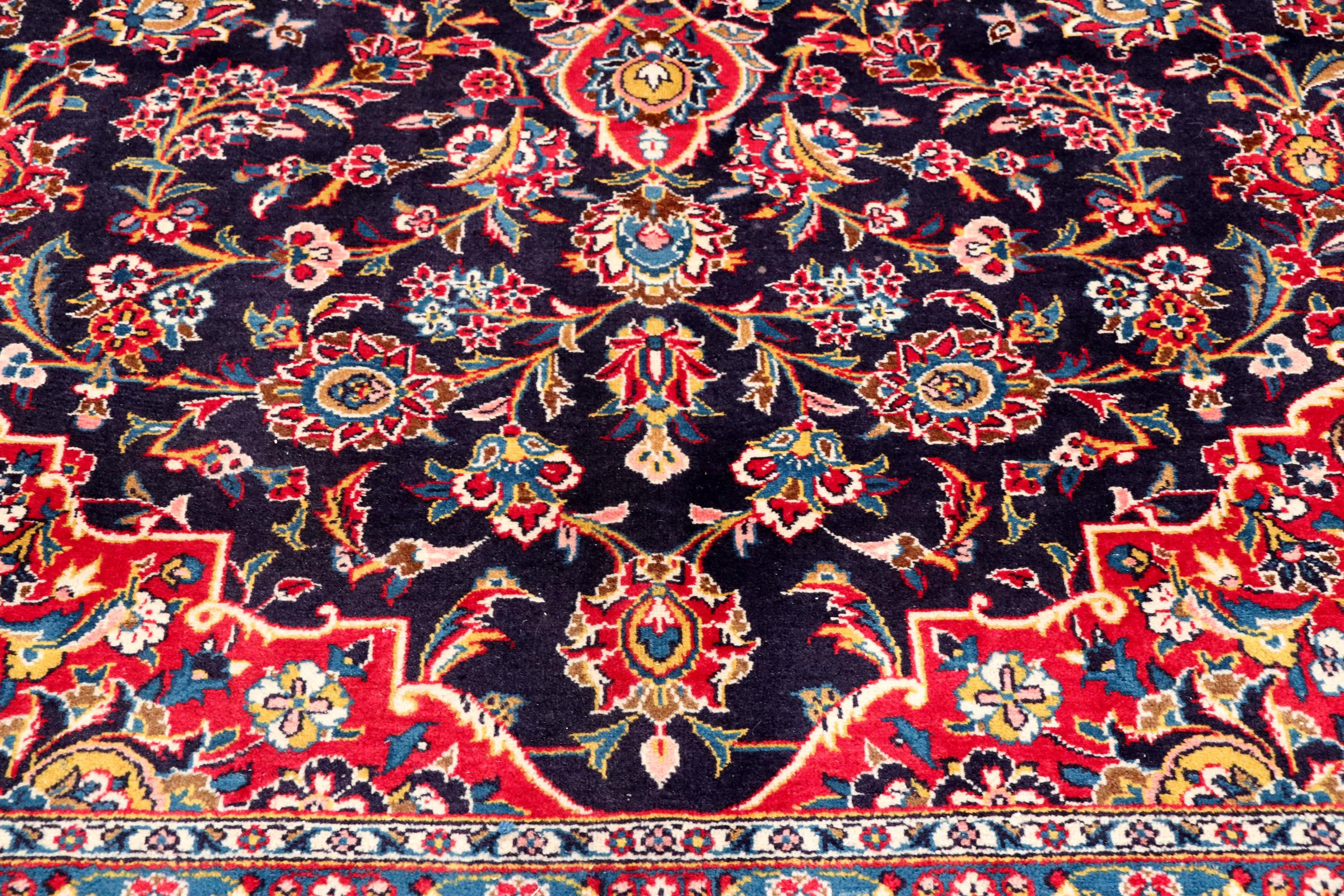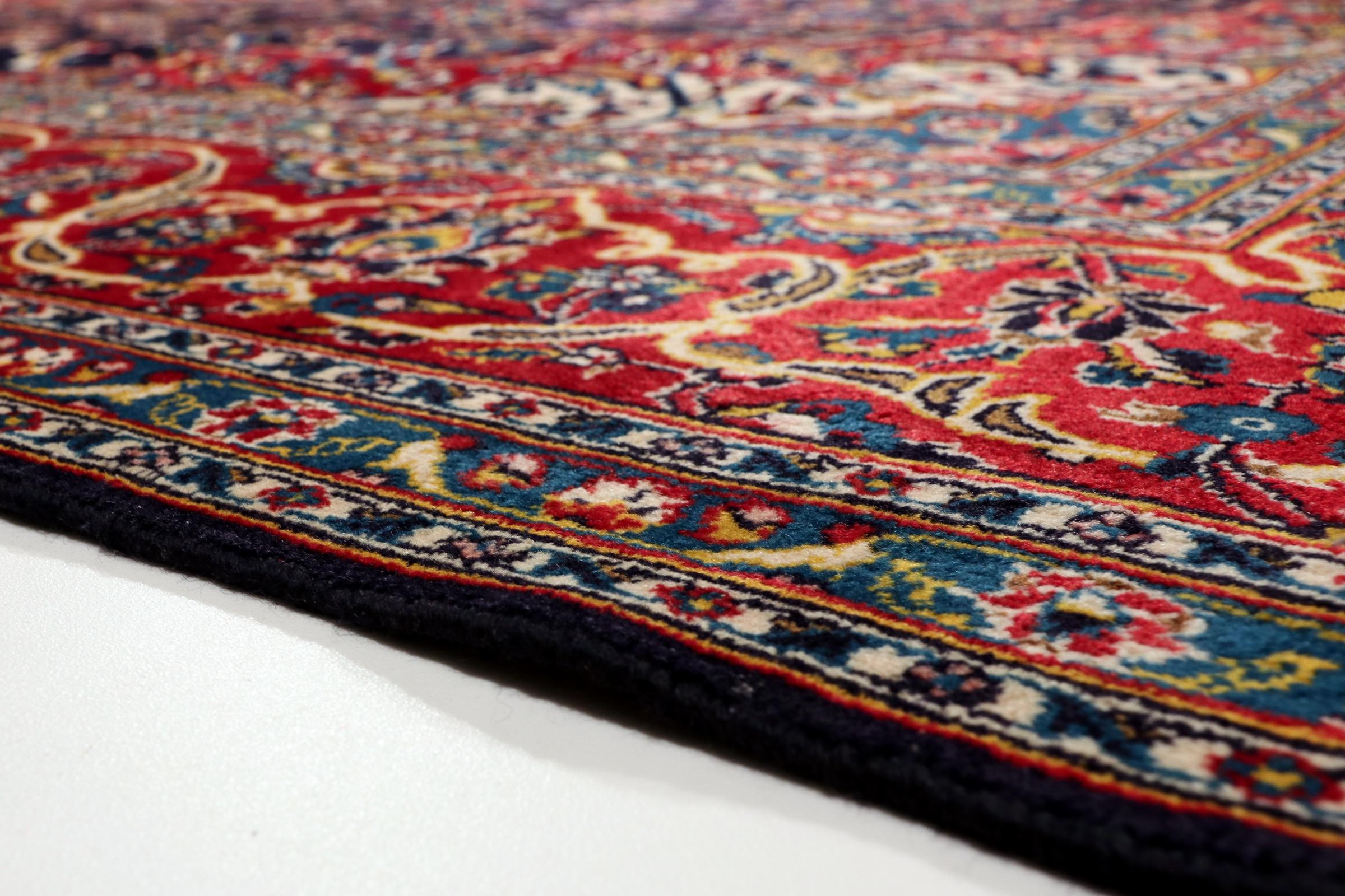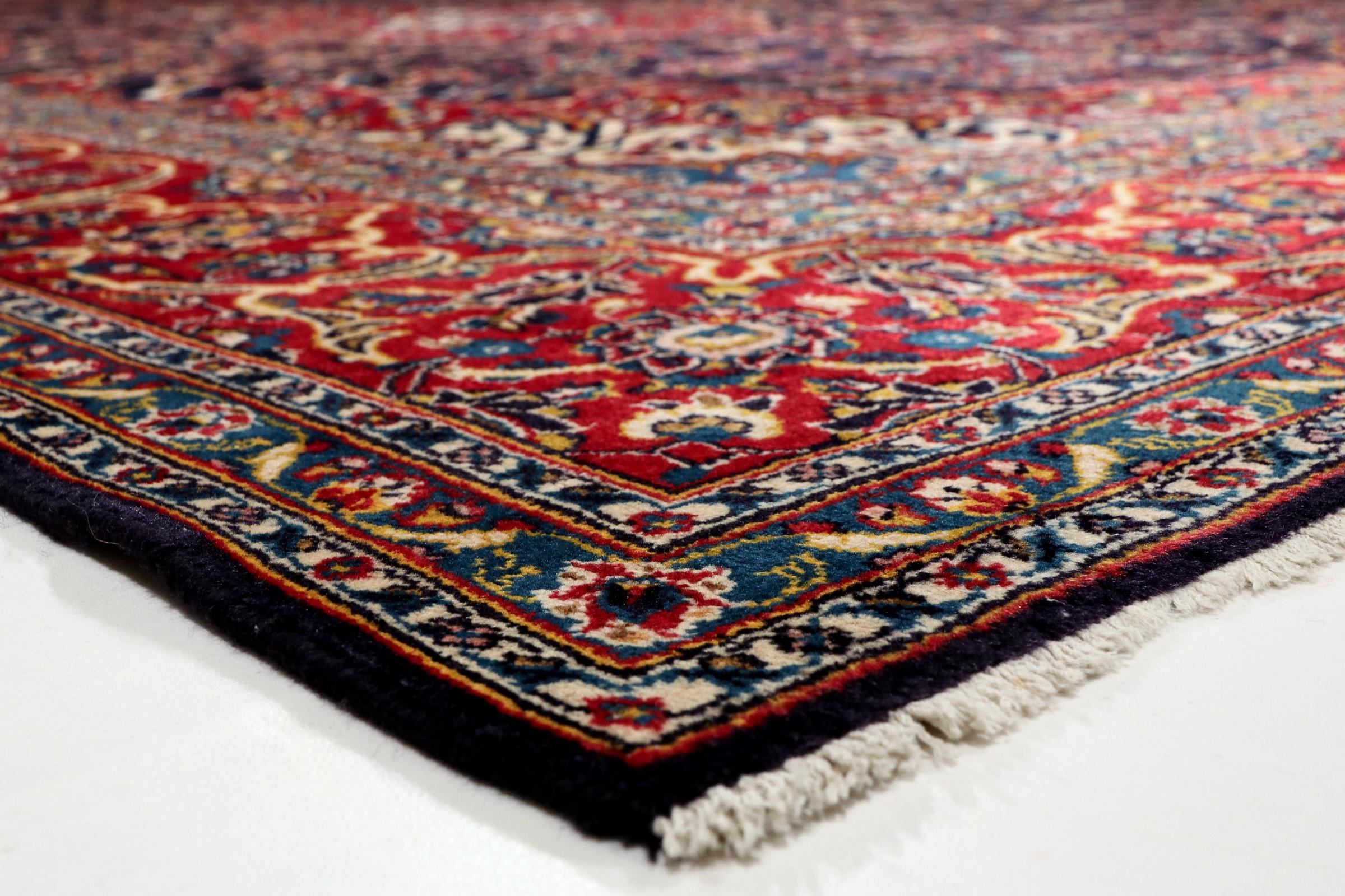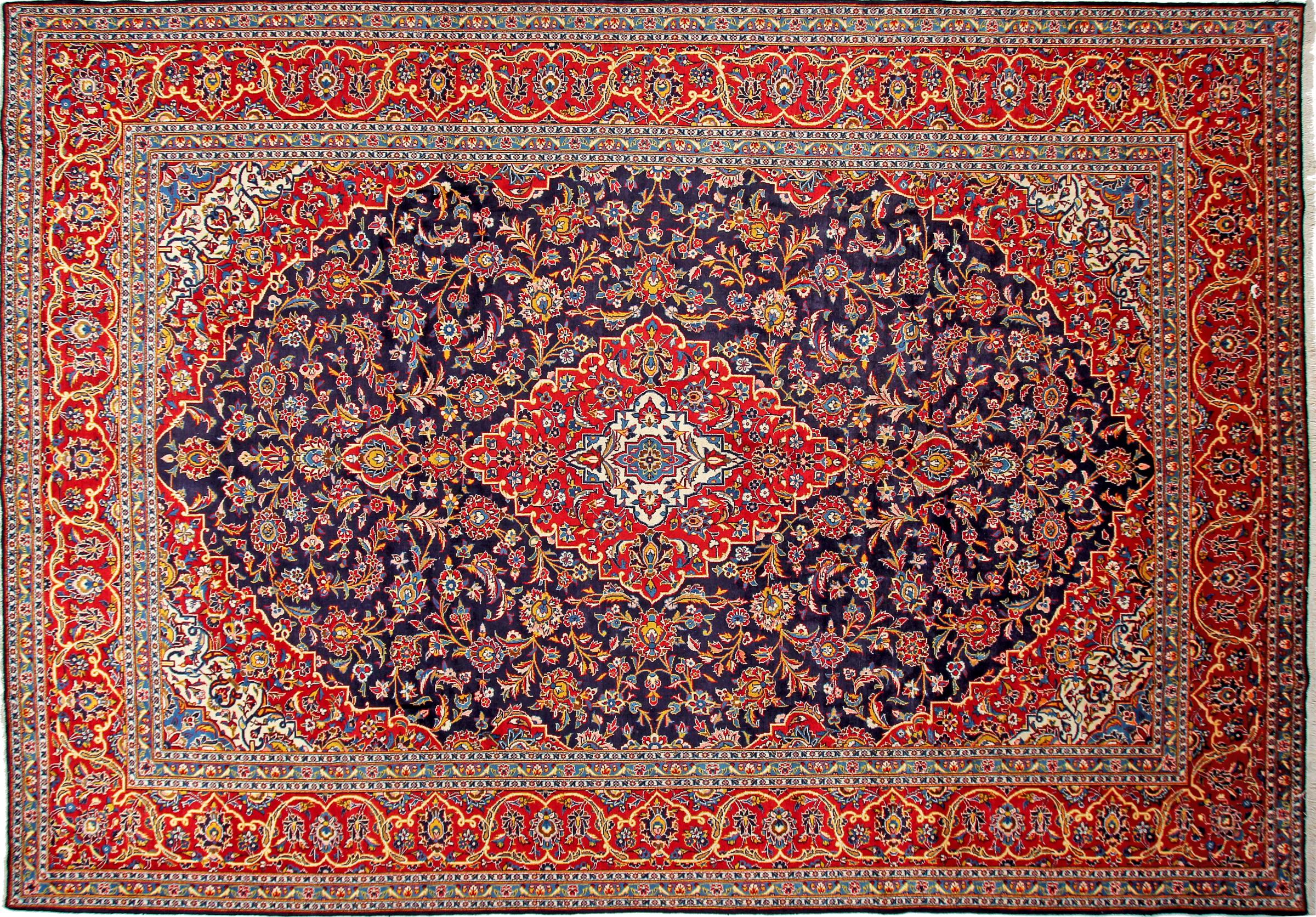 Dette teppet fra Kashan (Keshan) er holdt i sitt svært tradisjonelle og typiske persiske design med vakre ornamenter. Kashan-tepper er svært populære på grunn av deres eksepsjonelt elegante design. Disse teppene stammer fra Kashan, en by på den gamle Silkeveien. Dette teppet er håndknyttet av høykvalitets saueull og kommer til å bli et unikt høydepunkt i hjemmet ditt.