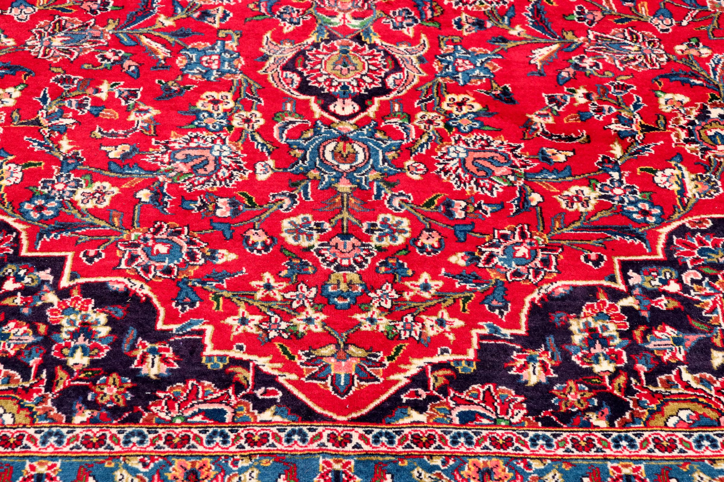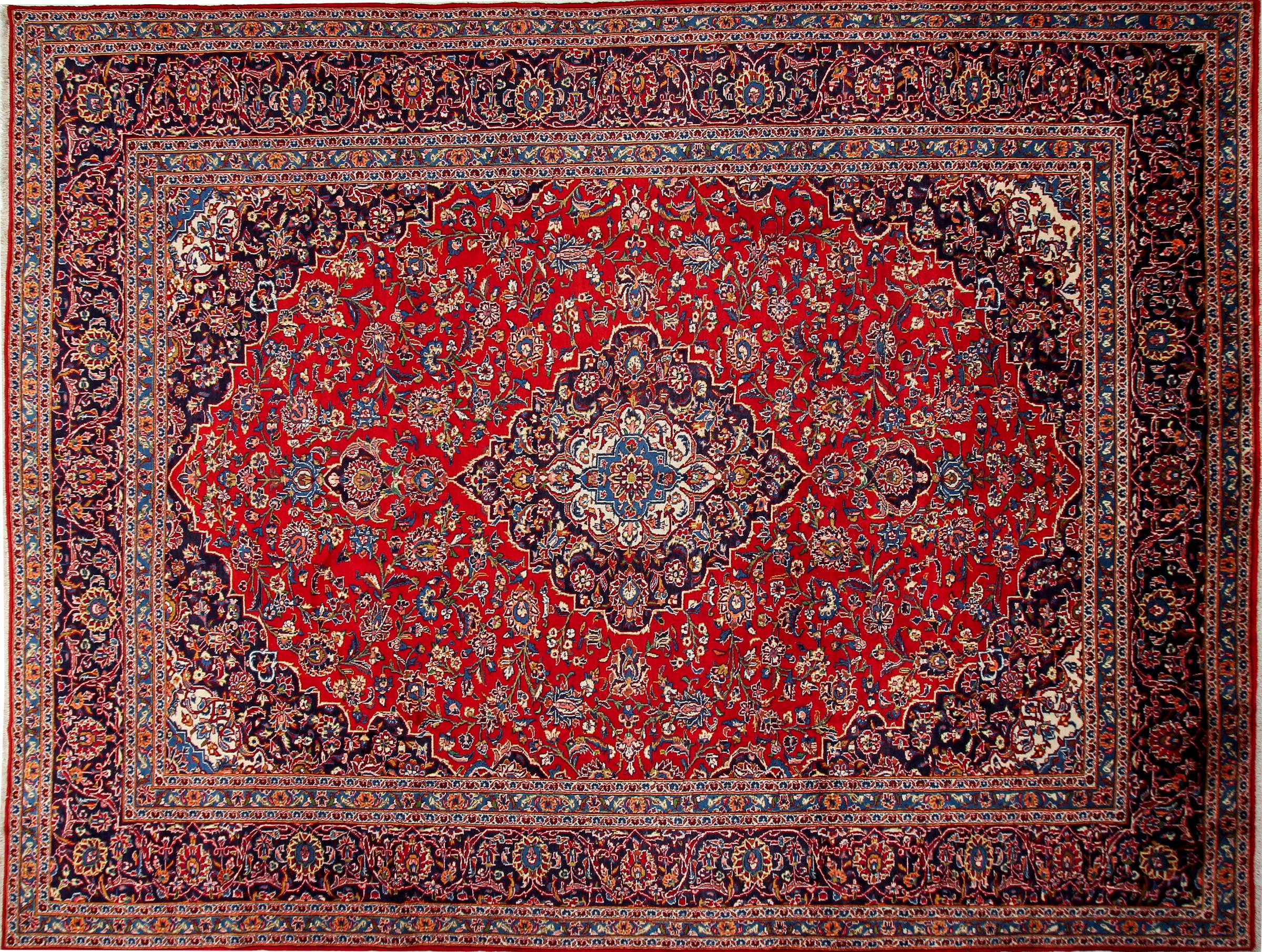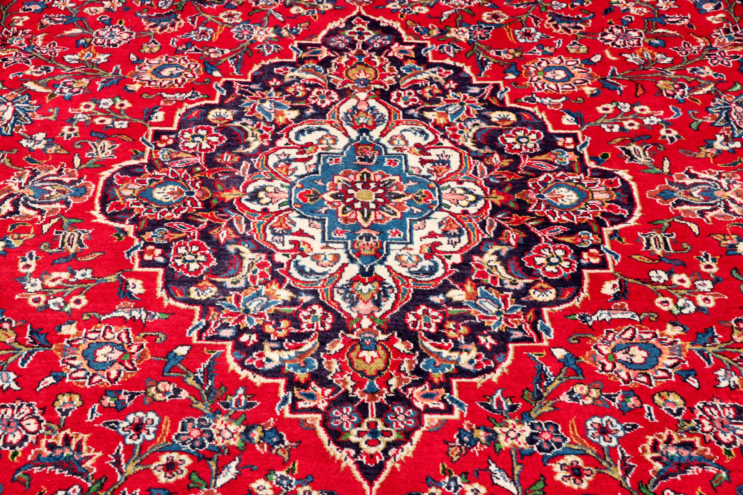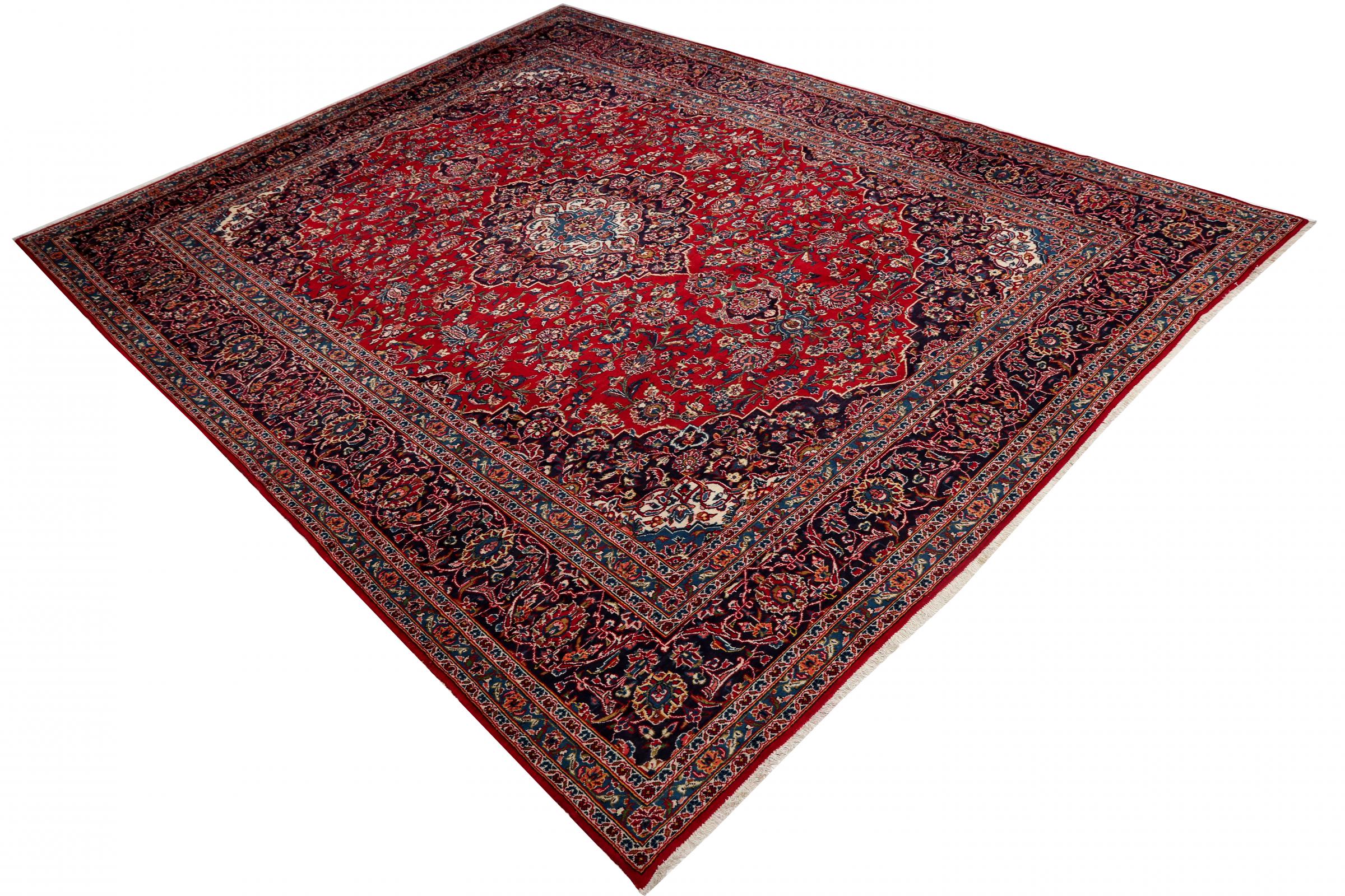 Dette teppet fra Kashan (Keshan) er holdt i sitt svært tradisjonelle og typiske persiske design med vakre ornamenter. Kashan-tepper er svært populære på grunn av deres eksepsjonelt elegante design. Disse teppene stammer fra Kashan, en by på den gamle Silkeveien. Dette teppet er håndknyttet av høykvalitets saueull og kommer til å bli et unikt høydepunkt i hjemmet ditt.