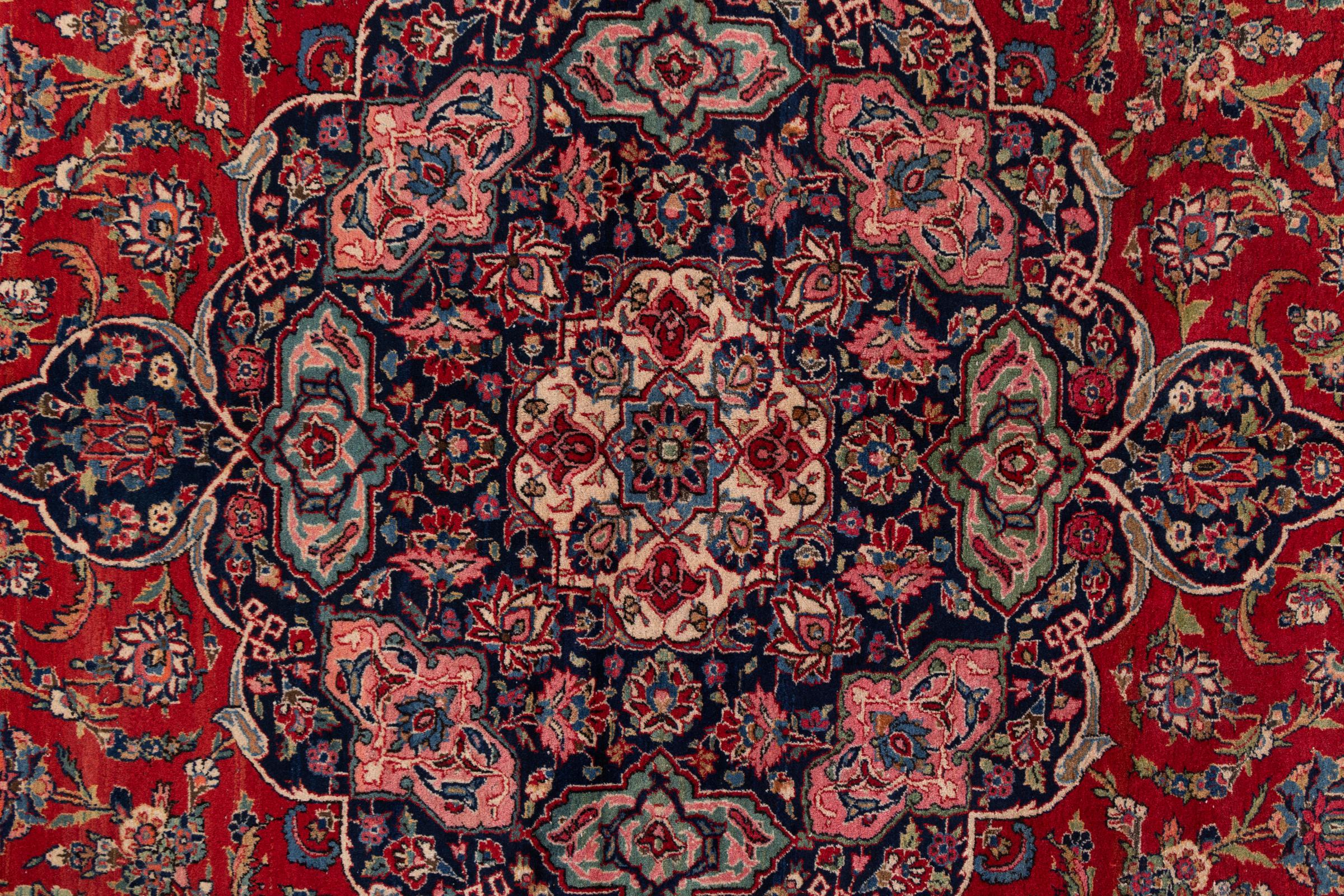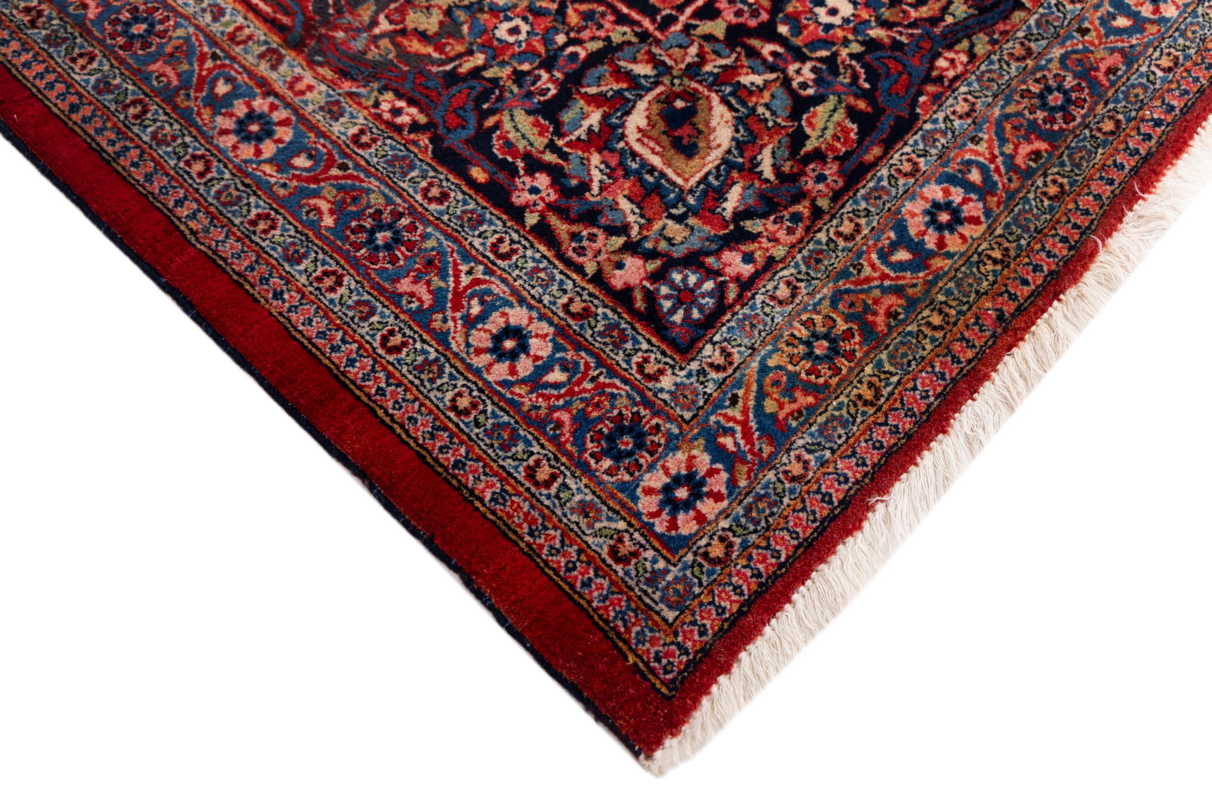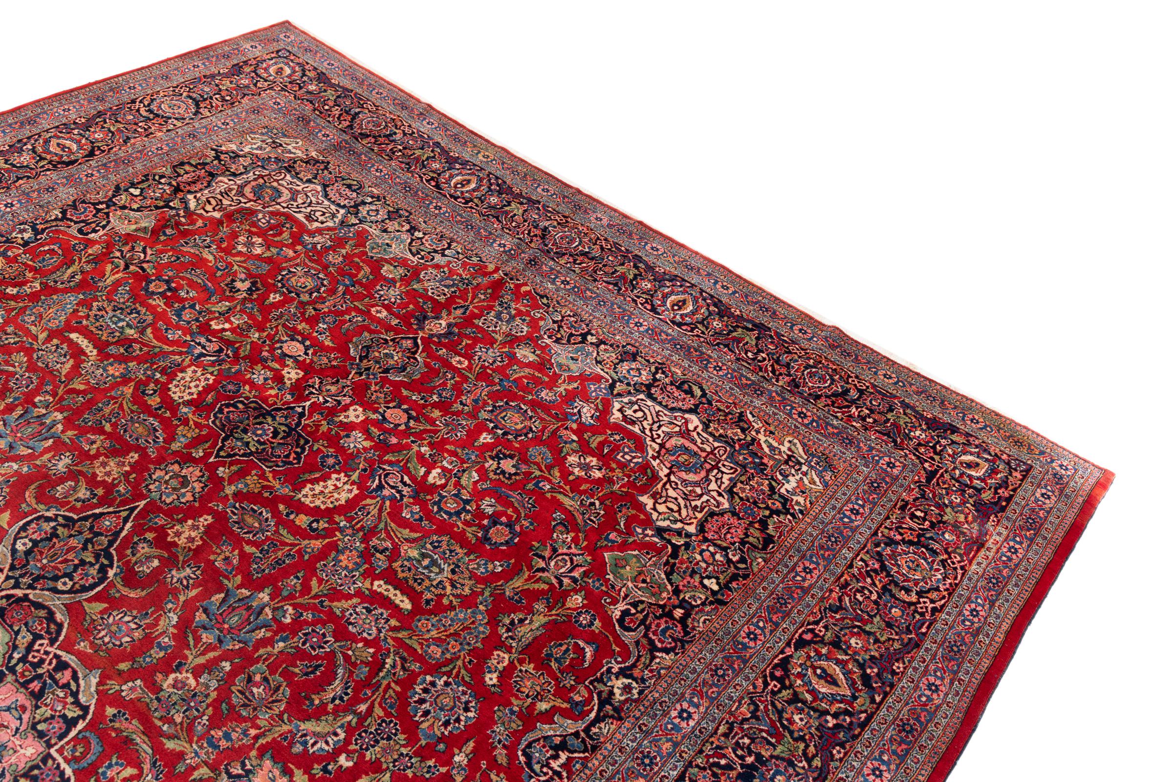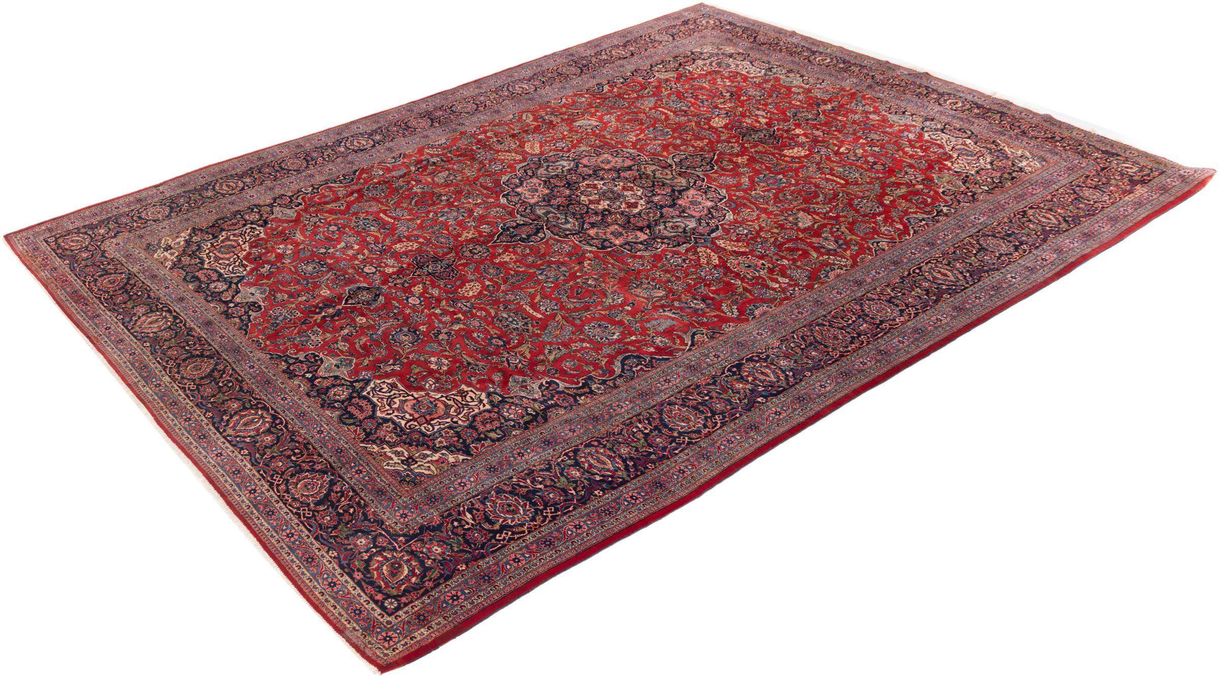 Dette antikke Kaschen teppet er håndknyttet i byen Kaschan. Mønsteret er knyttet med de fineste fargene. Grunnet den høye knutetettheten er mønsteret svært fint og levende.