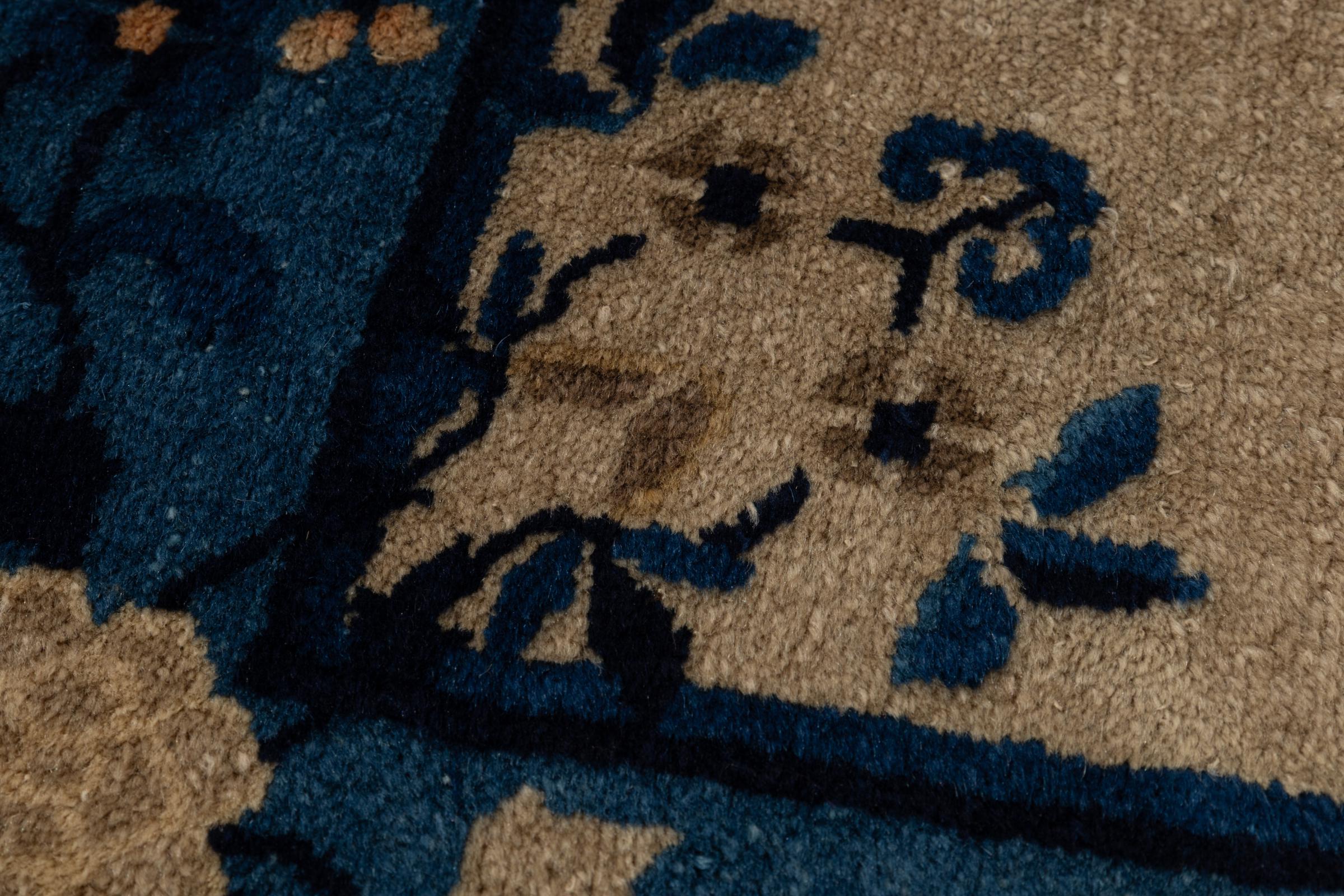 Dette håndknyttede antikke teppet fra Kina oppfyller alle krav til en kinesisk-teppeekspert. Den høye kvaliteten av ullgarnet og designet taler for dette teppet.