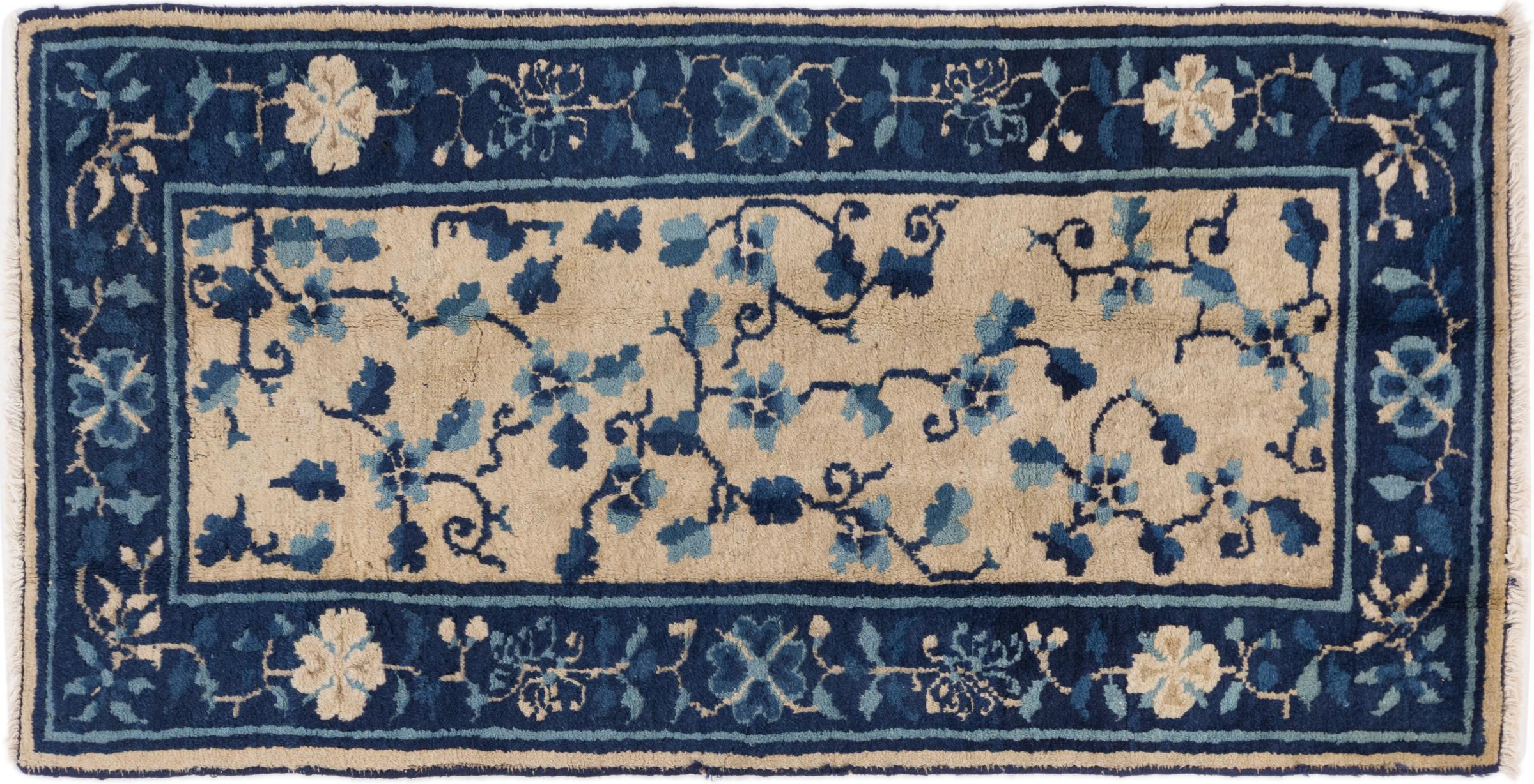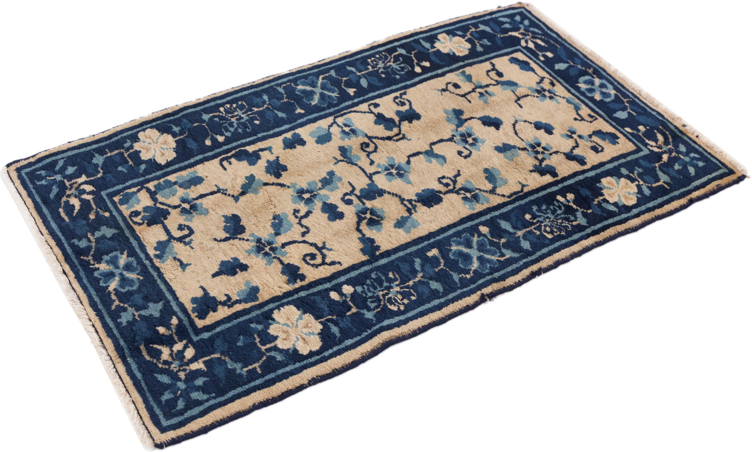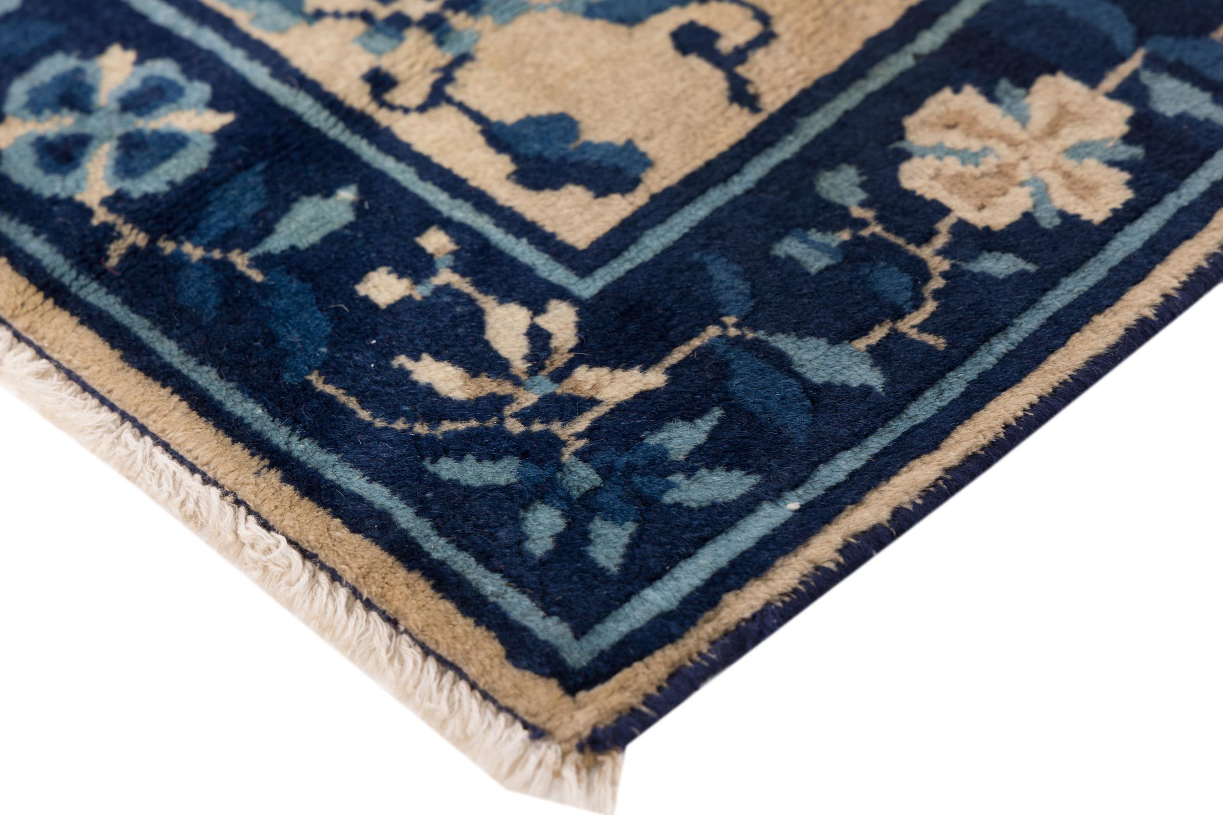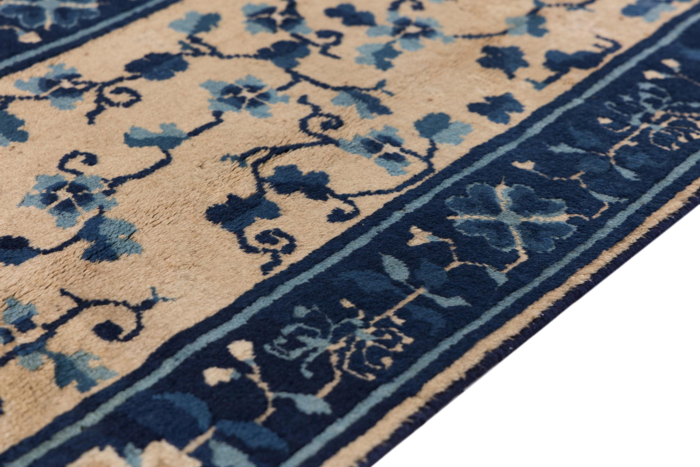 Dette håndknyttede antikke teppet fra Kina oppfyller alle krav til en kinesisk-teppeekspert. Den høye kvaliteten av ullgarnet og designet taler for dette teppet.