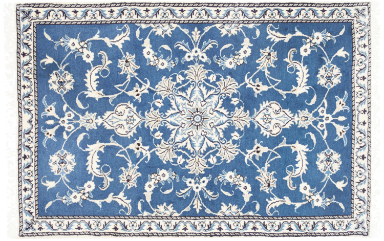 Dette Nain teppet er klassifisert som 12 La. Dette teppet virker elegant med de typiske nain-fargene. Teppet kommer fra byen Nain som ligger på den vestlige grensen til Dascht-e-Kavir . Tepper består av ull og silke av høy kvalitet.