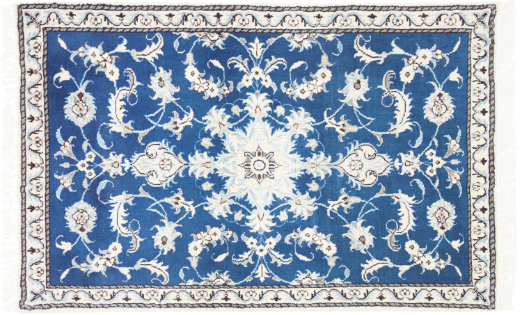Dette Nain teppet er klassifisert som 12 La. Dette teppet virker elegant med de typiske nain-fargene. Teppet kommer fra byen Nain som ligger på den vestlige grensen til Dascht-e-Kavir . Tepper består av ull og silke av høy kvalitet.