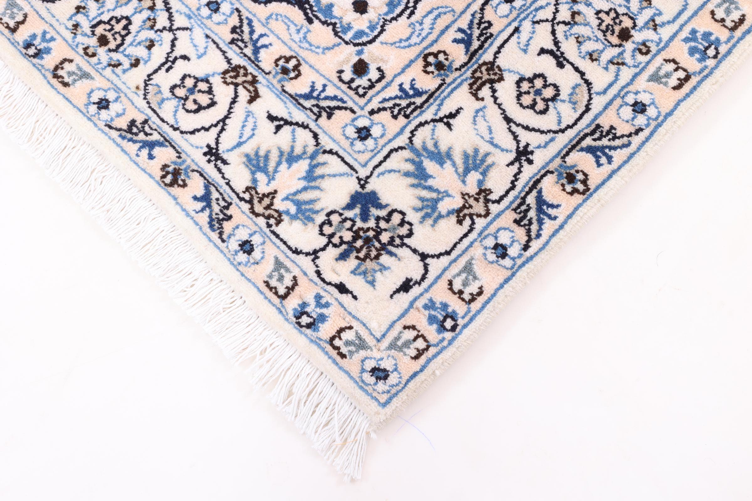 Dette Nain teppet er klassifisert som 12 La. Dette teppet virker elegant med de typiske nain-fargene. Teppet kommer fra byen Nain som ligger på den vestlige grensen til Dascht-e-Kavir . Tepper består av ull og silke av høy kvalitet.