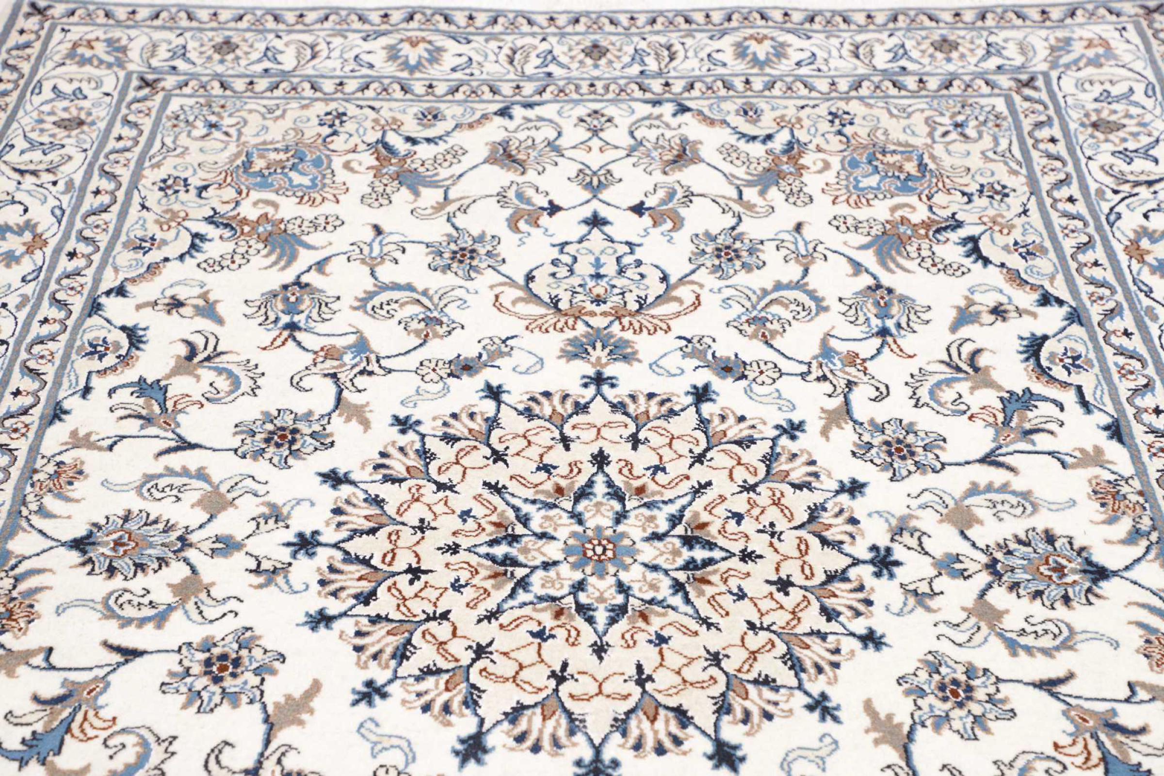 Tepper fra byen Nain, fra grensen til en av de største ørkenene i Iran, er blant de mest kjente persiske teppene over hele verden. Deres typiske design er umiskjennelig med blomsterpynt, en medaljong samt beige og røde eller blå farger. Takket være navnene 4La, 6La, 9La og 12La, kan du se oversikten over et Nain-teppe med et øyeblikk. Jo lavere “La” -tall, jo høyere er knutetettheten og dermed finheten på teppet.