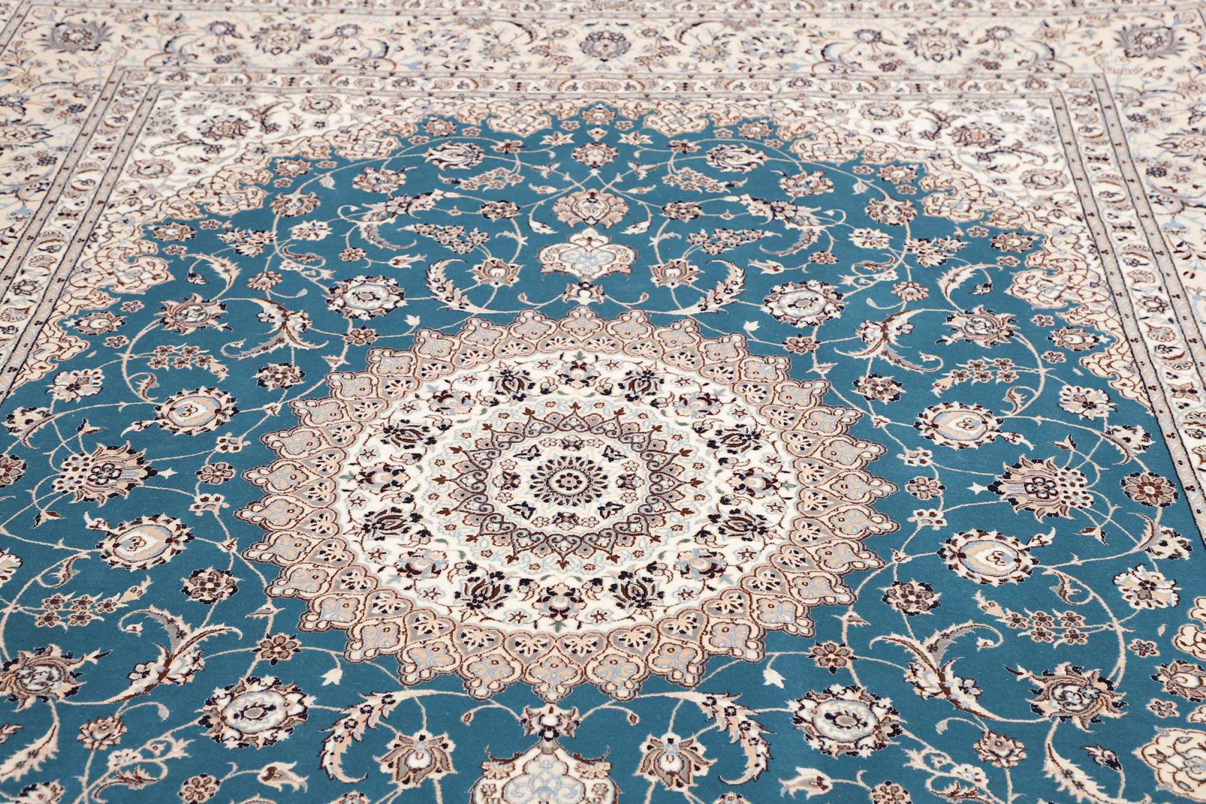 Tepper fra byen Nain, fra grensen til en av de største ørkenene i Iran, er blant de mest kjente persiske teppene over hele verden. Deres typiske design er umiskjennelig med blomsterpynt, en medaljong samt beige og røde eller blå farger. Takket være navnene 4La, 6La, 9La og 12La, kan du se oversikten over et Nain-teppe med et øyeblikk. Jo lavere “La” -tall, jo høyere er knutetettheten og dermed finheten på teppet.