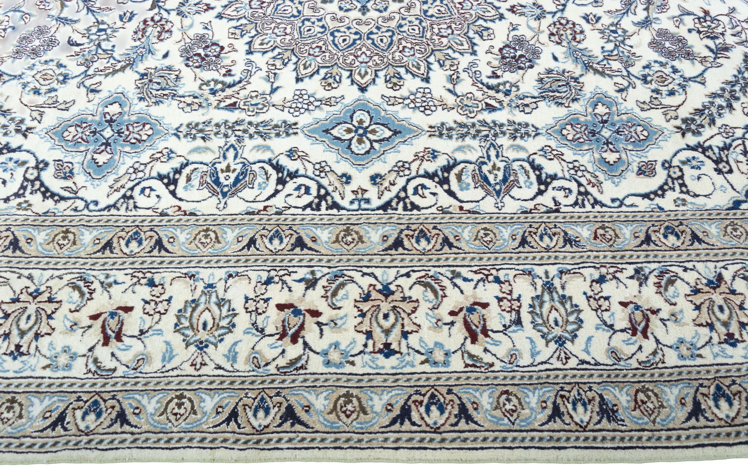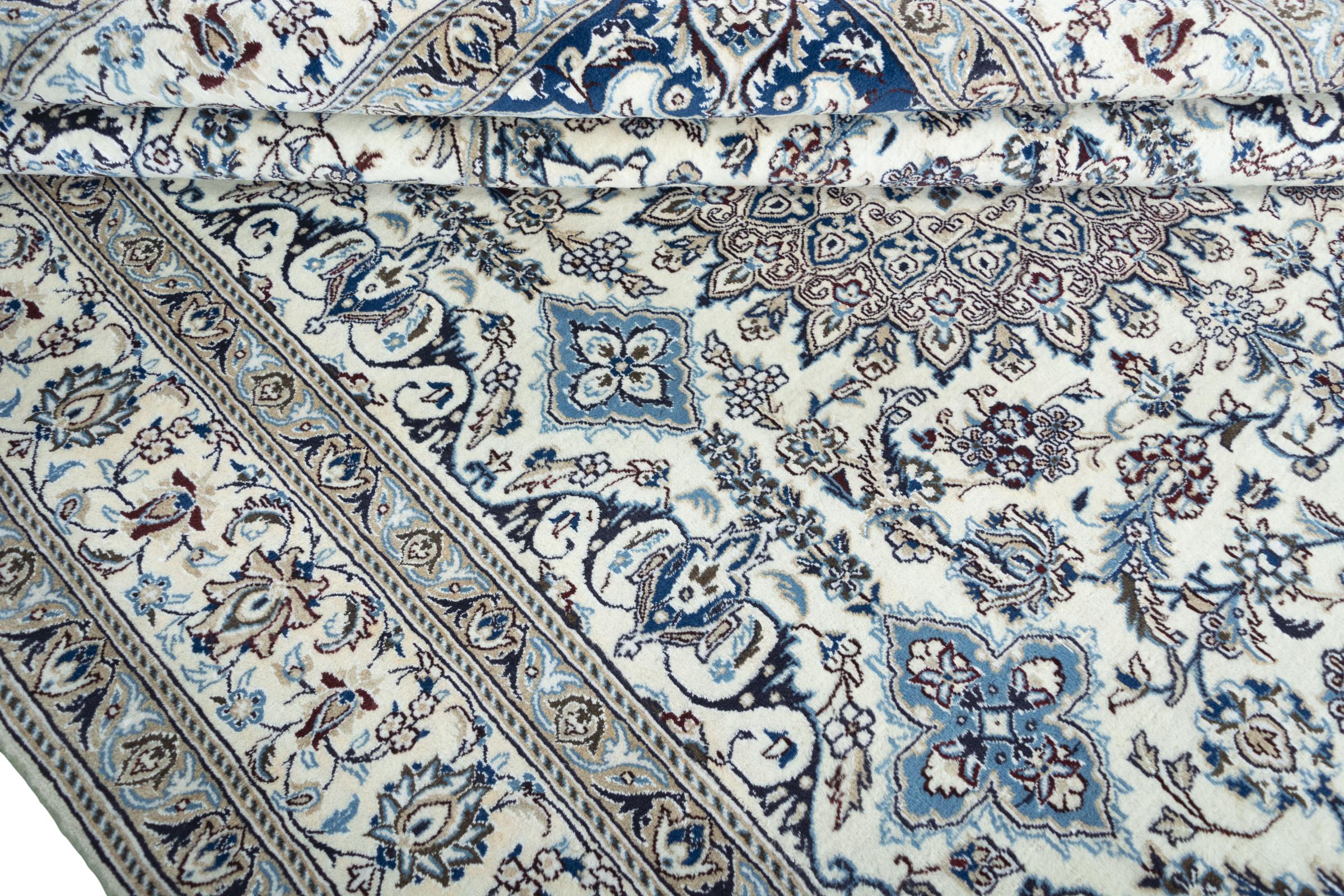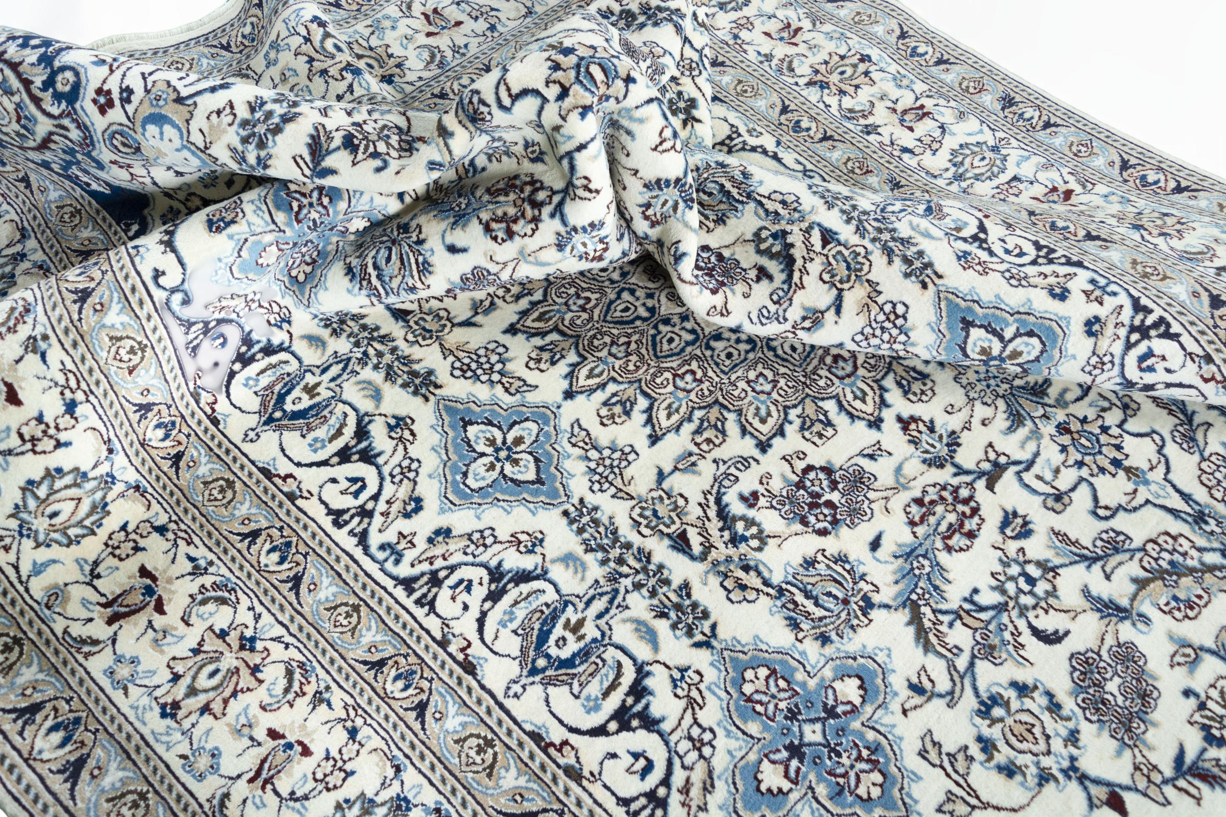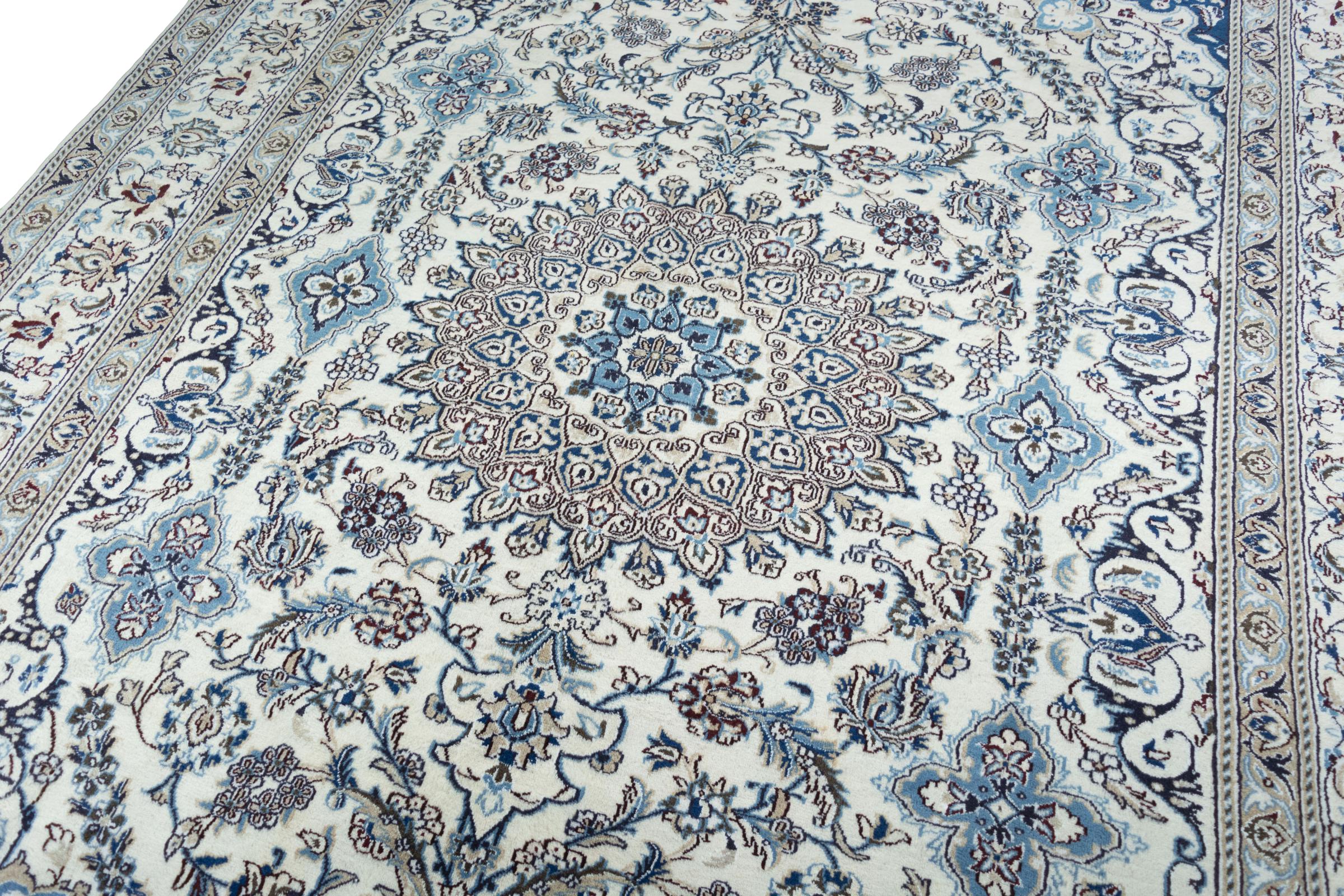 Dette Nain teppet er klassifisert som 12 La. Dette teppet virker elegant med de typiske nain-fargene. Teppet kommer fra byen Nain som ligger på den vestlige grensen til Dascht-e-Kavir . Tepper består av ull og silke av høy kvalitet.