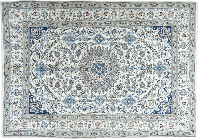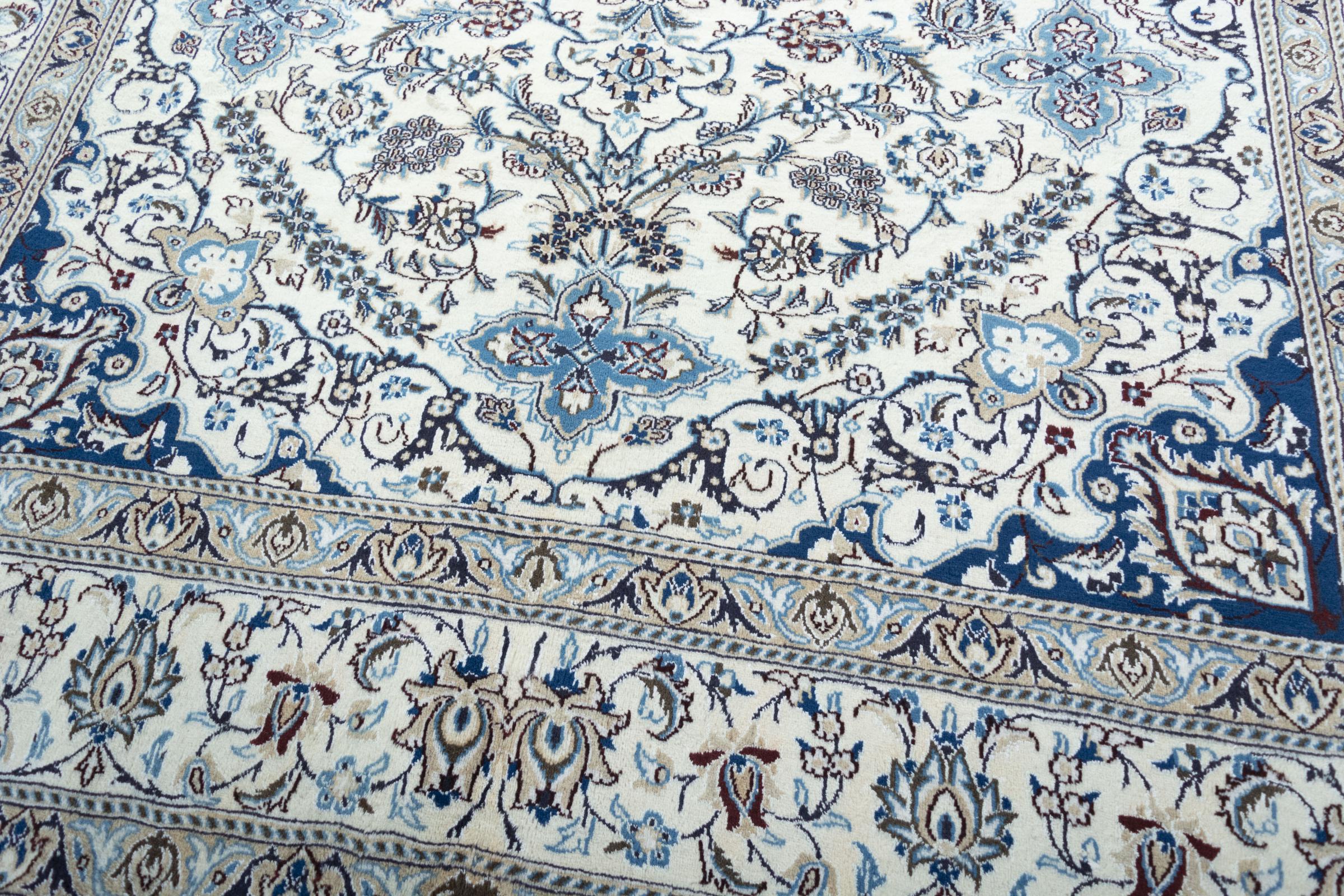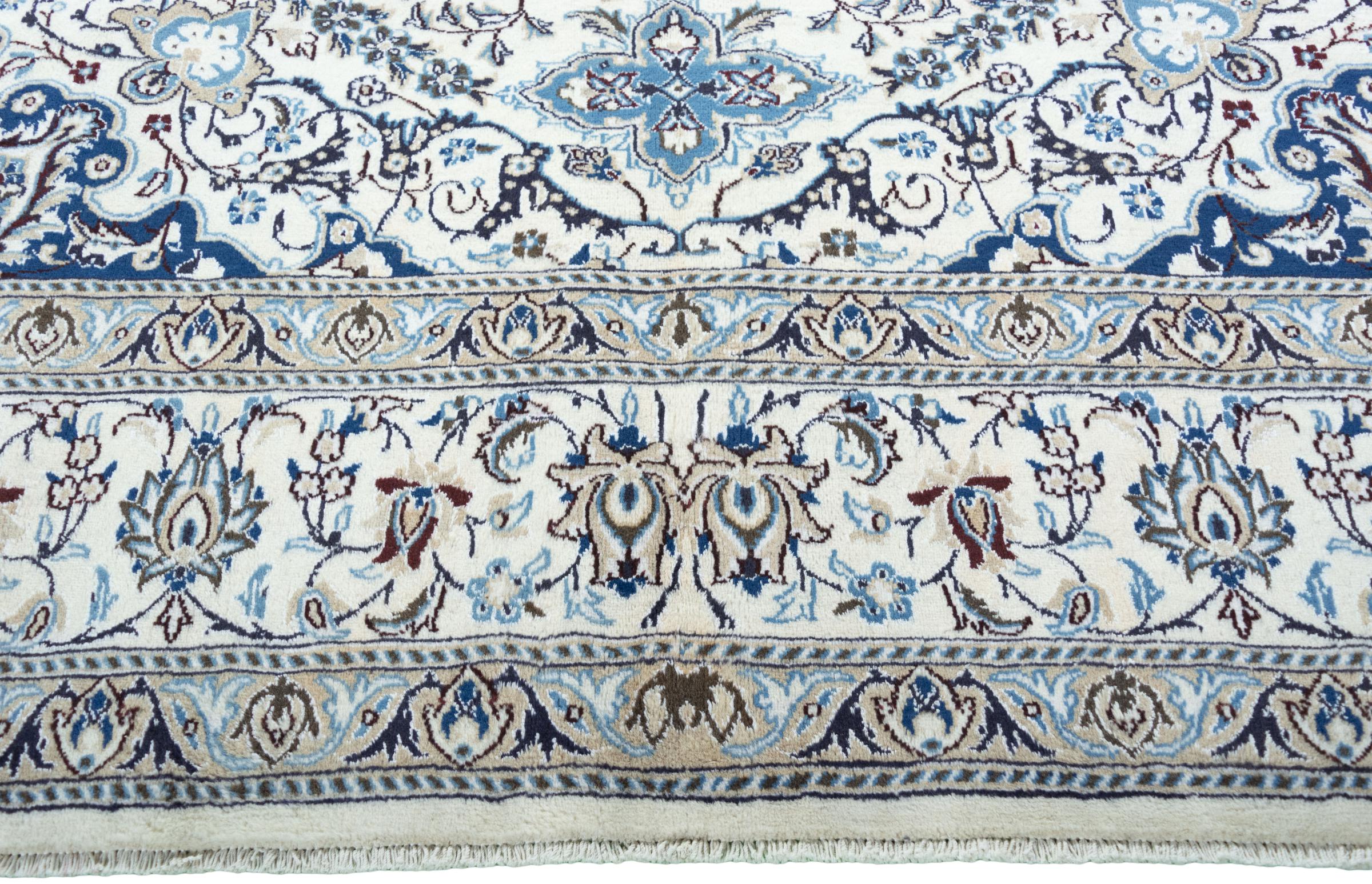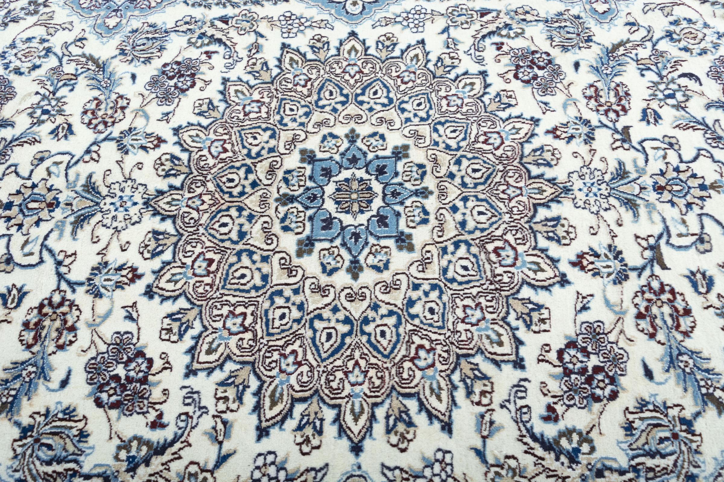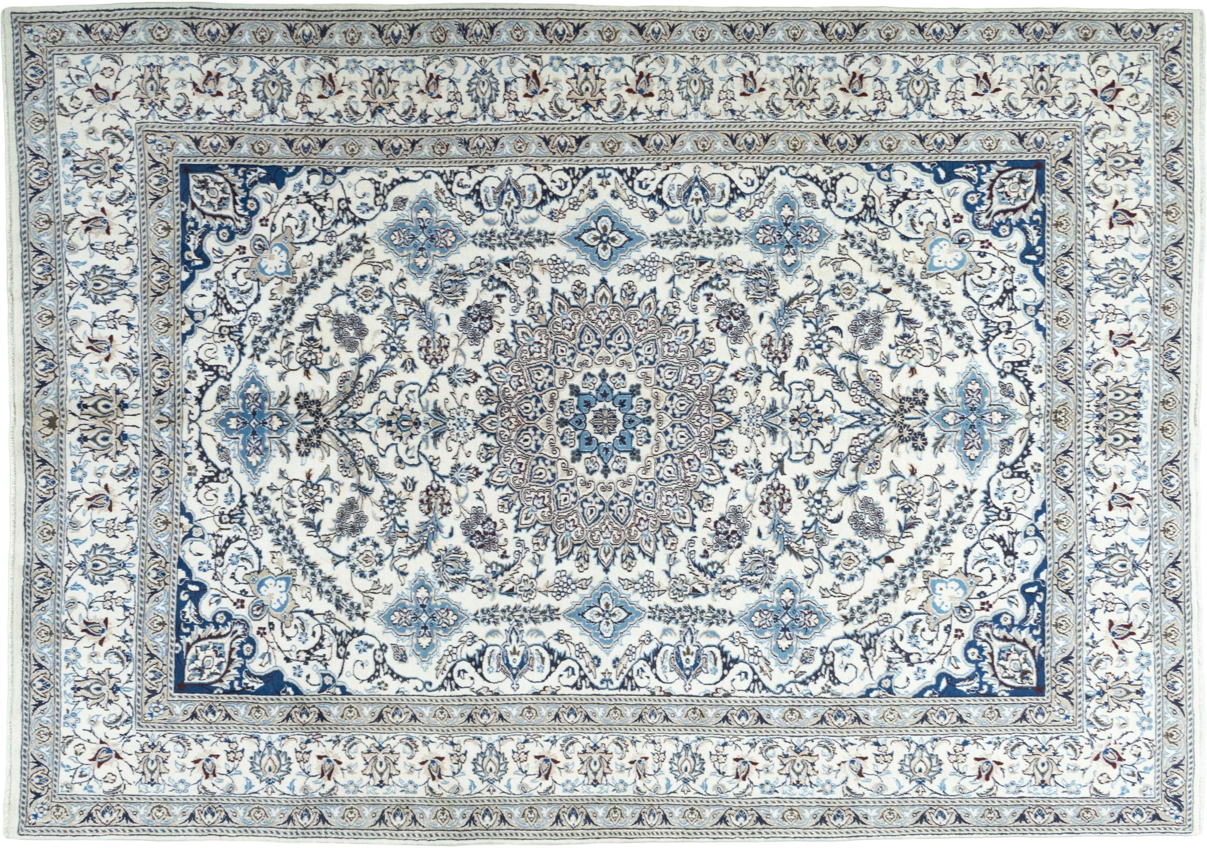 Dette Nain teppet er klassifisert som 12 La. Dette teppet virker elegant med de typiske nain-fargene. Teppet kommer fra byen Nain som ligger på den vestlige grensen til Dascht-e-Kavir . Tepper består av ull og silke av høy kvalitet.