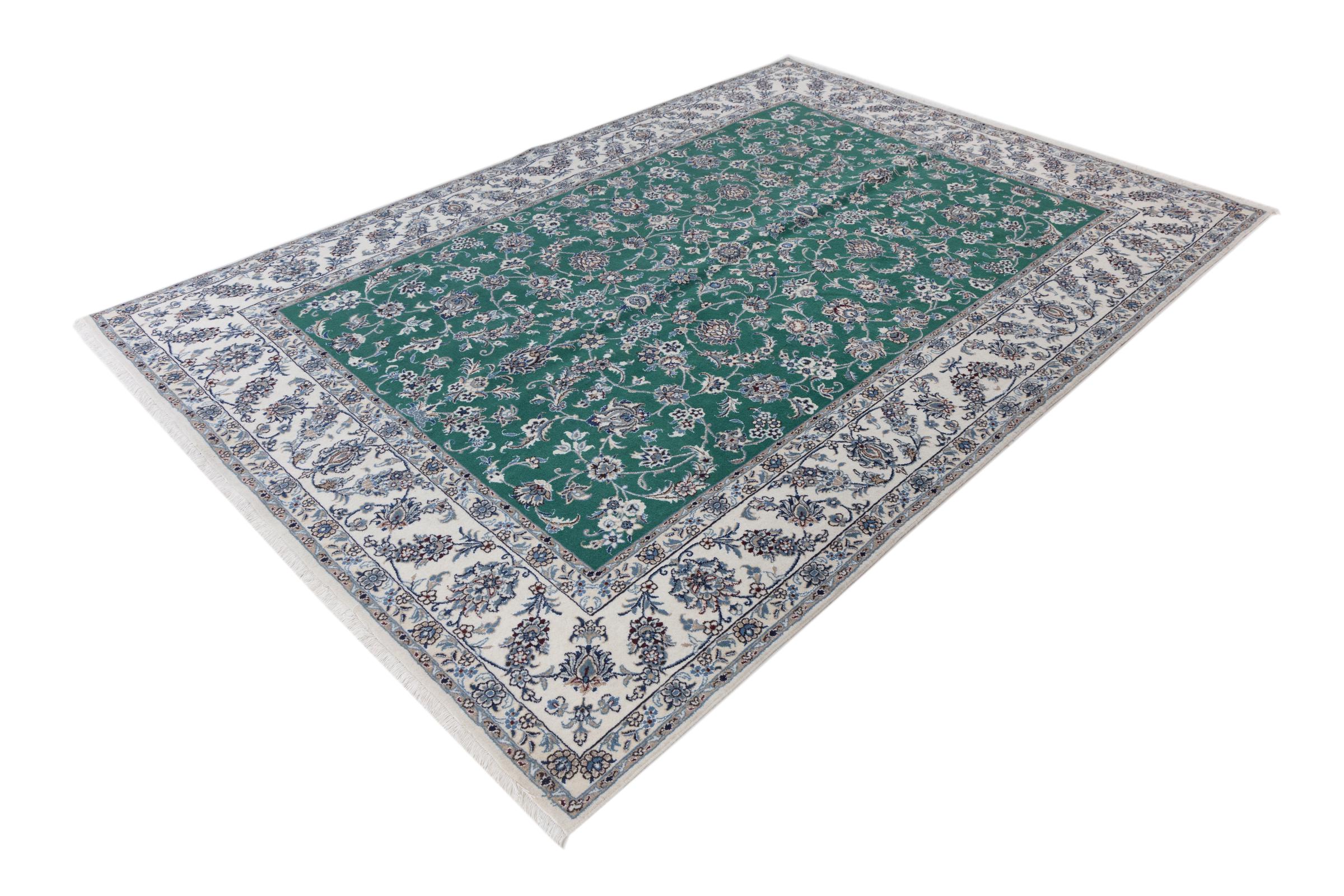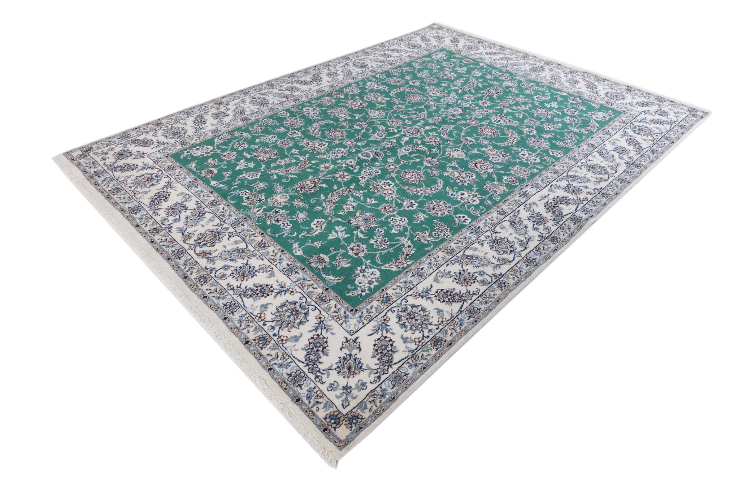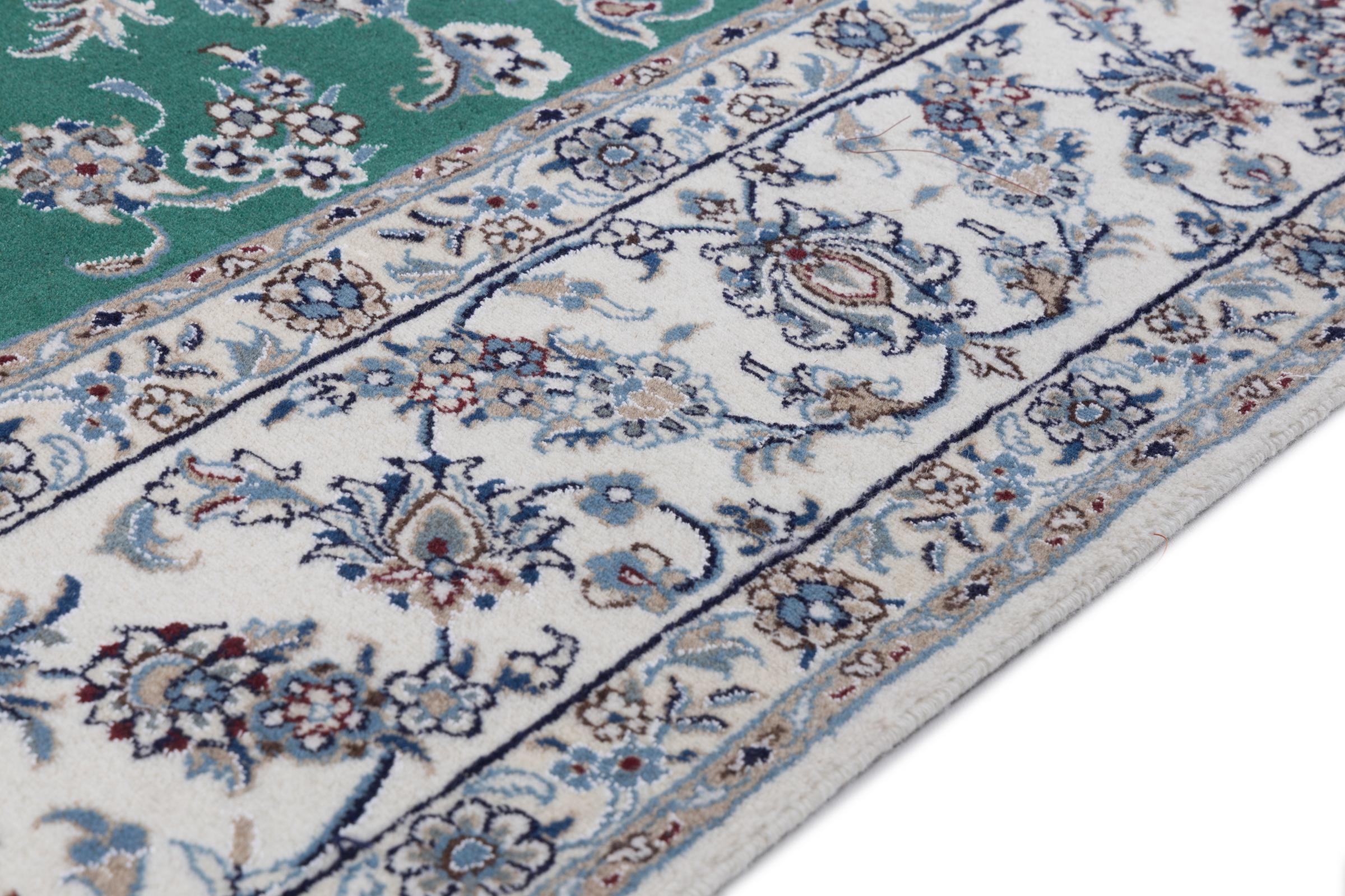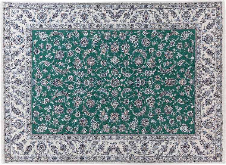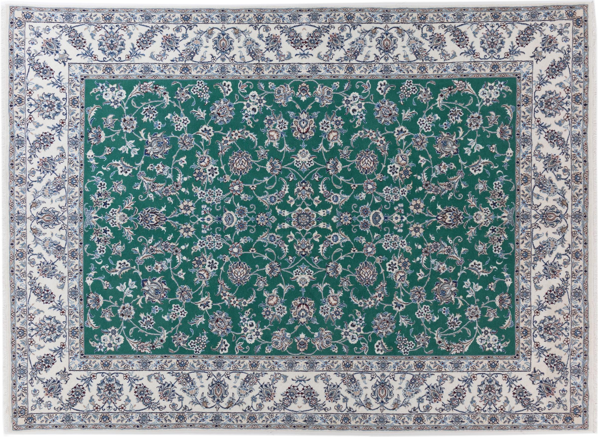 Dette Nain teppet er klassifisert som 12 La. Dette teppet virker elegant med de typiske nain-fargene. Teppet kommer fra byen Nain som ligger på den vestlige grensen til Dascht-e-Kavir . Tepper består av ull og silke av høy kvalitet.