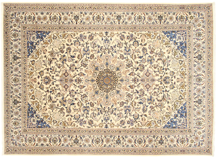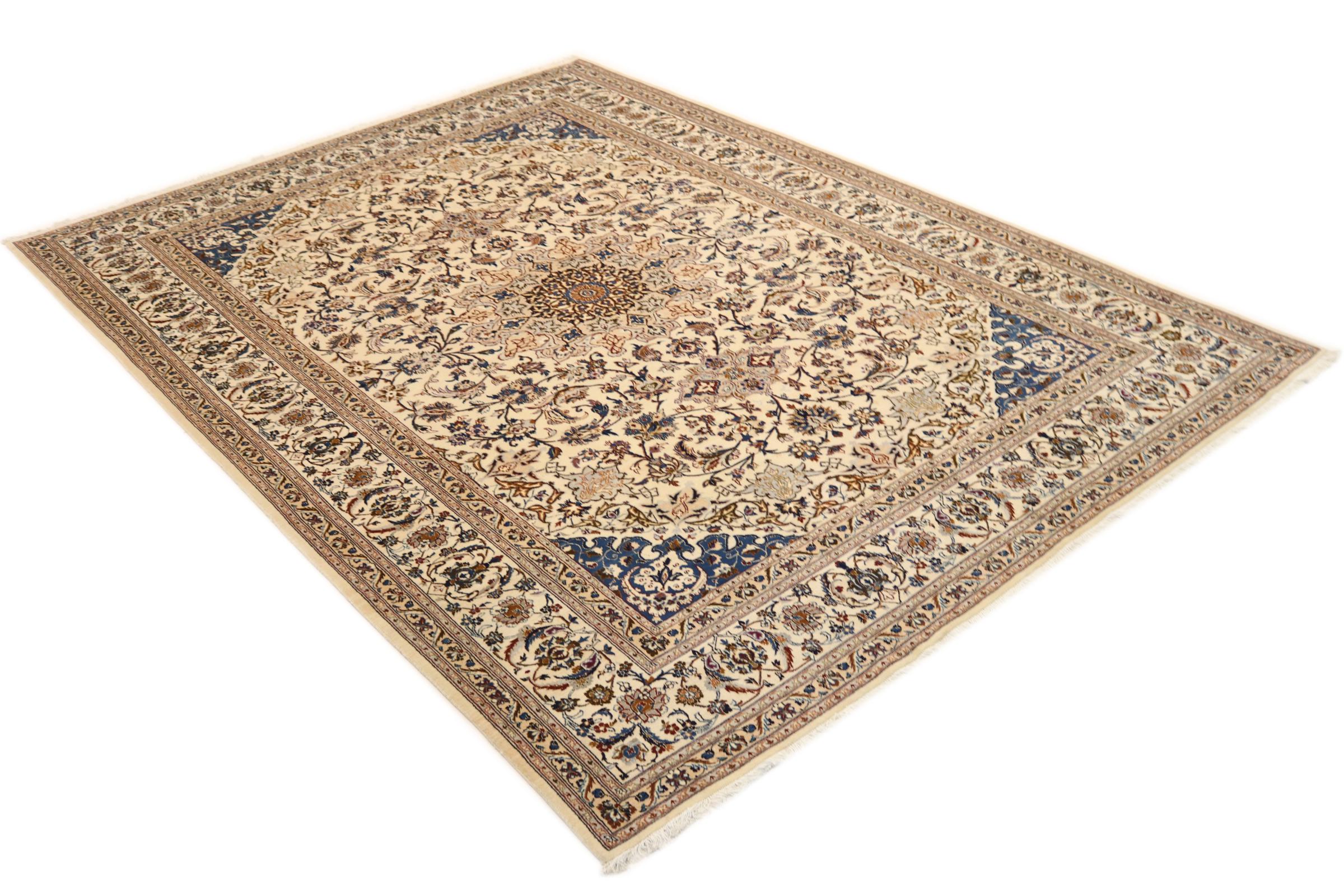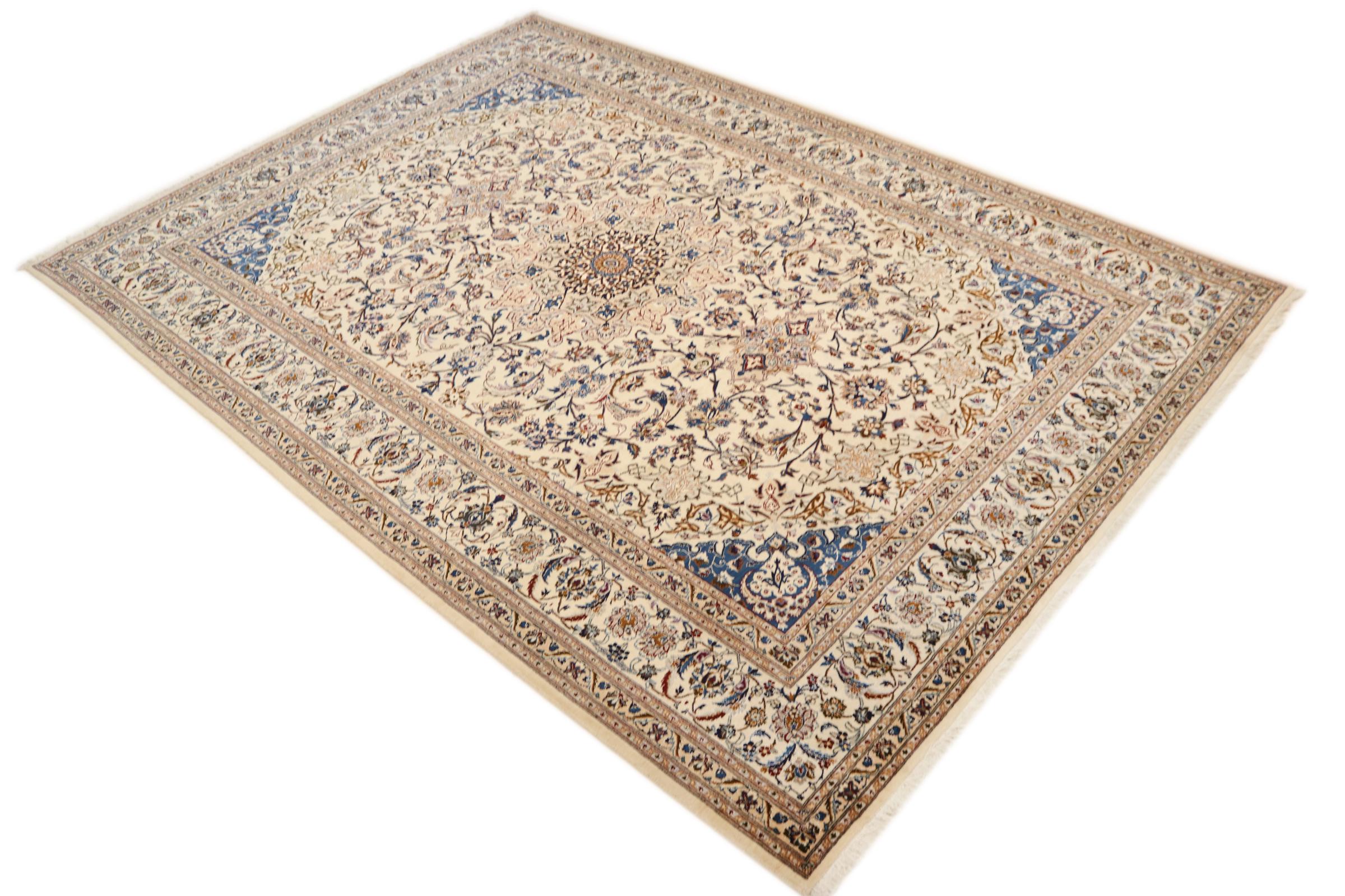 Dette Nain teppet er klassifisert som 12 La. Dette teppet virker elegant med de typiske nain-fargene. Teppet kommer fra byen Nain som ligger på den vestlige grensen til Dascht-e-Kavir . Tepper består av ull og silke av høy kvalitet.