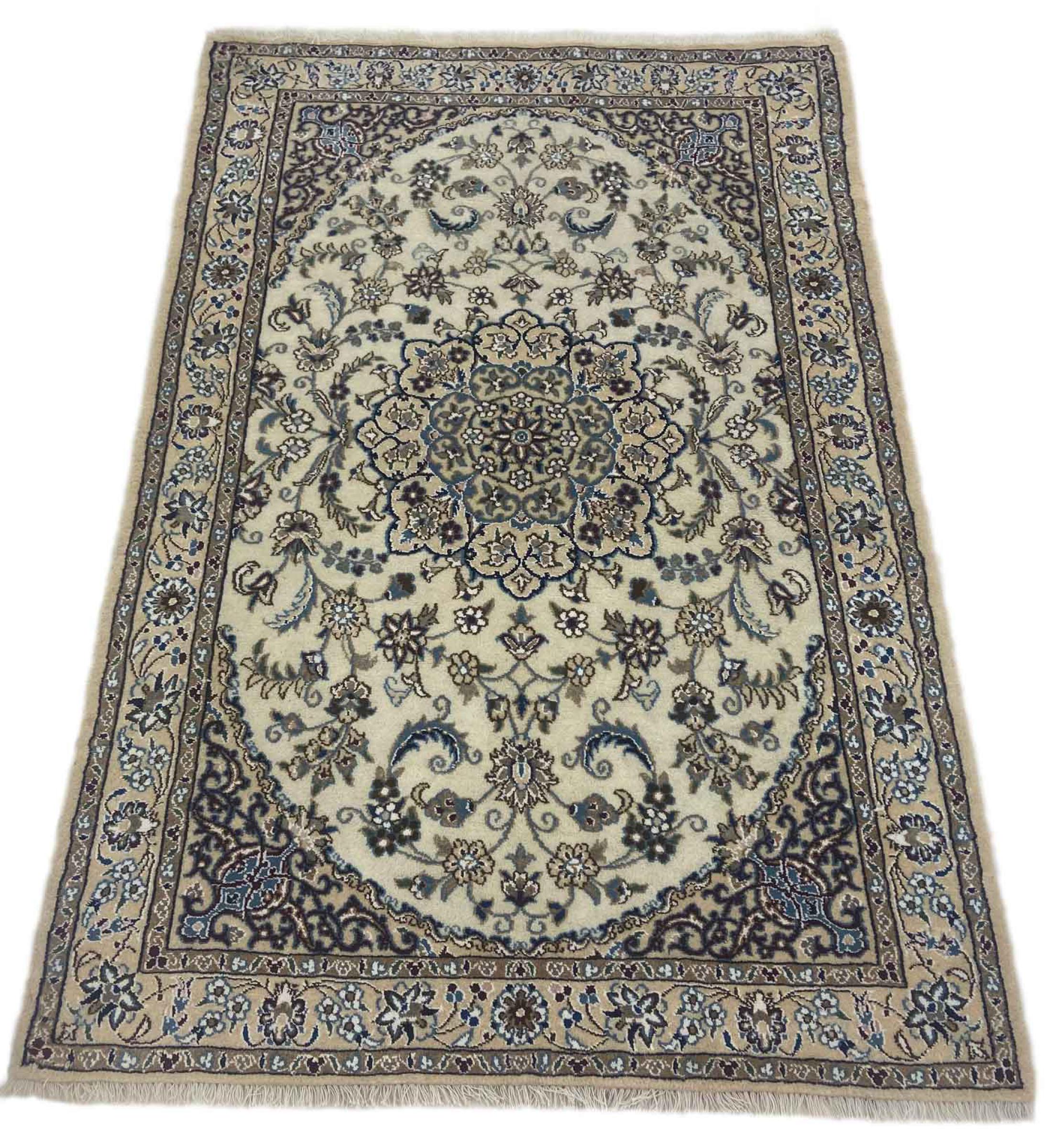 Tepper fra byen Nain, fra grensen til en av de største ørkenene i Iran, er blant de mest kjente persiske teppene over hele verden. Deres typiske design er umiskjennelig med blomsterpynt, en medaljong samt beige og røde eller blå farger. Takket være navnene 4La, 6La, 9La og 12La, kan du se oversikten over et Nain-teppe med et øyeblikk. Jo lavere “La” -tall, jo høyere er knutetettheten og dermed finheten på teppet.