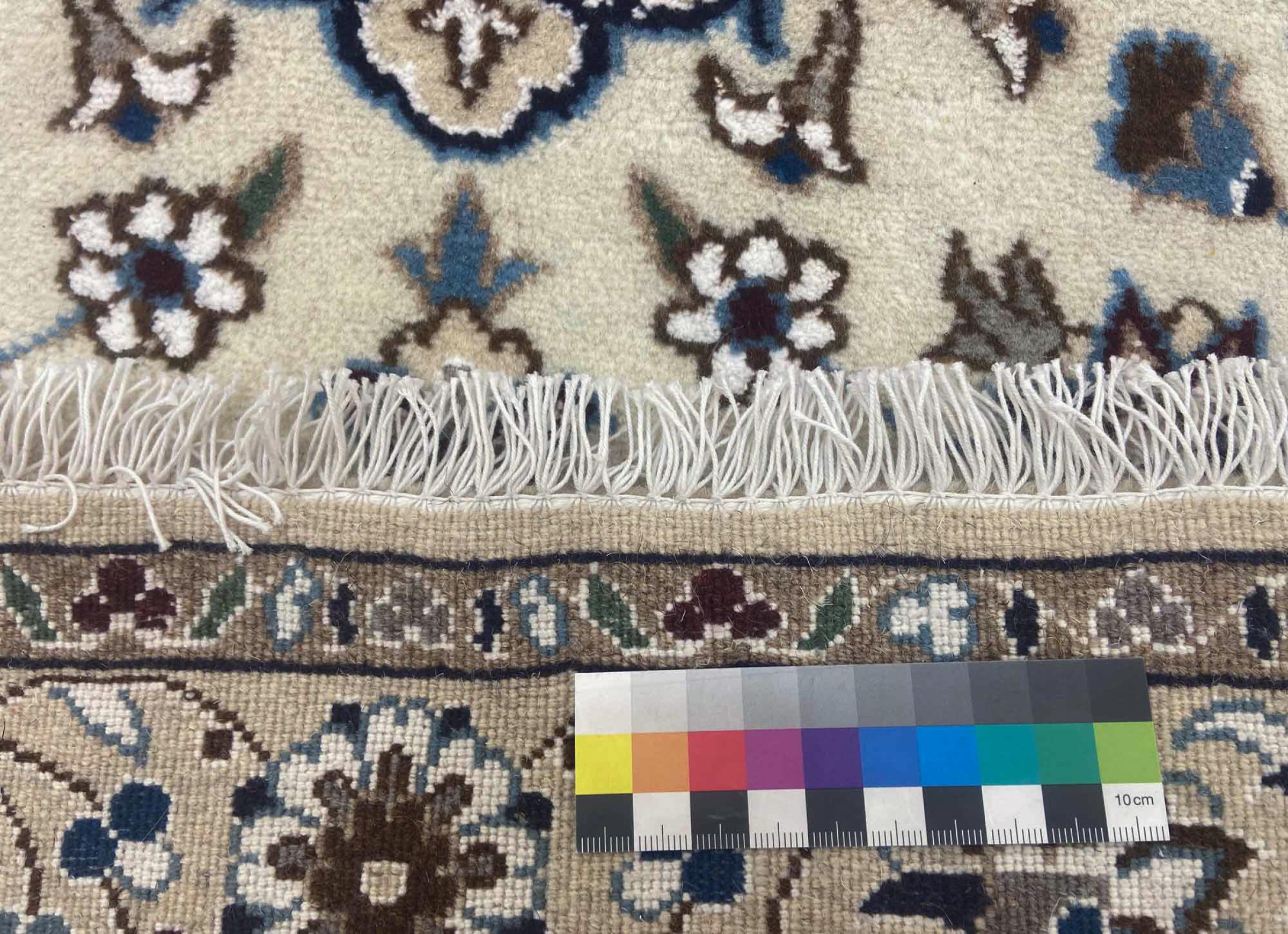 Dette teppet består av håndspunnet saueull av høyeste kvalitet. Spesielt i Iran (tidligere Persia), Afghanistan og Pakistan blir ull spunnet for hånd før teppet faktisk er knyttet. Ull har bevist seg som et naturlig og ekstremt slitesterkt materiale gjennom århundrer. Blant annet har den smussavvisende og varmeisolerende egenskaper. Samtidig er ull uten sammenligning myk og fører med seg en naturlig glans.