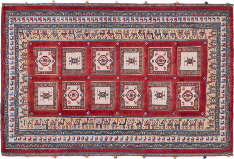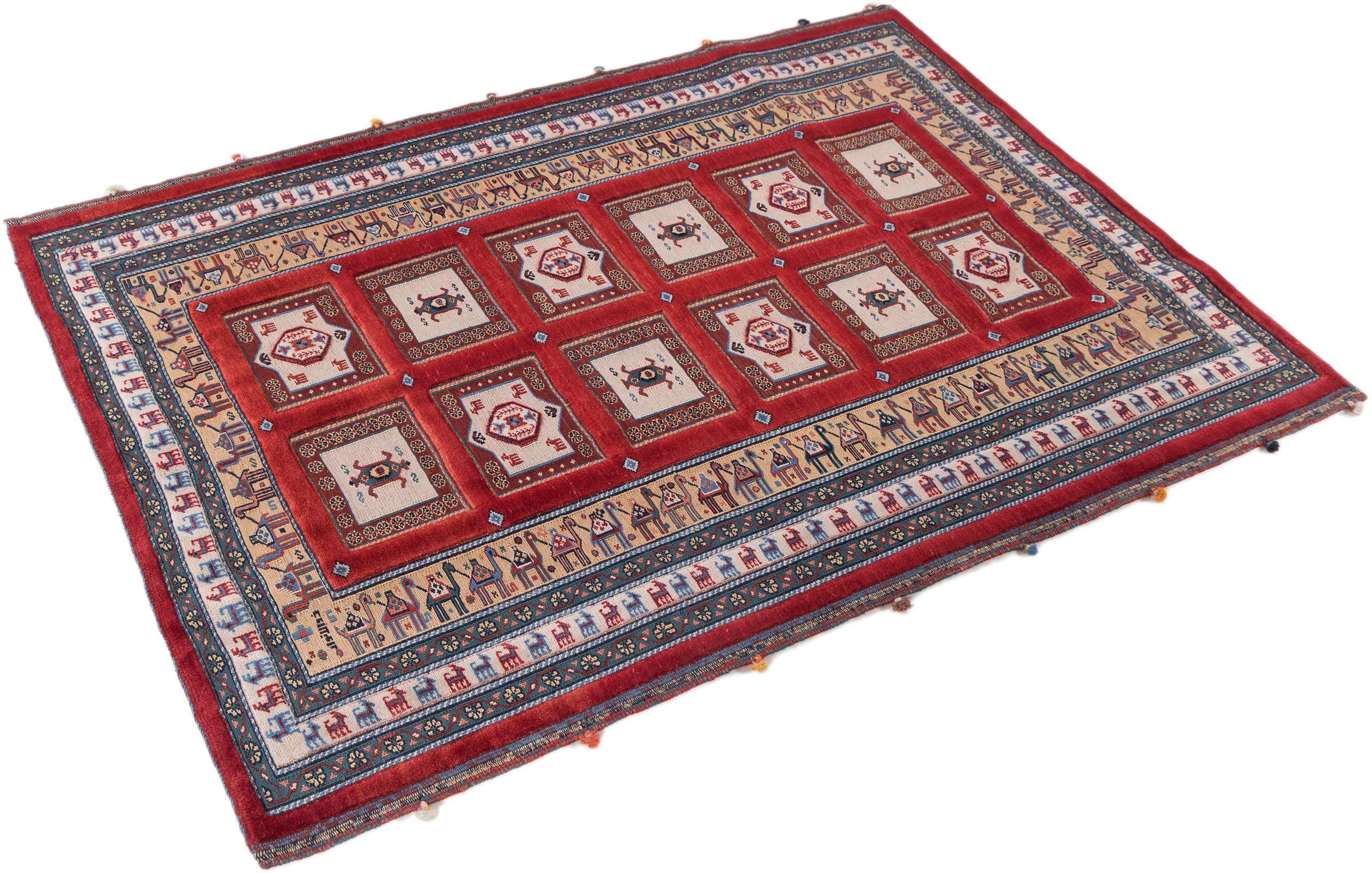 Dette teppet består av håndspunnet saueull av høyeste kvalitet. Spesielt i Iran (tidligere Persia), Afghanistan og Pakistan blir ull spunnet for hånd før teppet faktisk er knyttet. Ull har bevist seg som et naturlig og ekstremt slitesterkt materiale gjennom århundrer. Blant annet har den smussavvisende og varmeisolerende egenskaper. Samtidig er ull uten sammenligning myk og fører med seg en naturlig glans.
