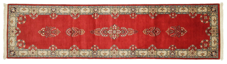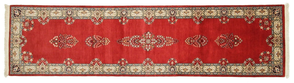 Teppenummer: 1721500654208 Størrelse: 318x84 cm Tykkelse: ca. 5 mm Knuter: 320 000 - 350 000 / m² Bearbeiding: Knyttet for hånd Søm: Ull Kjede: Bomull Opprinnelse: Pakistan Alder: Nytt Vekt: ca. 9 kg Antall på lager: Unikt - Kun 1 stk i lager