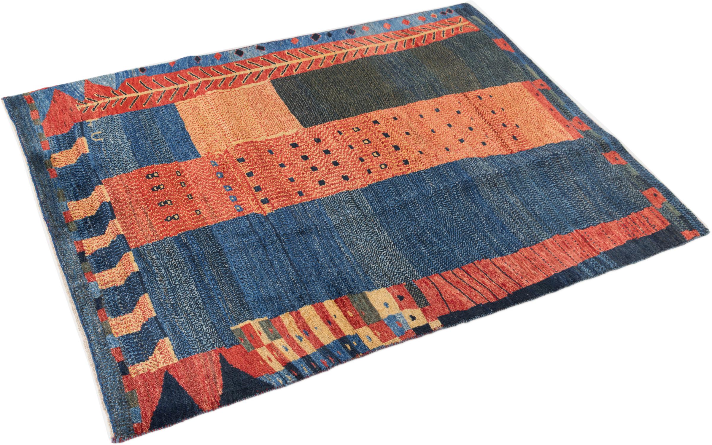 Dette vakre teppet er en persisk Gabbeh og er en av høyeste kvalitet Gabbeh-tepper. Teppene er knyttet av nomader eller seminomader i Iran ved bruk av tradisjonelt håndarbeid. De enkle motivene og mønstrene er stort sett inspirert av nomadenes umiddelbare omgivelser. For eksempel kan kameler, trær eller busker finnes på tradisjonelle tepper. Persiske Gabbeh-tepper er laget av ull fra lokale sauer. Ullen blir derfor stort sett spunnet for hånd. Hver av disse orientalske teppene har en unik karakter av århundrer gammel kultur.