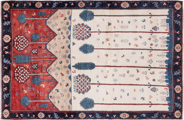 Gabbeh Loribaft er en foredling av de allerede kjente Gabbeh teppene. Med sin fine knytting og flotte design vet dette teppe å imponere. Det ble håndknyttet med flotteste håndspinnet saueull av Lori fra det sørlige Persia. Plantefarger blir brukt for å farge inn ullet.