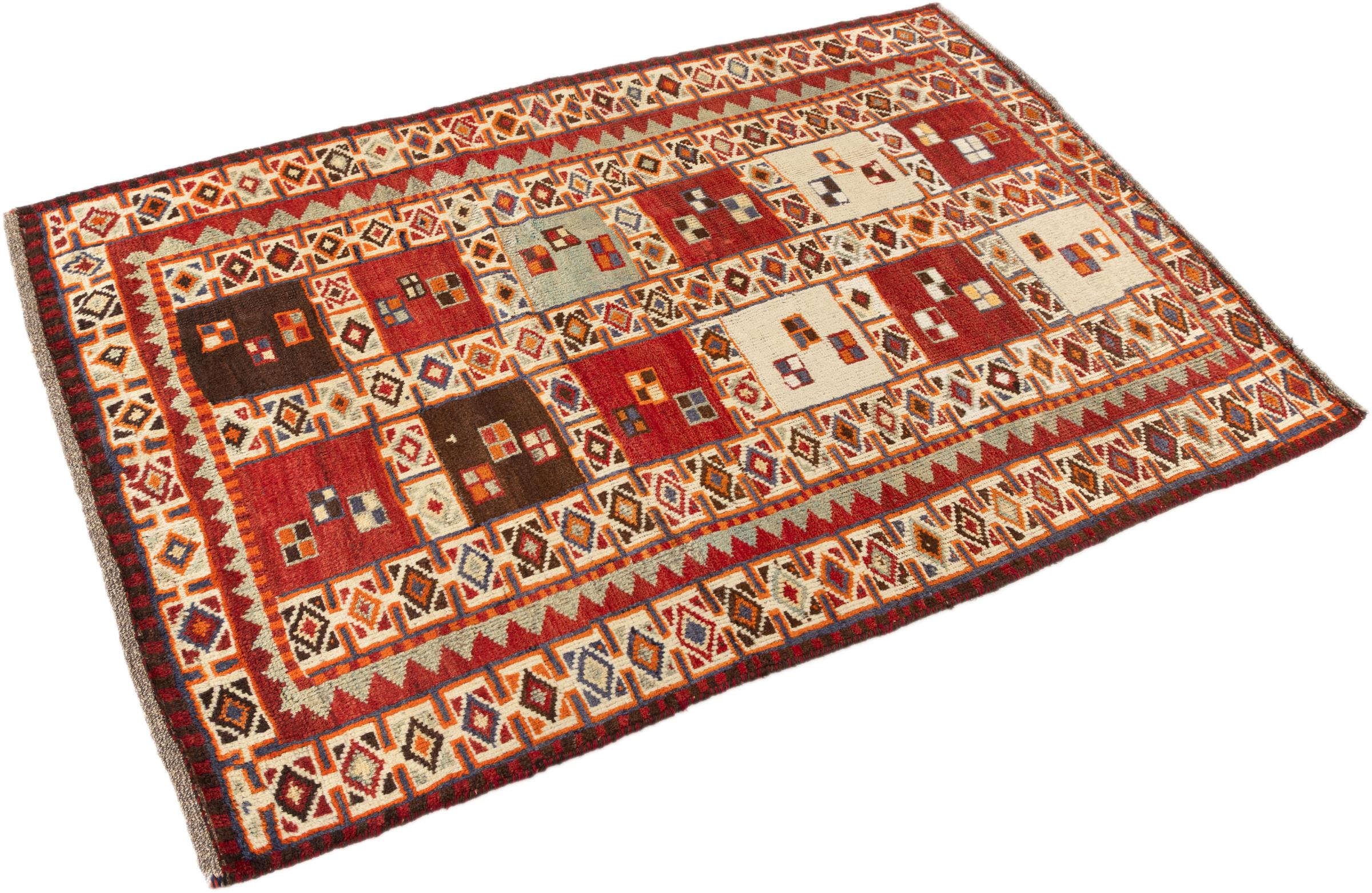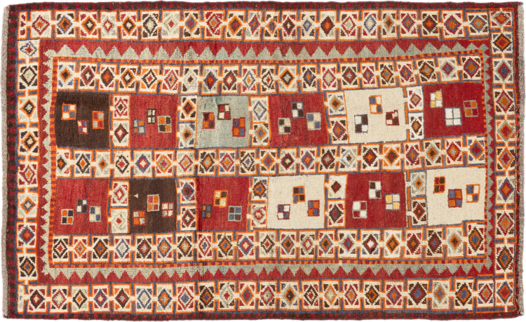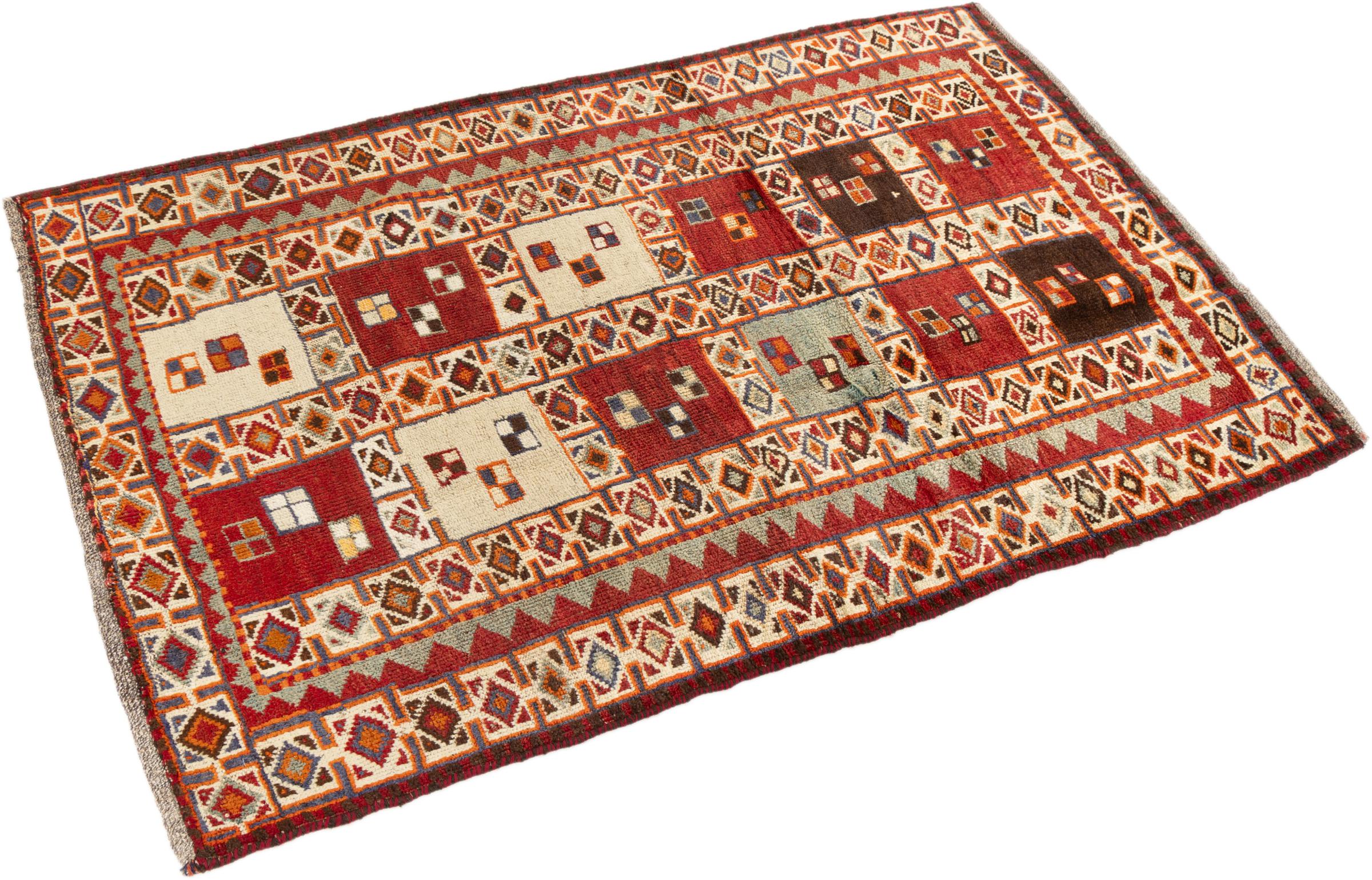 Teppenummer: 295174001293 Størrelse: 110x185 cm Tykkelse: ca. 15 mm Knuter: 72 000 - 90 000 / m² Bearbeiding: Knyttet for hånd Søm: Håndspunnet Ull Kjede: Ull Opprinnelse: Persia / Iran Alder: Gammelt, ca. 30-50 år Vekt: ca. 6 kg Også kjent som Gabbe, Ghabbeh Antall på lager: Unikt - Kun 1 stk i lager