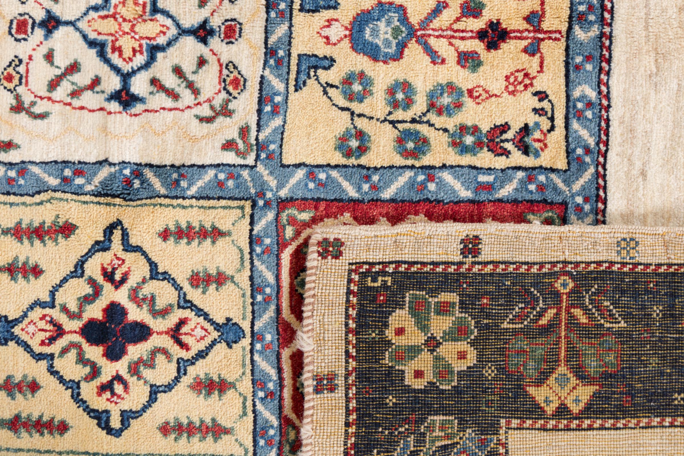 Dette teppet består av håndspunnet saueull av høyeste kvalitet. Spesielt i Iran (tidligere Persia), Afghanistan og Pakistan blir ull spunnet for hånd før teppet faktisk er knyttet. Ull har bevist seg som et naturlig og ekstremt slitesterkt materiale gjennom århundrer. Blant annet har den smussavvisende og varmeisolerende egenskaper. Samtidig er ull uten sammenligning myk og fører med seg en naturlig glans.