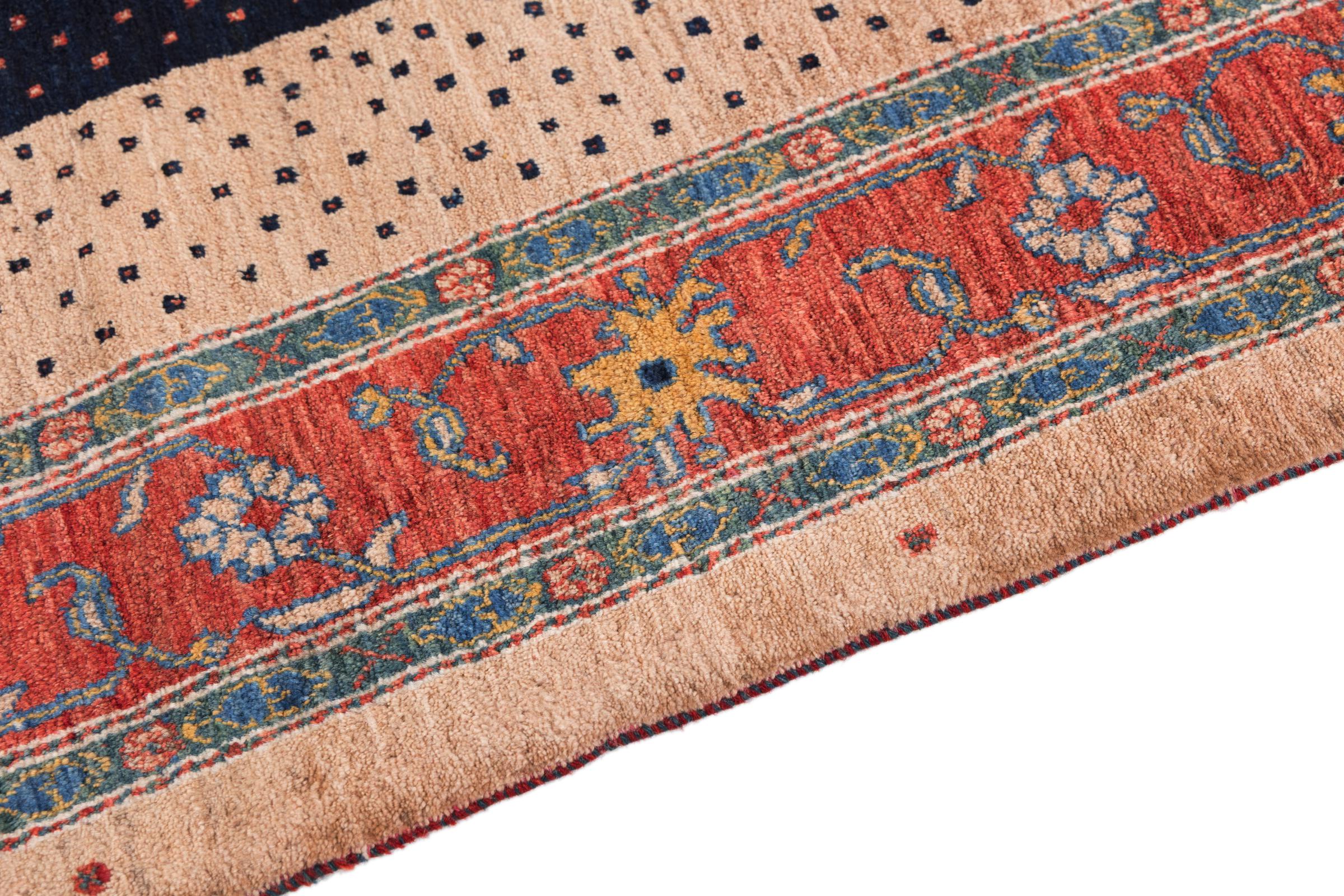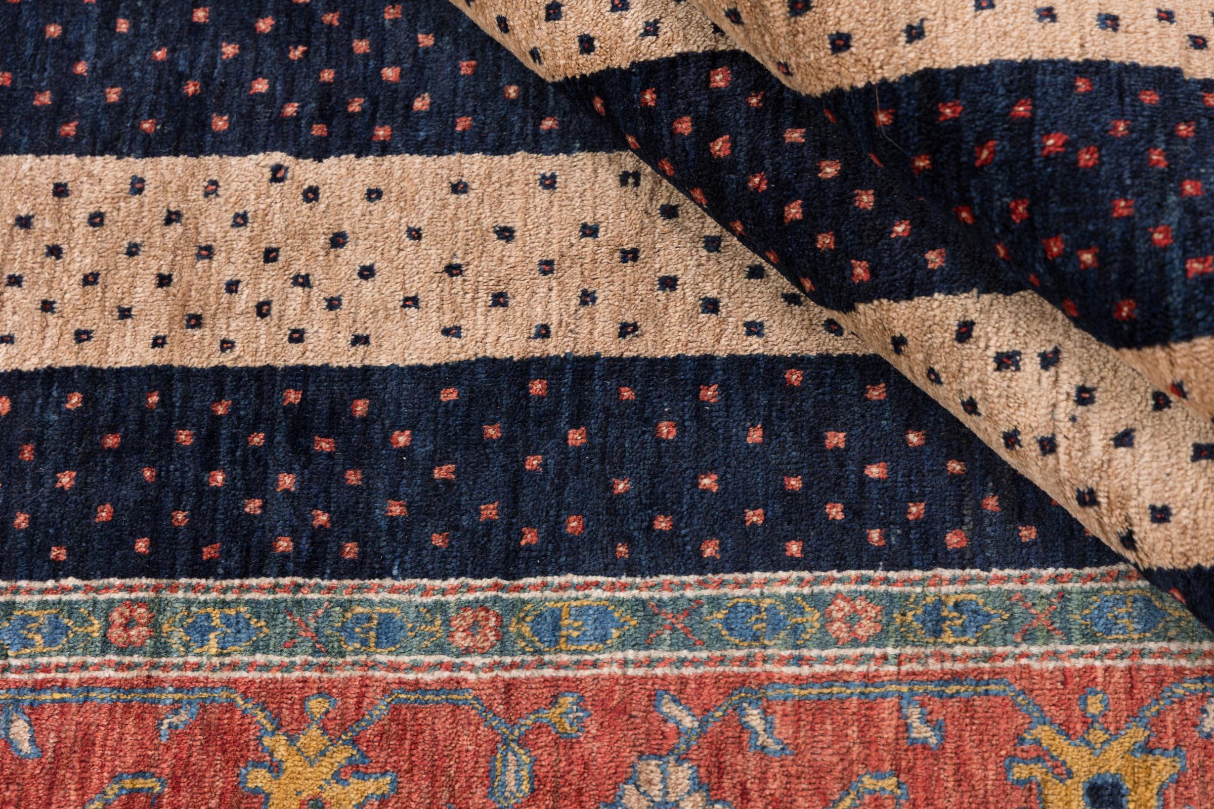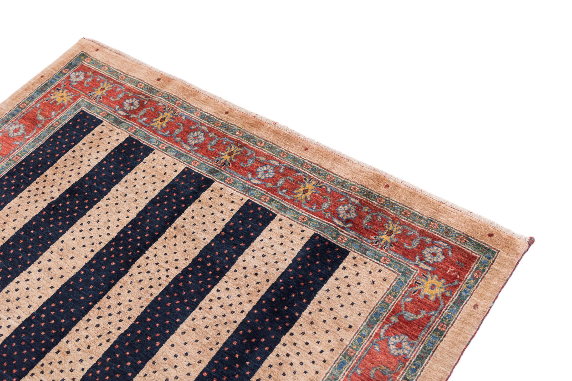 Dette vakre teppet er en persisk Gabbeh og er en av høyeste kvalitet Gabbeh-tepper. Teppene er knyttet av nomader eller seminomader i Iran ved bruk av tradisjonelt håndarbeid. De enkle motivene og mønstrene er stort sett inspirert av nomadenes umiddelbare omgivelser. For eksempel kan kameler, trær eller busker finnes på tradisjonelle tepper. Persiske Gabbeh-tepper er laget av ull fra lokale sauer. Ullen blir derfor stort sett spunnet for hånd. Hver av disse orientalske teppene har en unik karakter av århundrer gammel kultur.