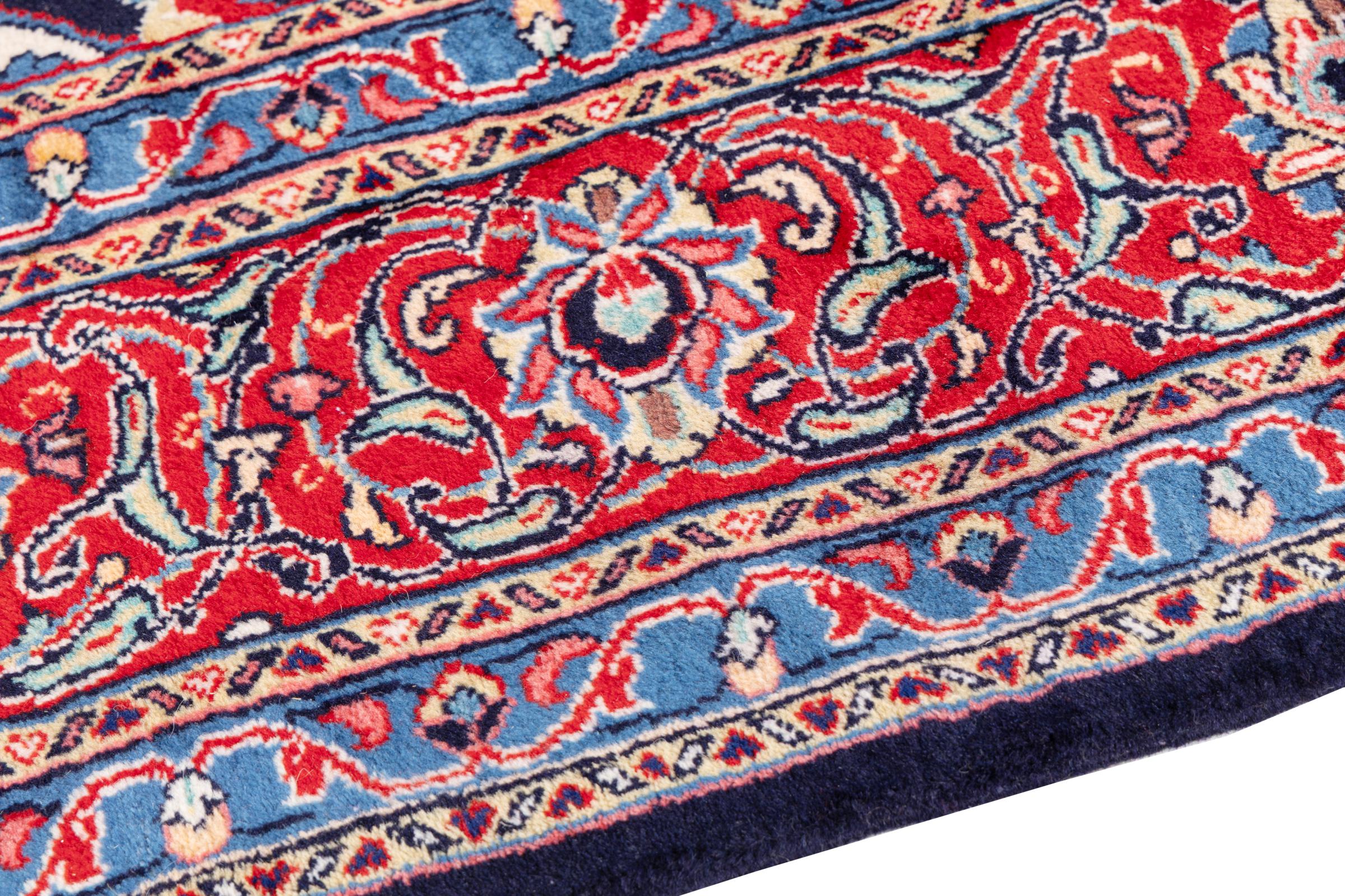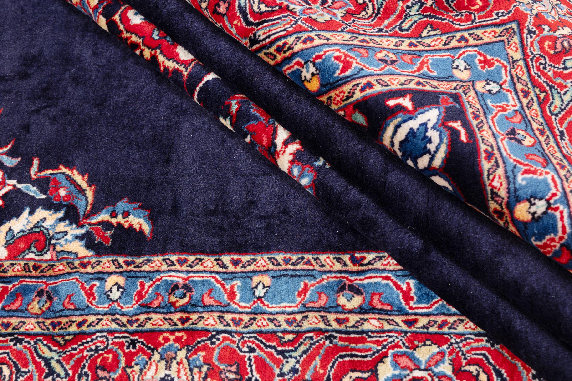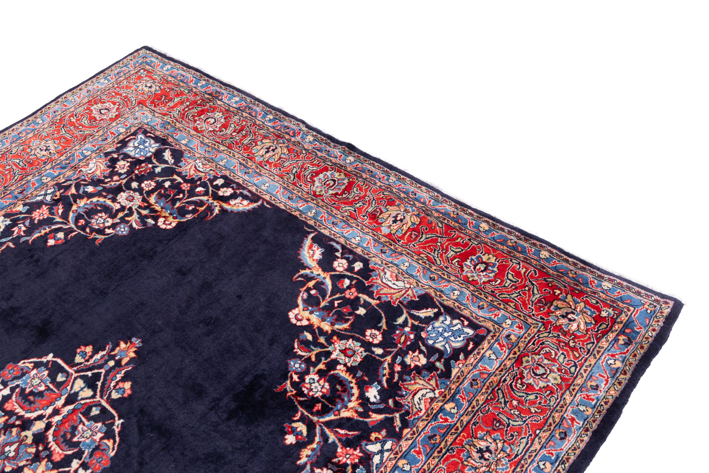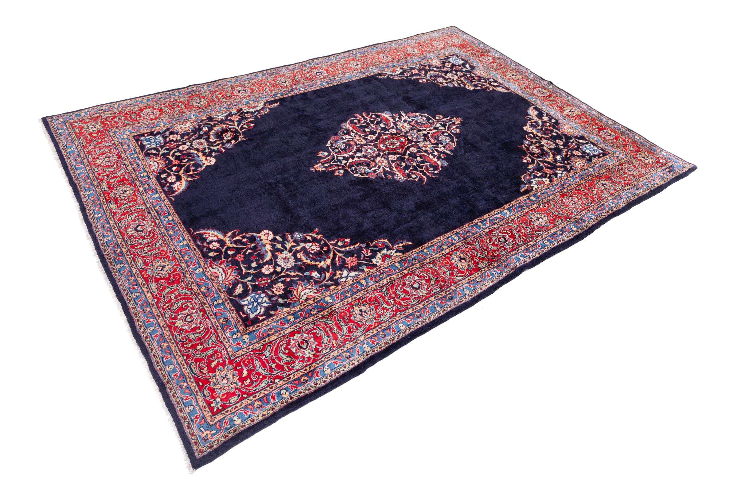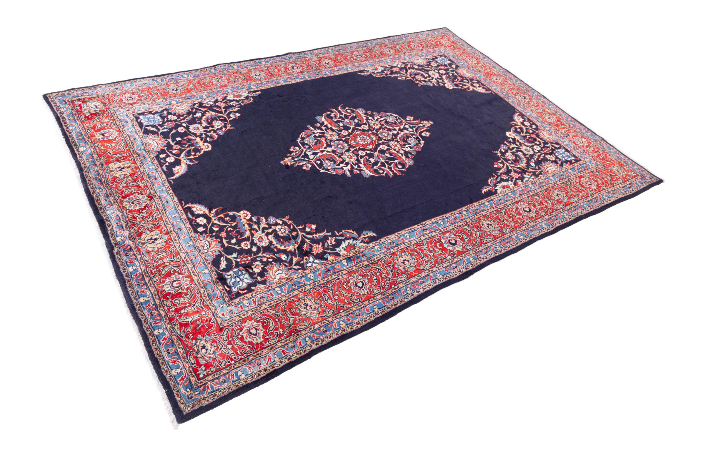 Dette teppet ble håndknyttet i Sarough. Her blir det produsert tunge tepper av høy kvalitet. takket være det flotte mønsteret passer det inn i ditt hjem.