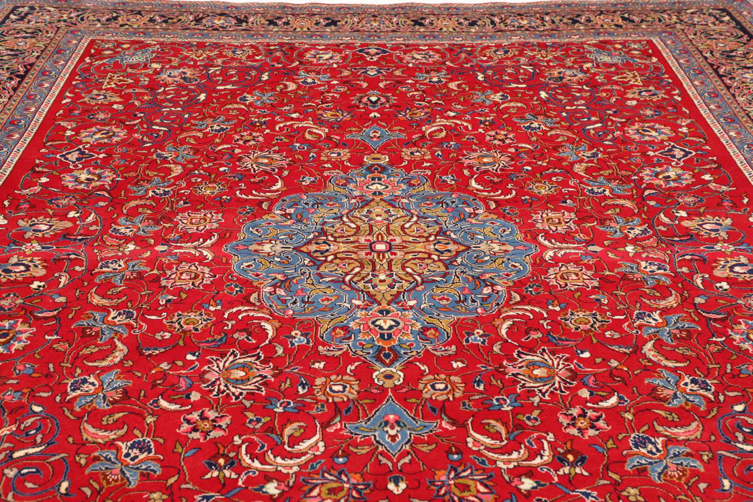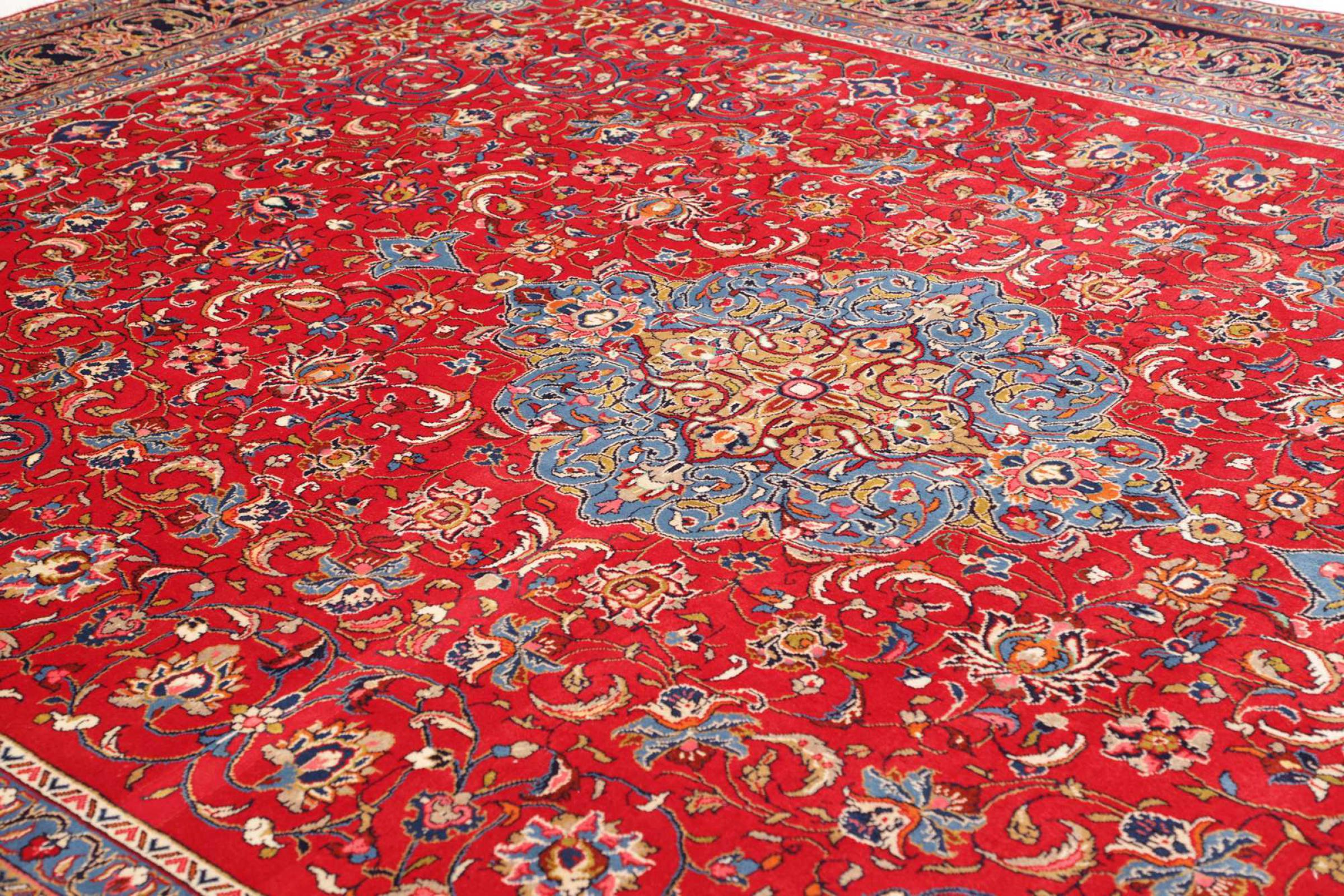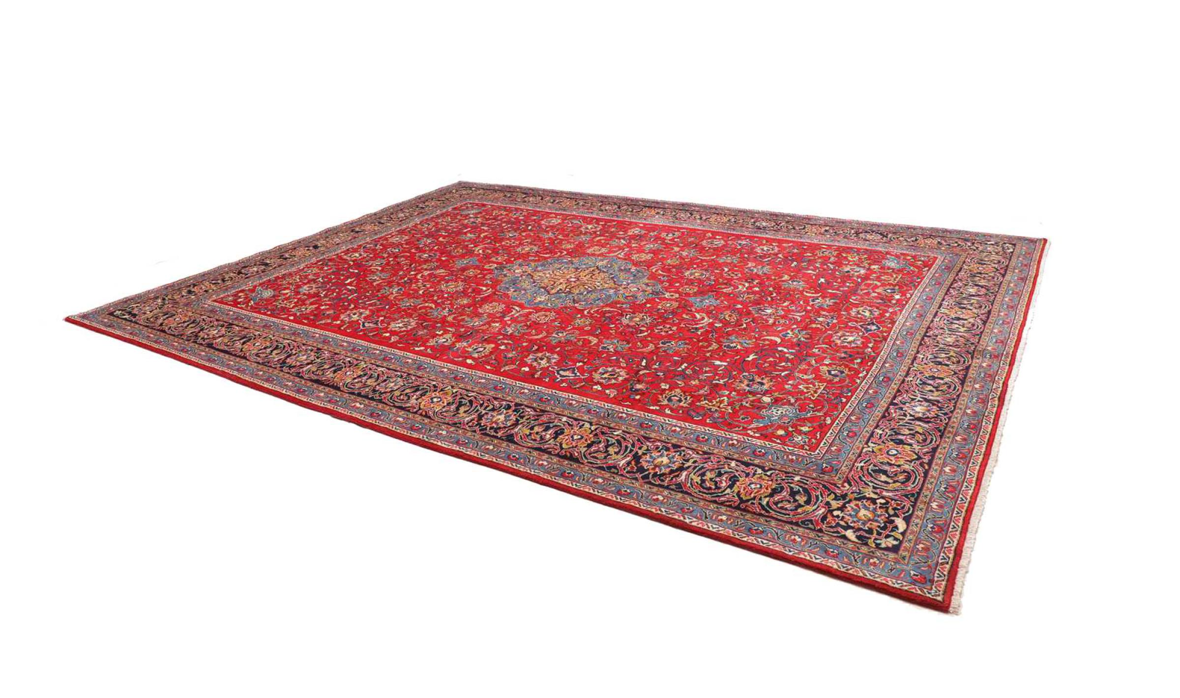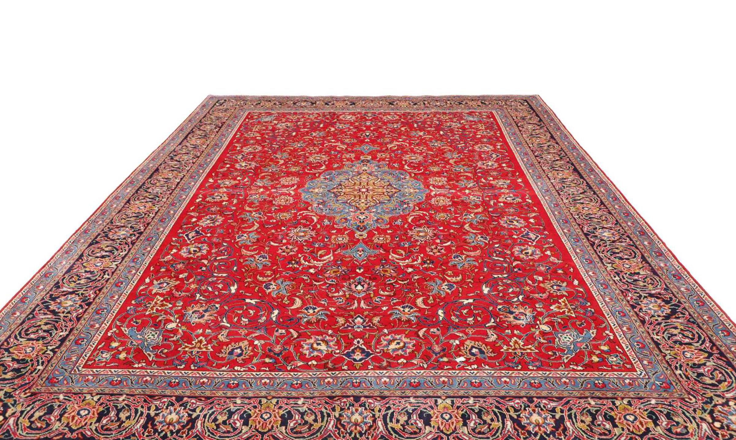 Teppenummer: 31910300737620 Størrelse: 399x299 cm Tykkelse: ca. 12 mm Knuter: 128 000 - 160 000 / m² Bearbeiding: Knyttet for hånd Søm: Håndspunnet Ull Kjede: Bomull Opprinnelse: Persia / Iran Alder: Nytt Vekt: ca. 48 kg Også kjent som Arak , Sarough, Sarouk, Saruk, Saroq, Sultanabad Antall på lager: Unikt - Kun 1 stk i lager